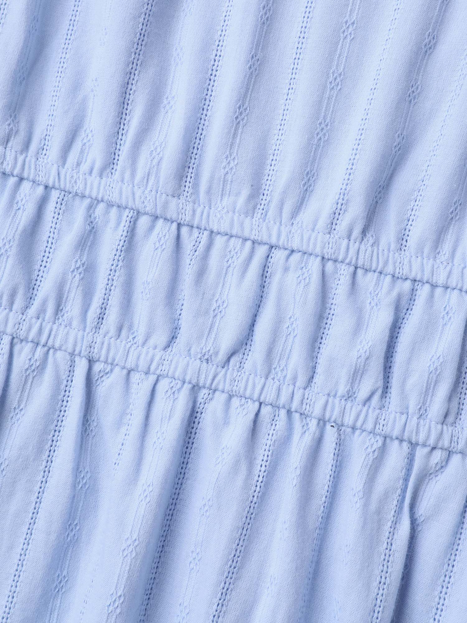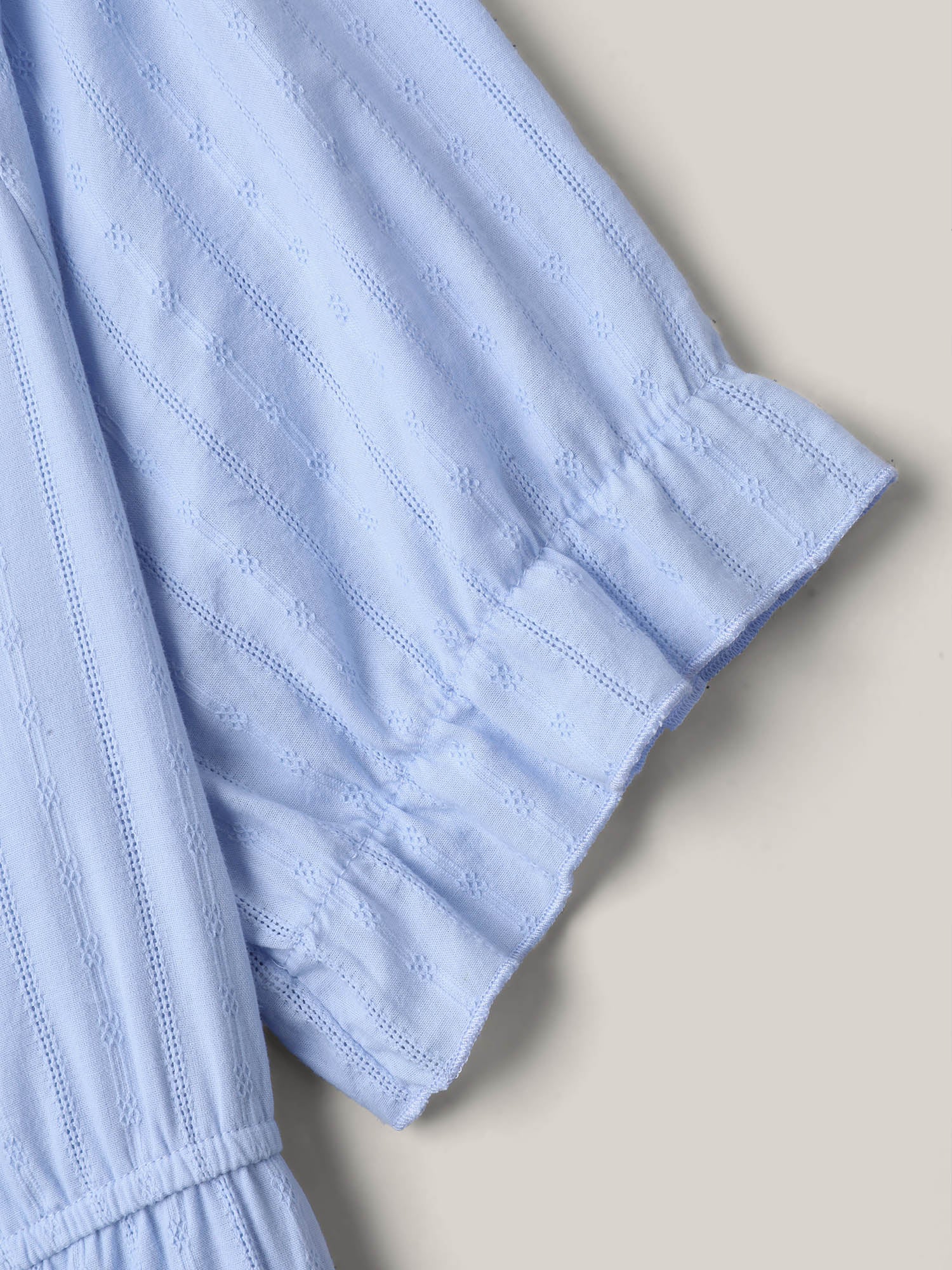 Cotton Textured Neck-Tie Pockets Midi Dress