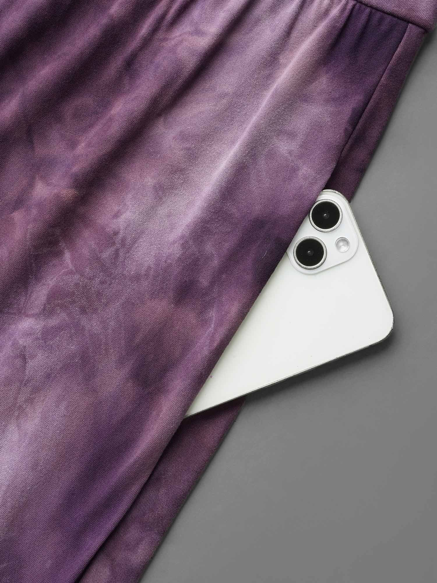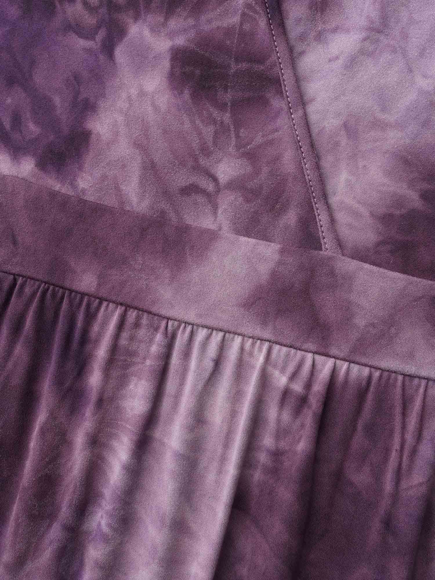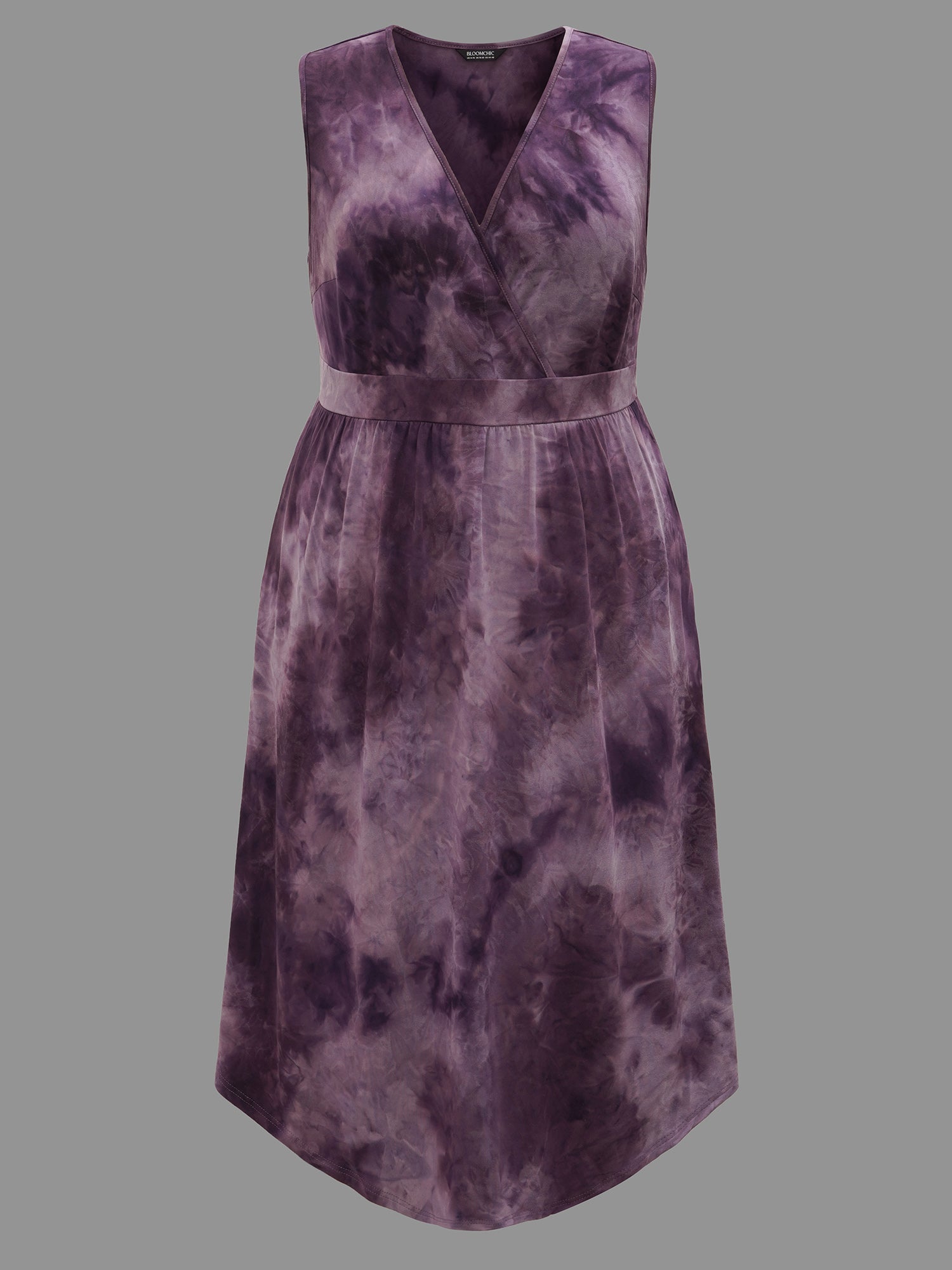 • Tie-Dye Surplice Neck Curved Hem Midi Dress