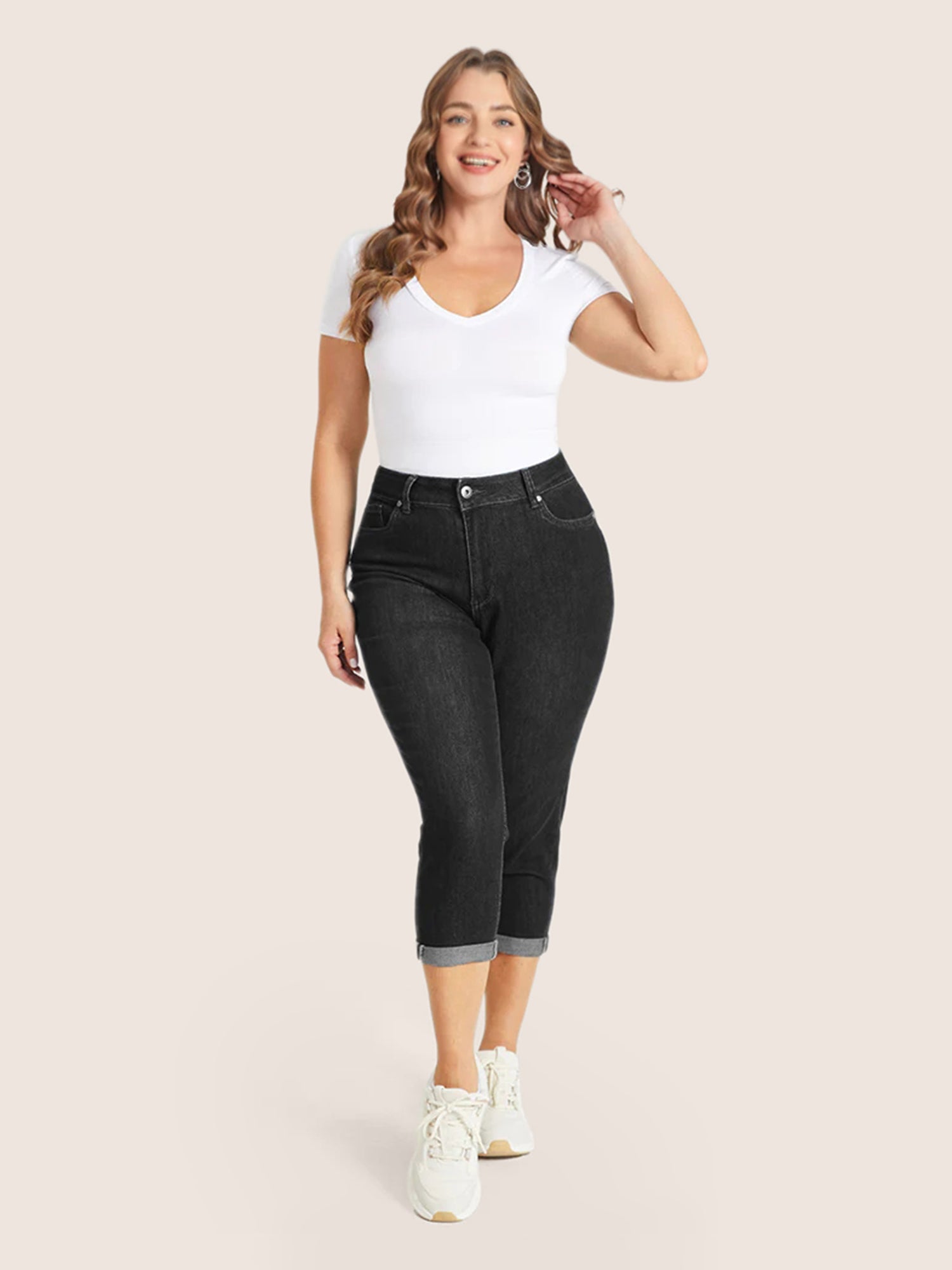 • Very Stretchy High Rise Dark Wash Cropped Jeans