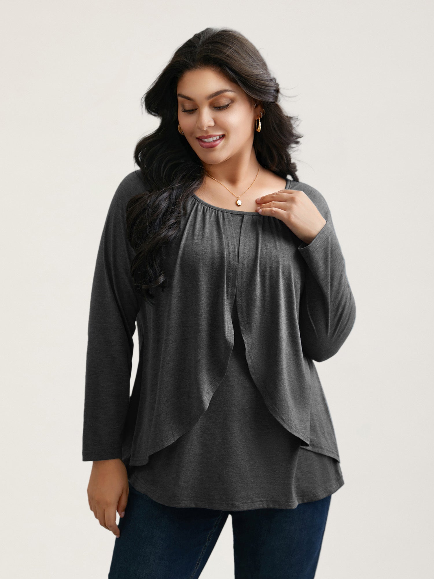 2-In-1 Gathered Ruffle Trim T-Shirt