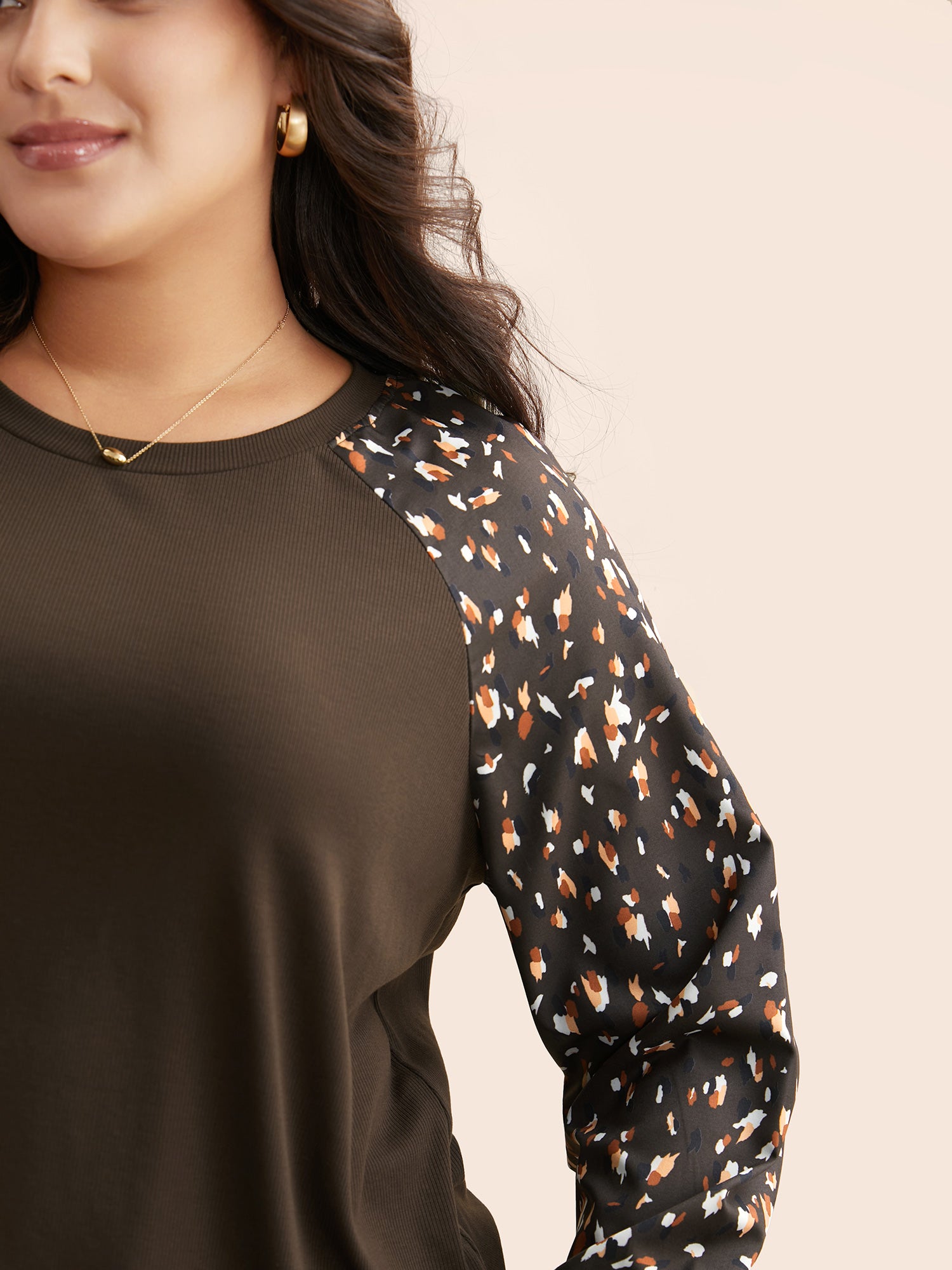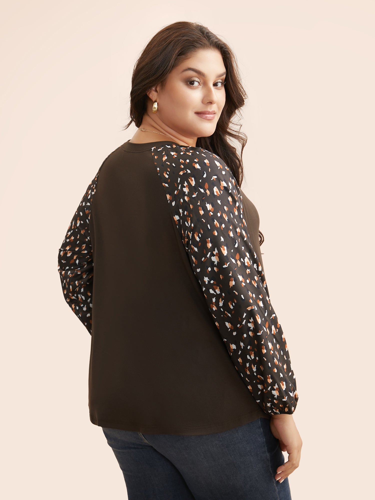 Allover Print Patchwork Raglan Sleeve T-shirt