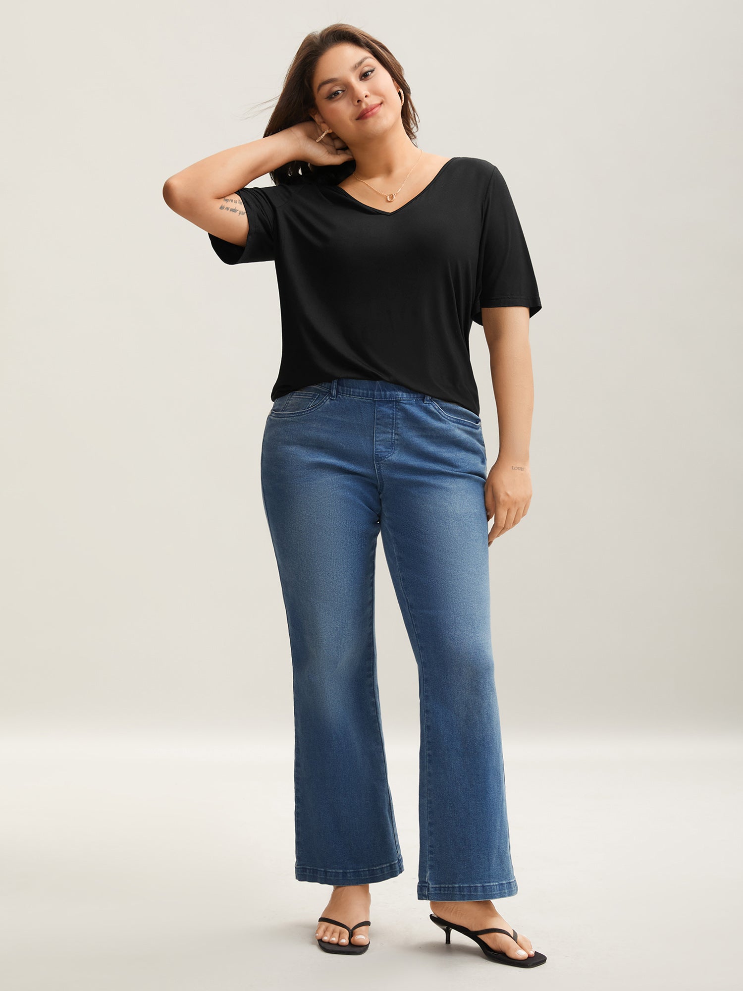 Back Lace Cut-Out V-Neck T-Shirt