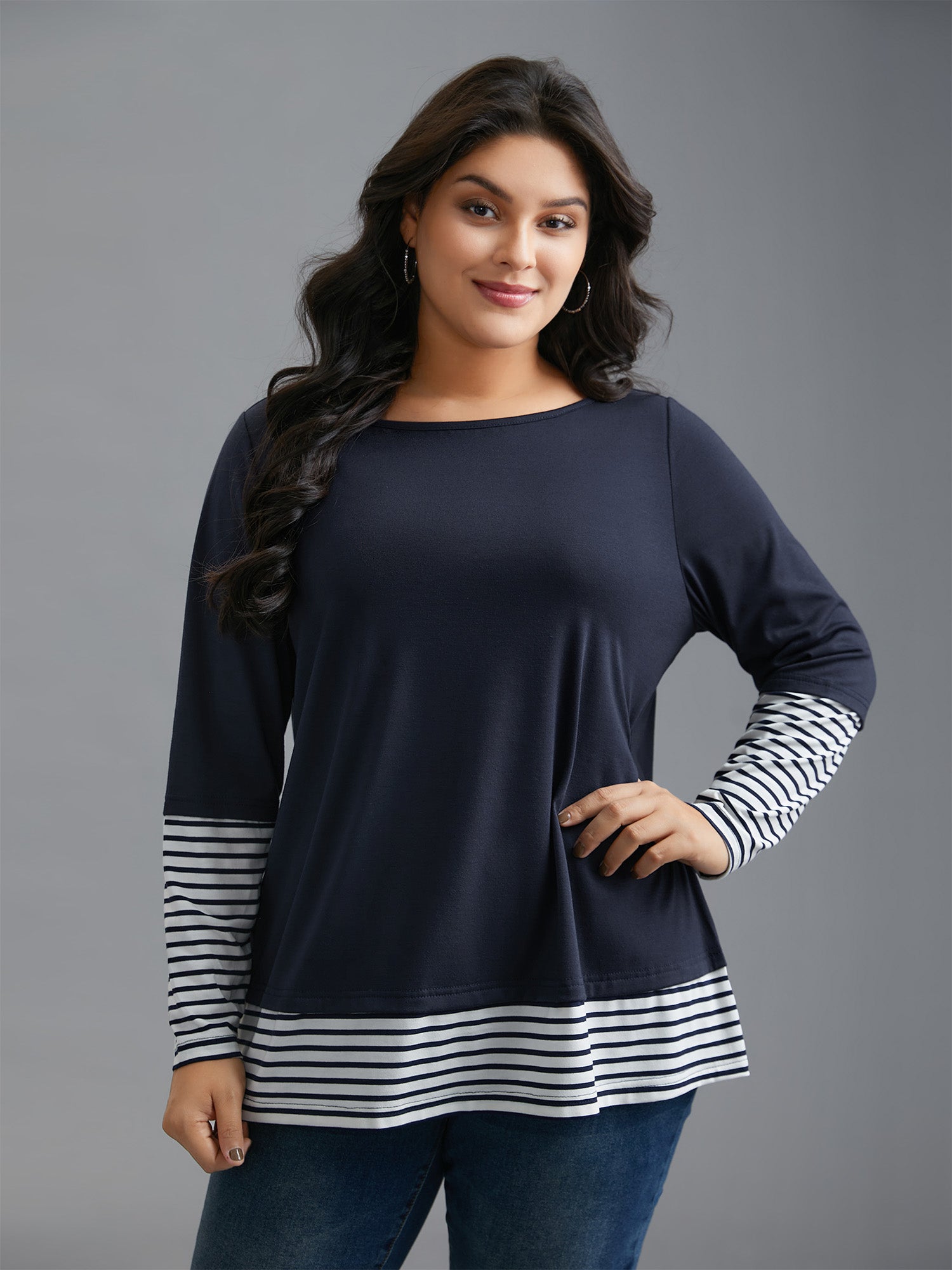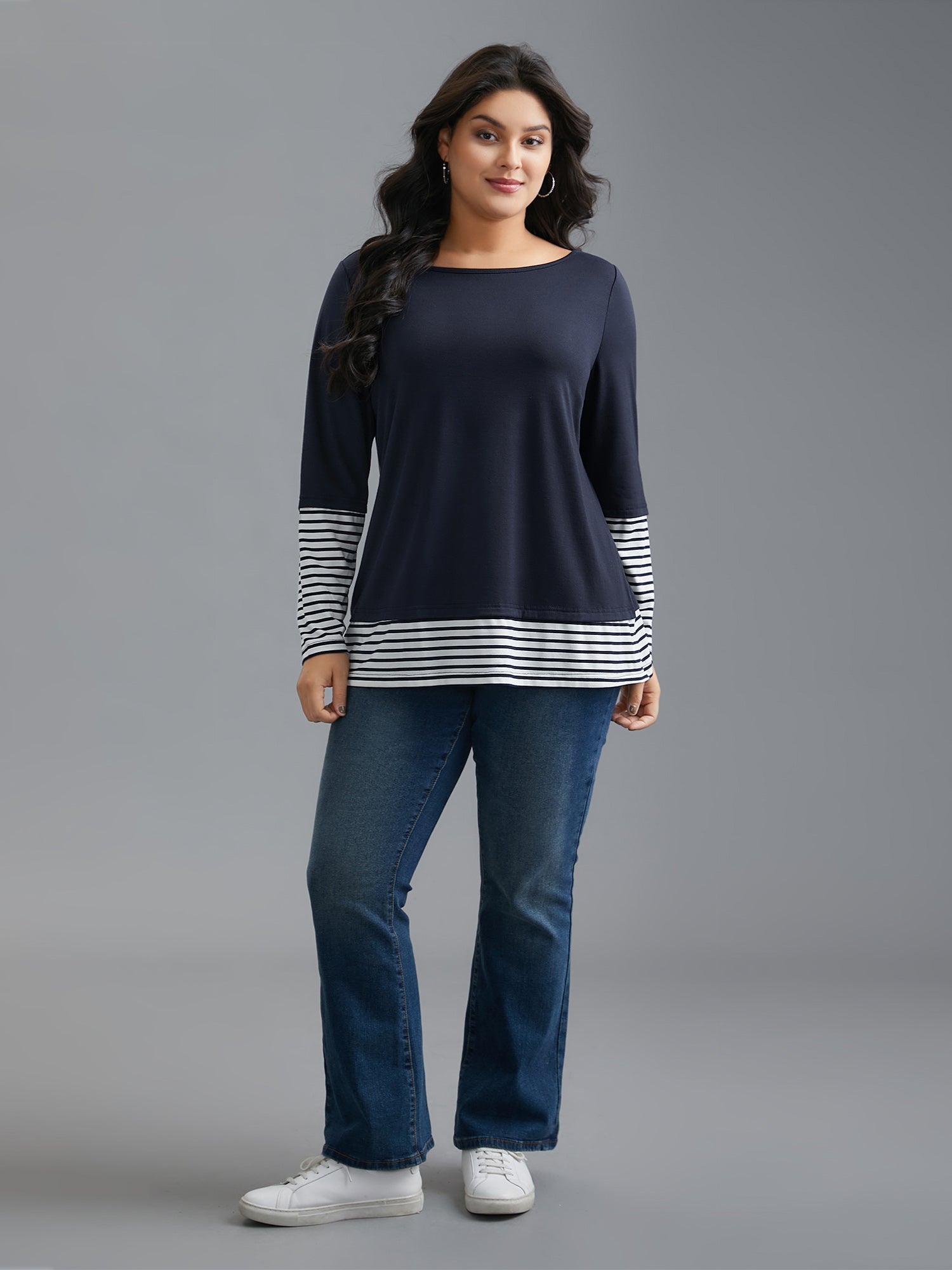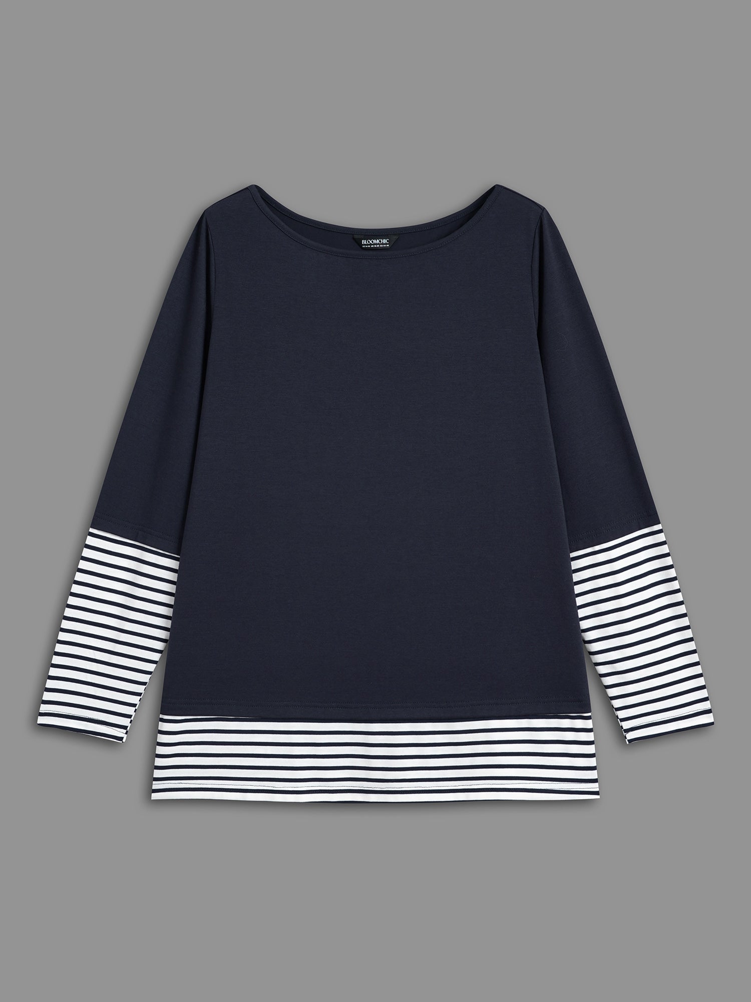 Boat Neck Striped Patchwork T-Shirt