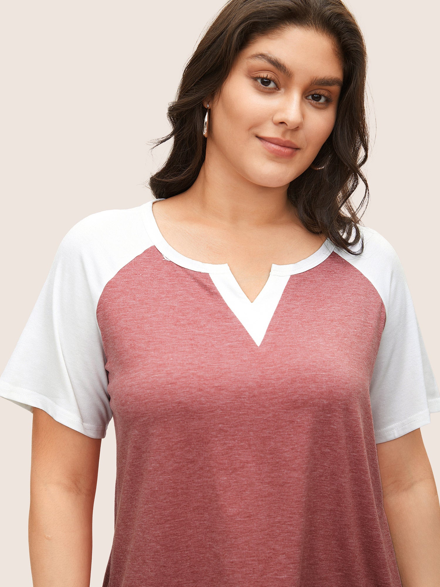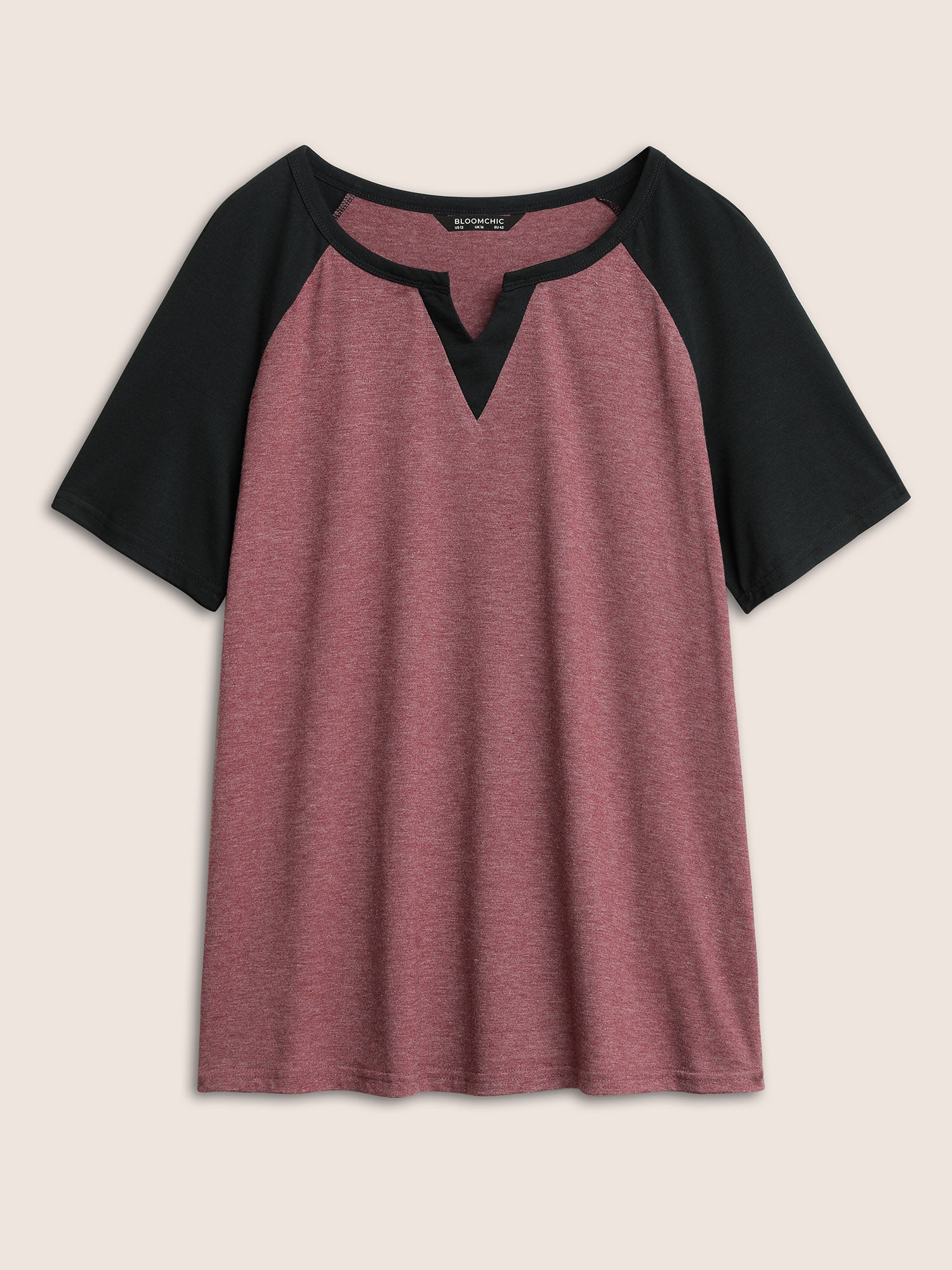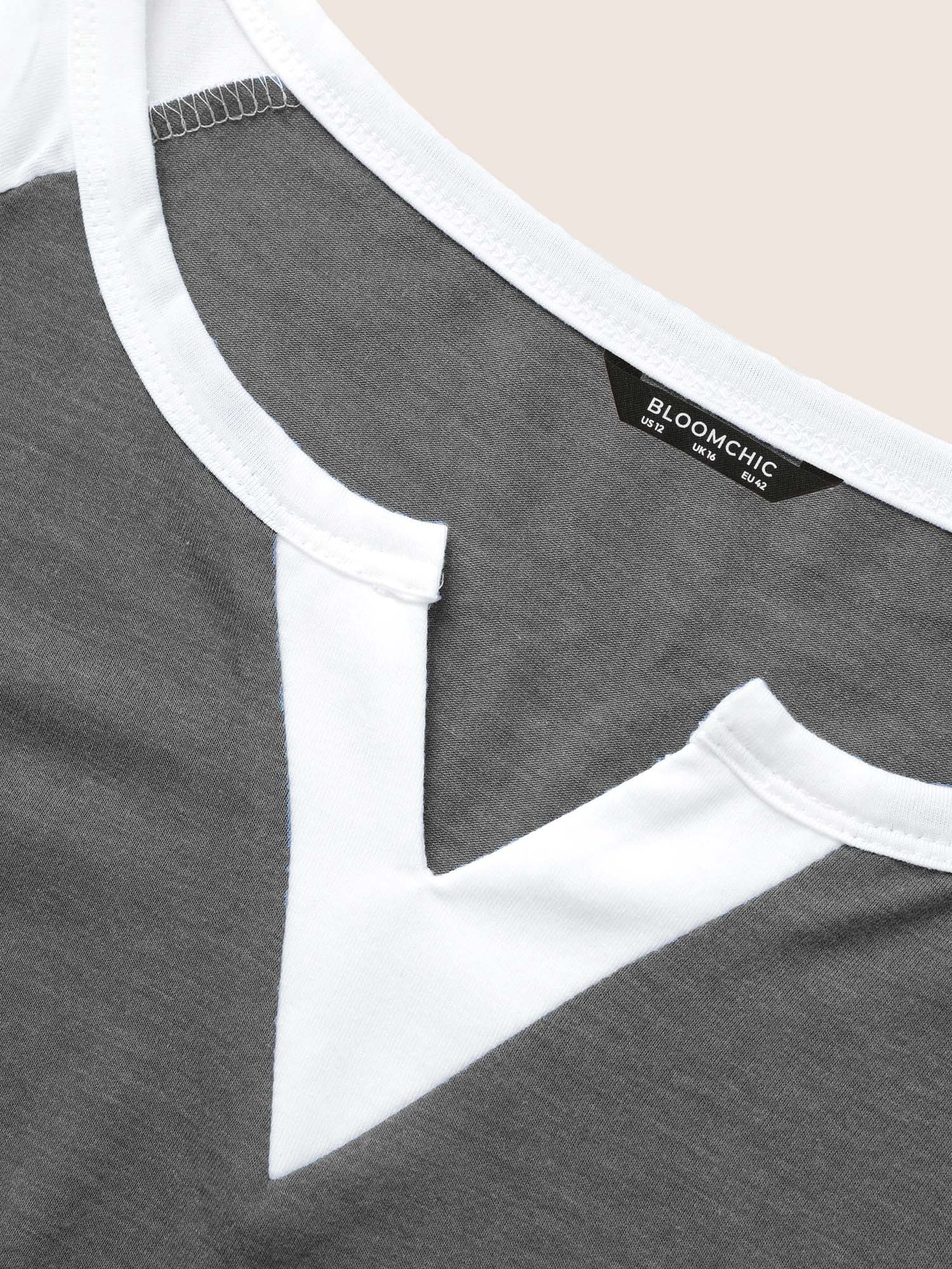 Colorblock Contrast Notched Raglan Sleeve T-shirt