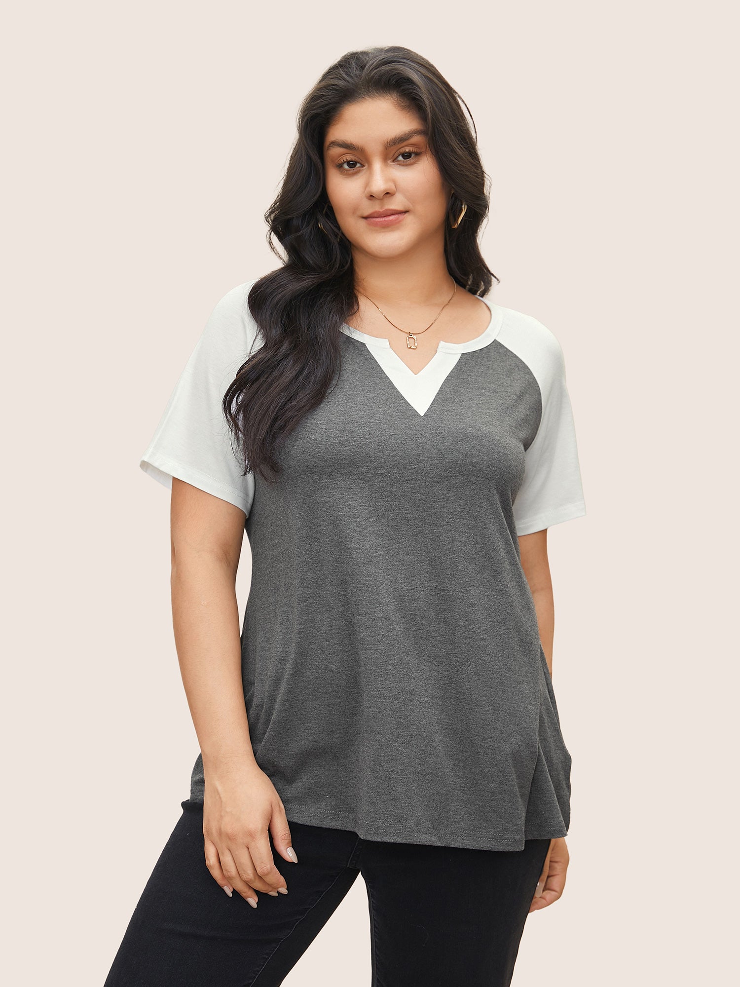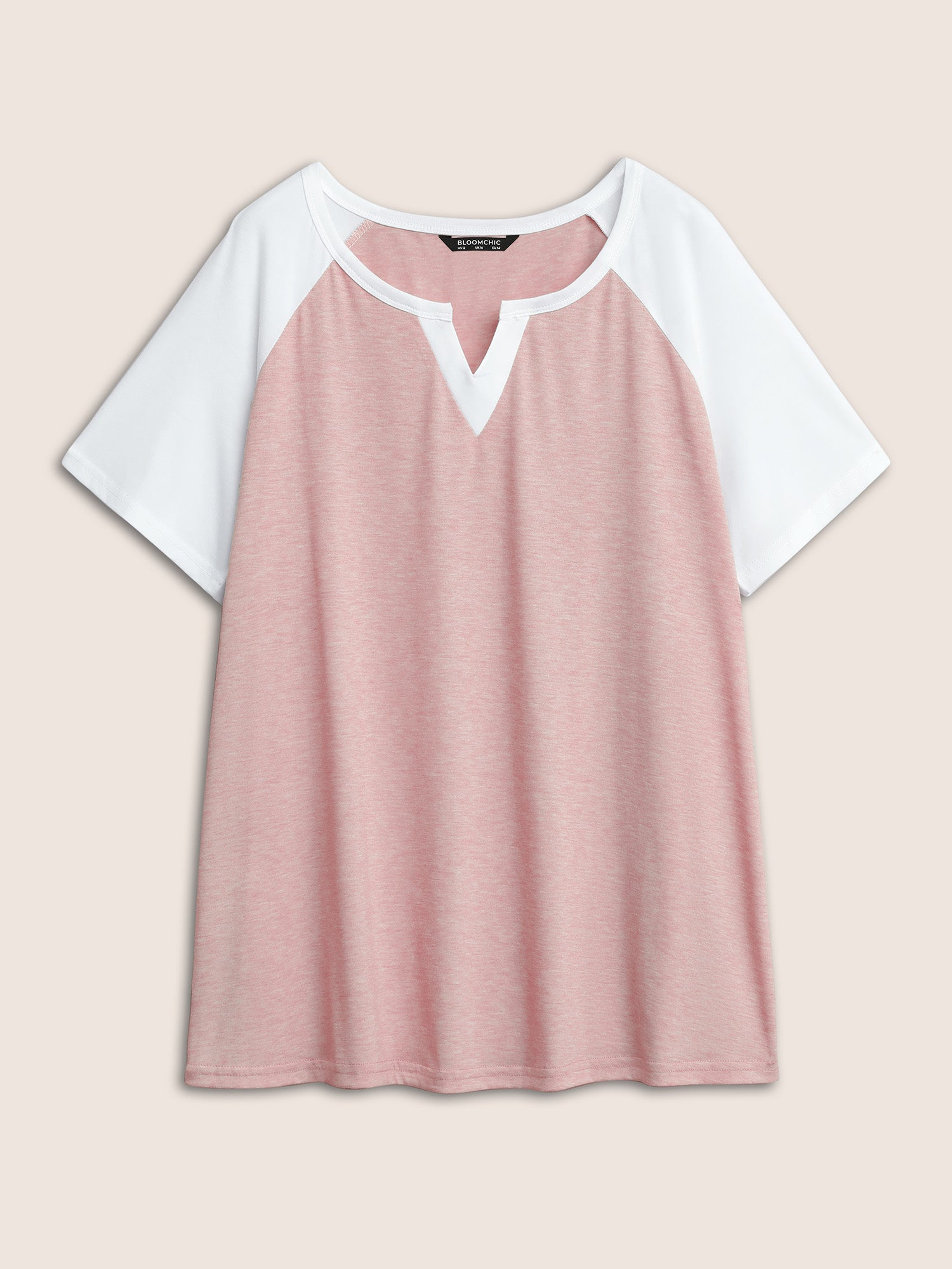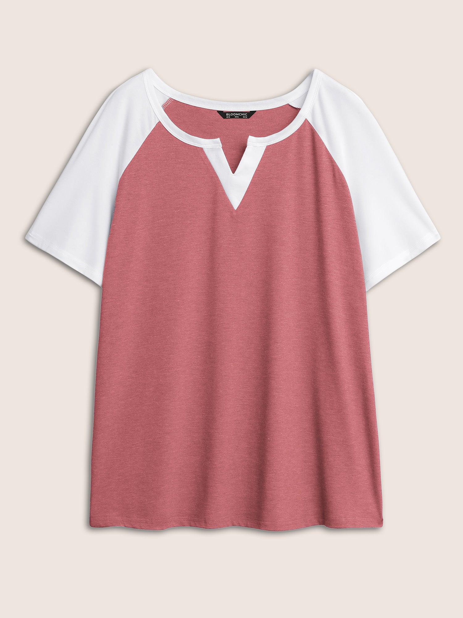 Colorblock Contrast Notched Raglan Sleeve T-shirt