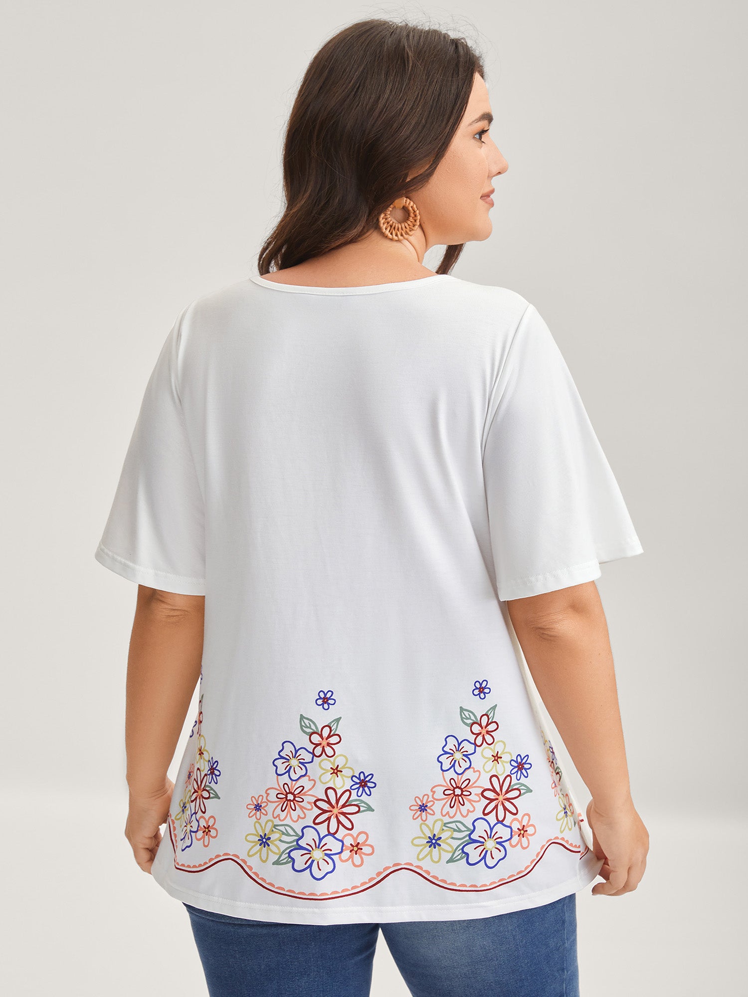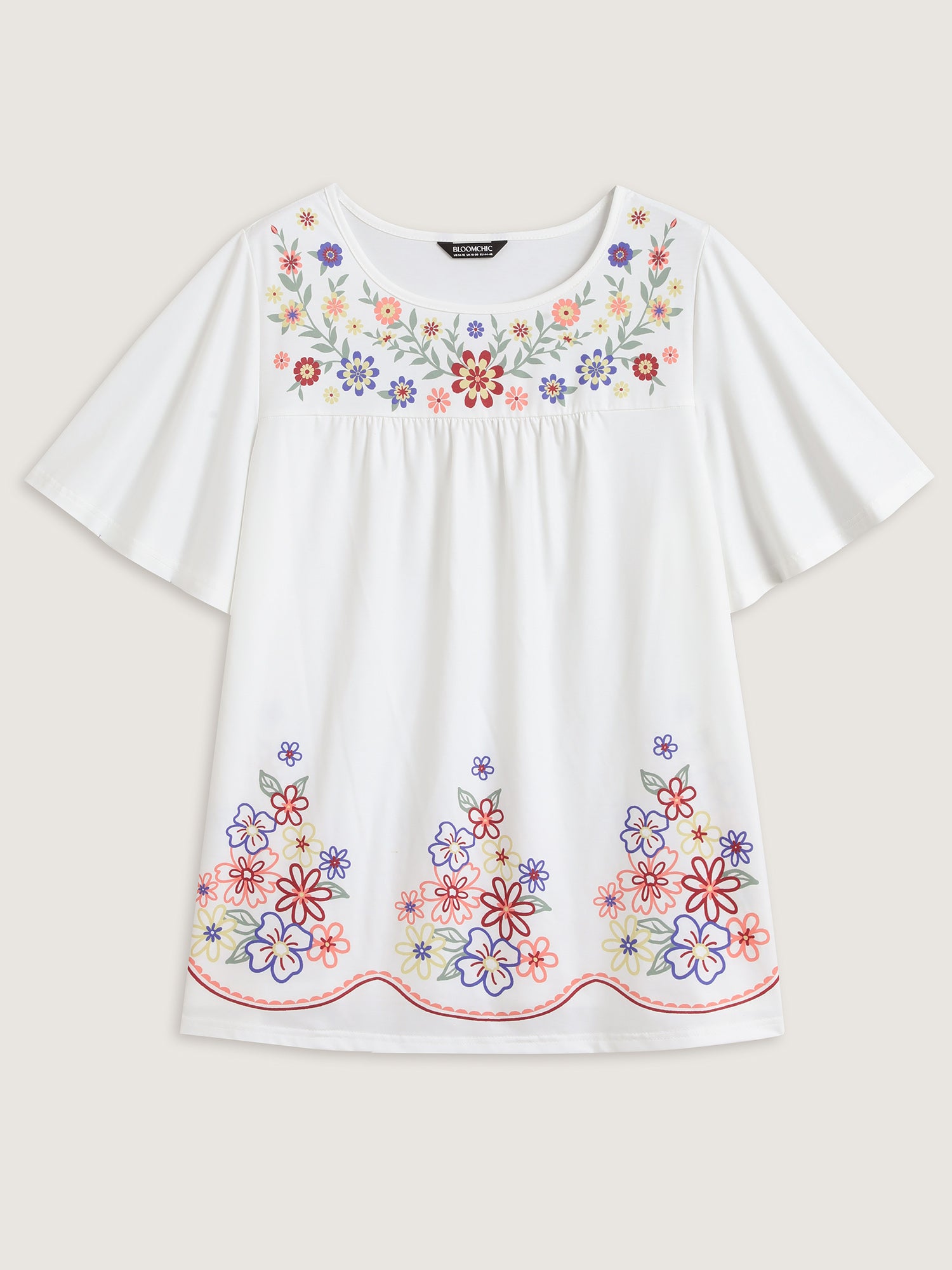 Floral Dreams Flared Sleeve Solid T-Shirt