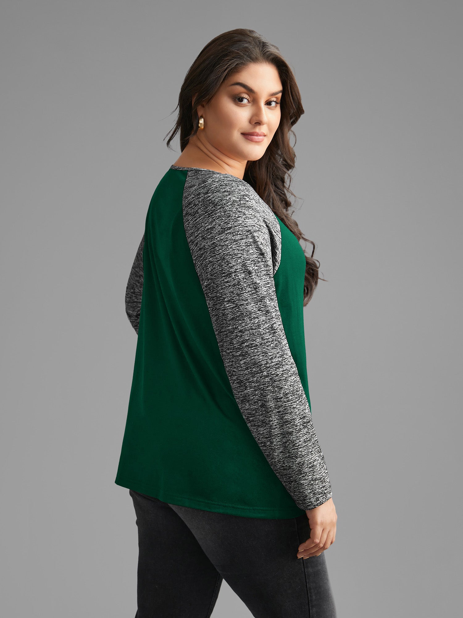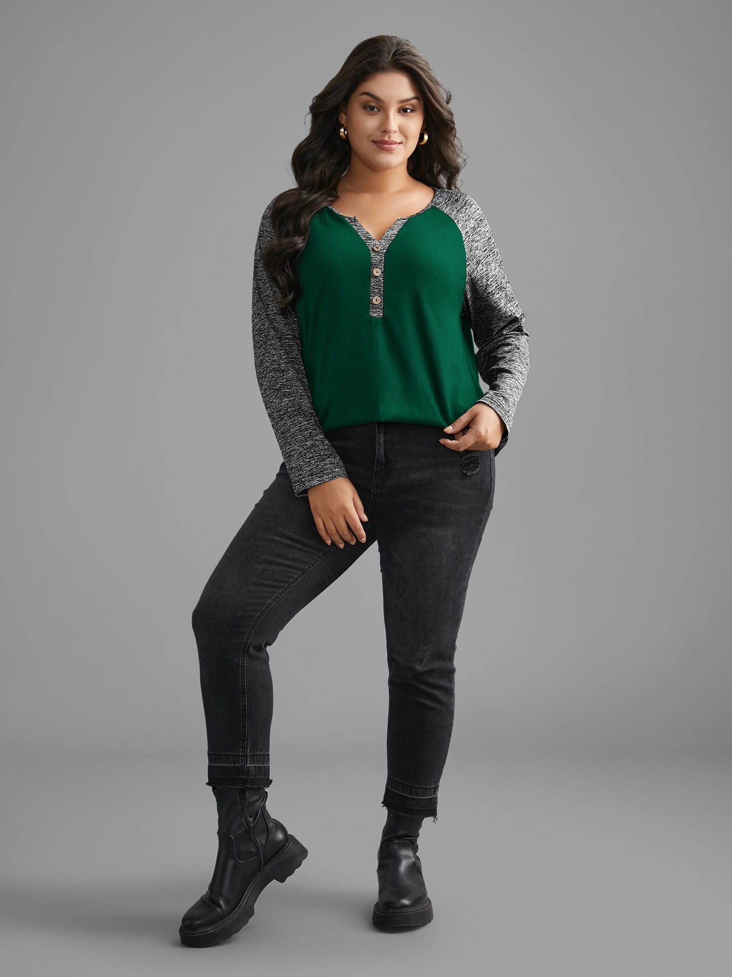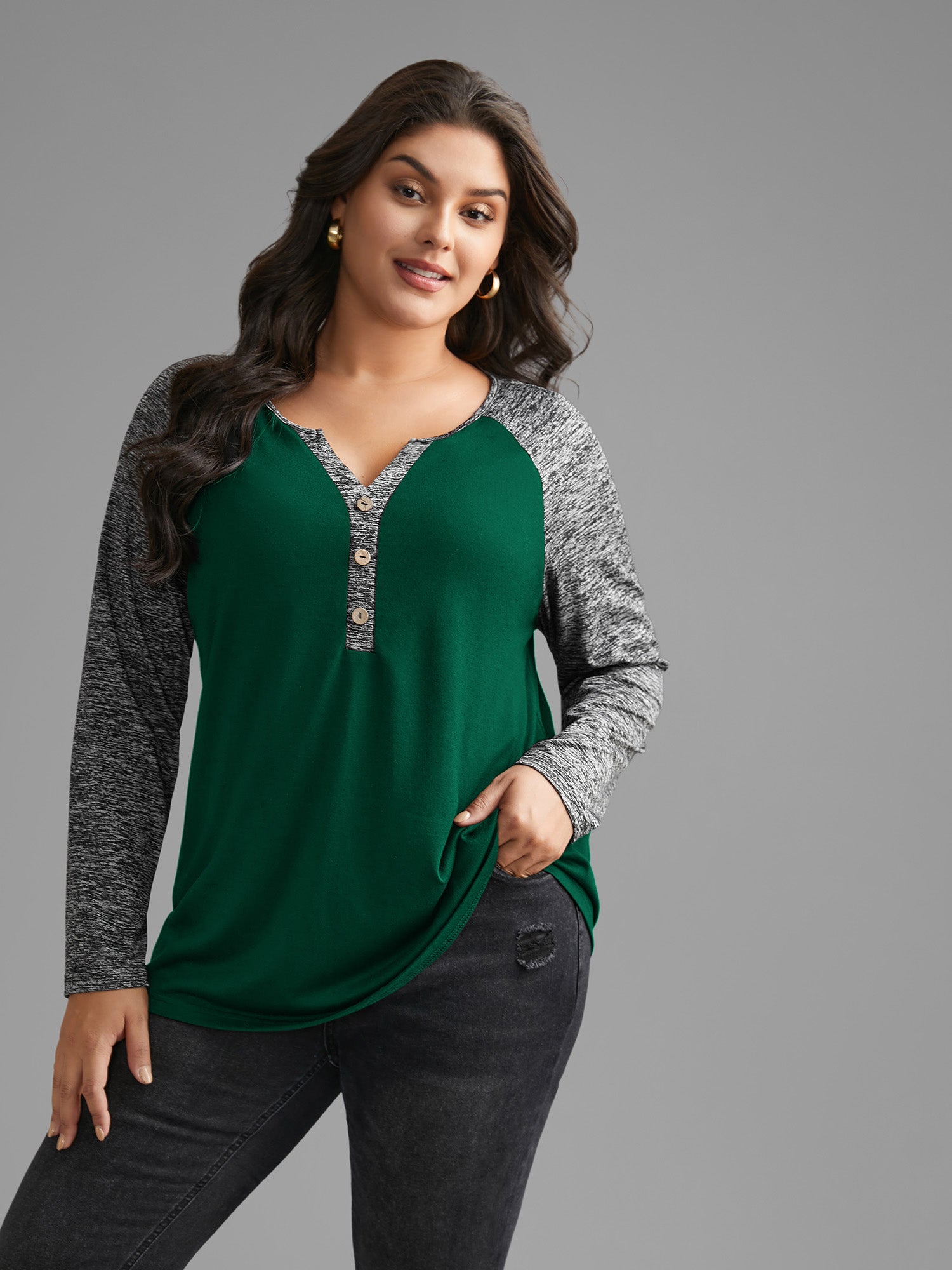 Heather Patchwork Button Detail Stretchy T-Shirt