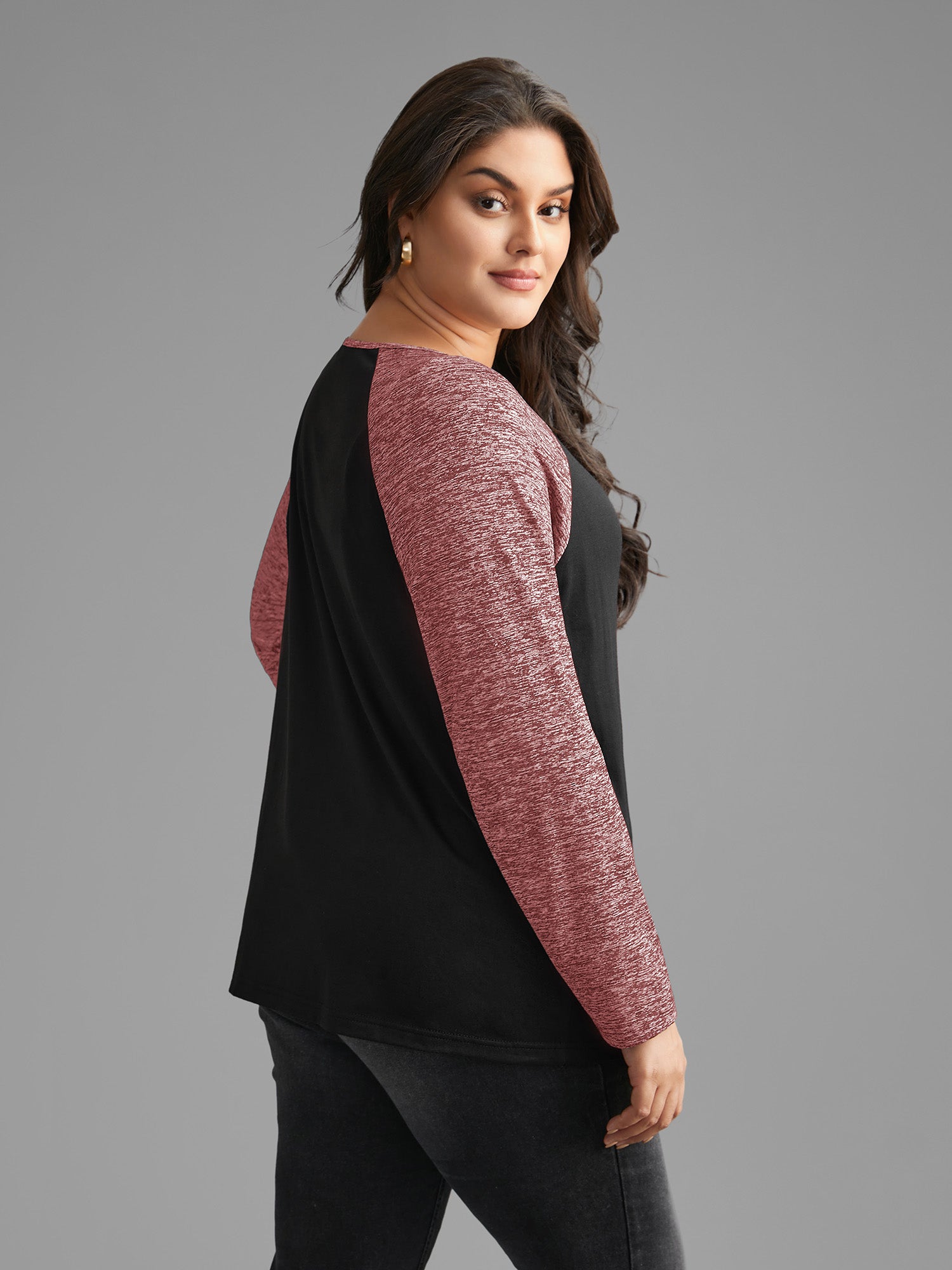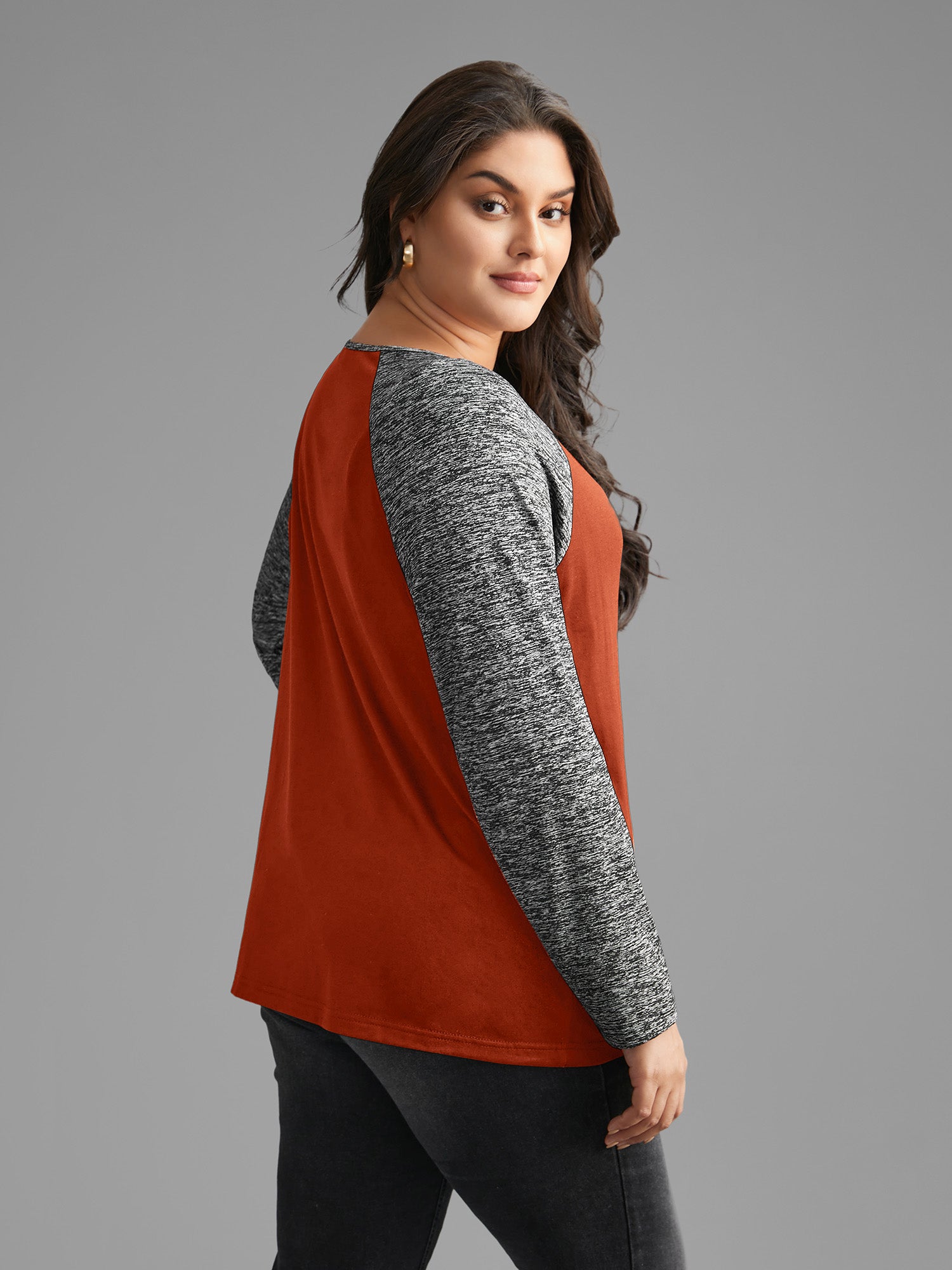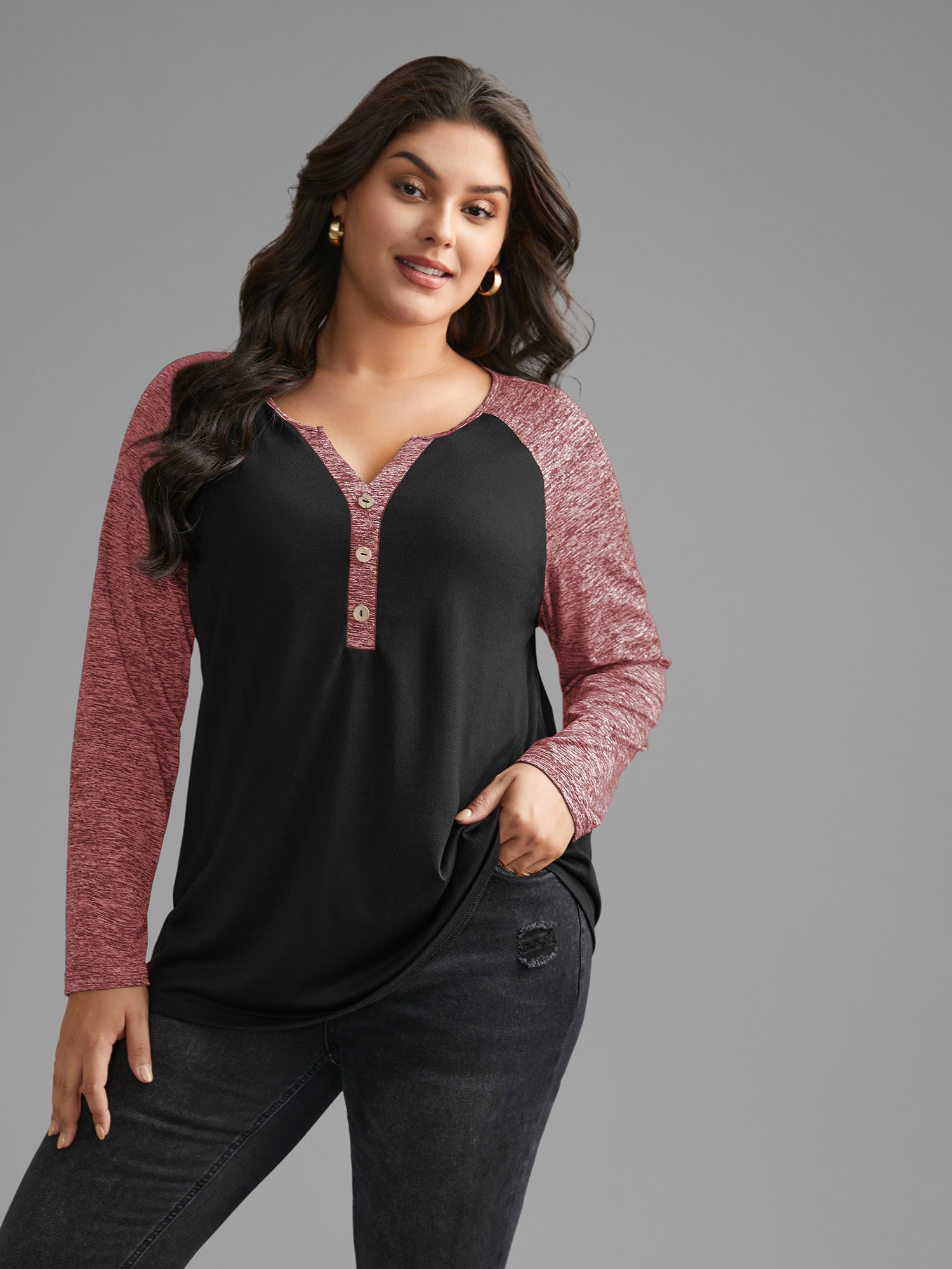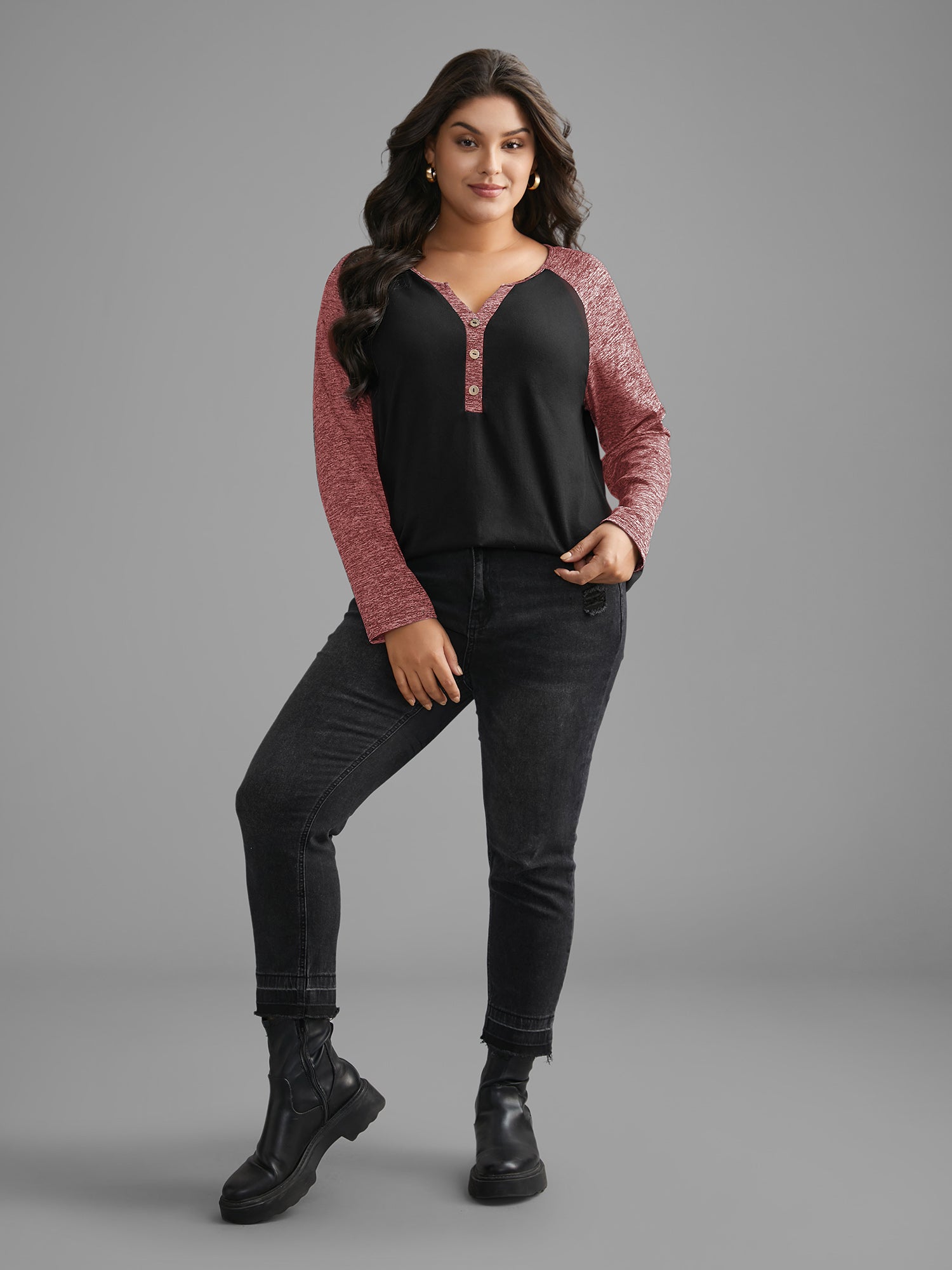Heather Patchwork Button Detail Stretchy T-Shirt