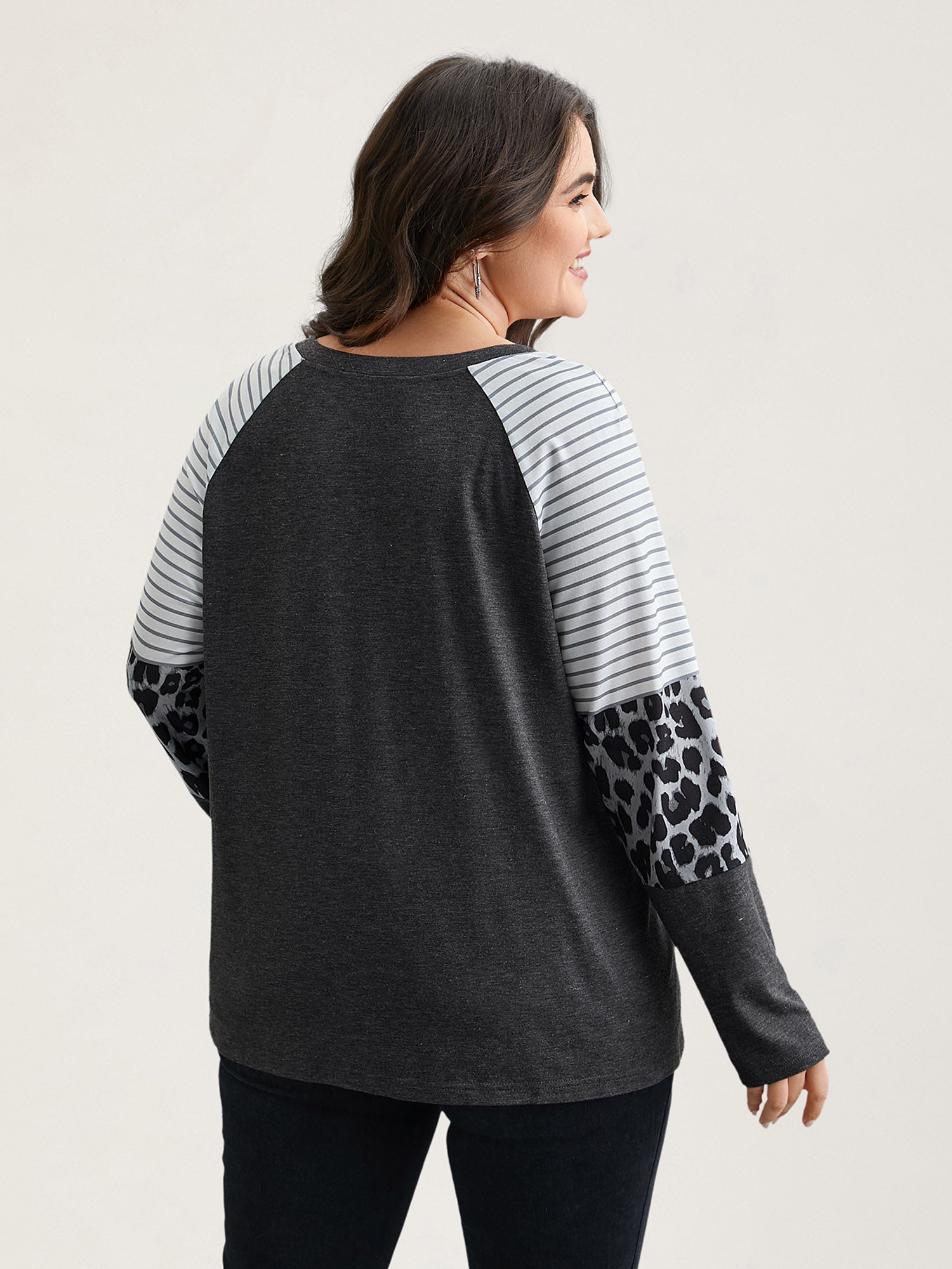 Mixed Leopard Print Raglan Sleeve T-Shirt