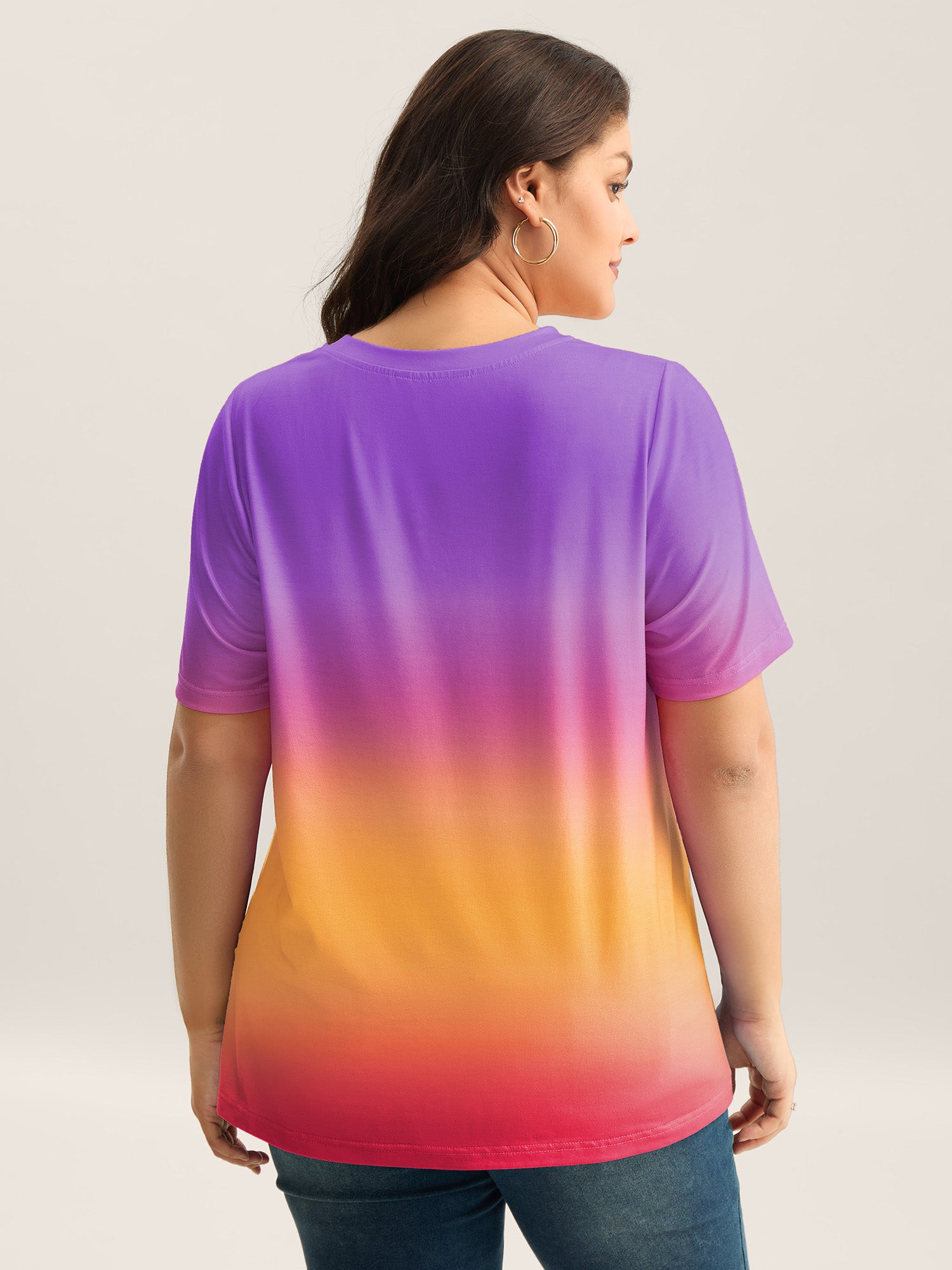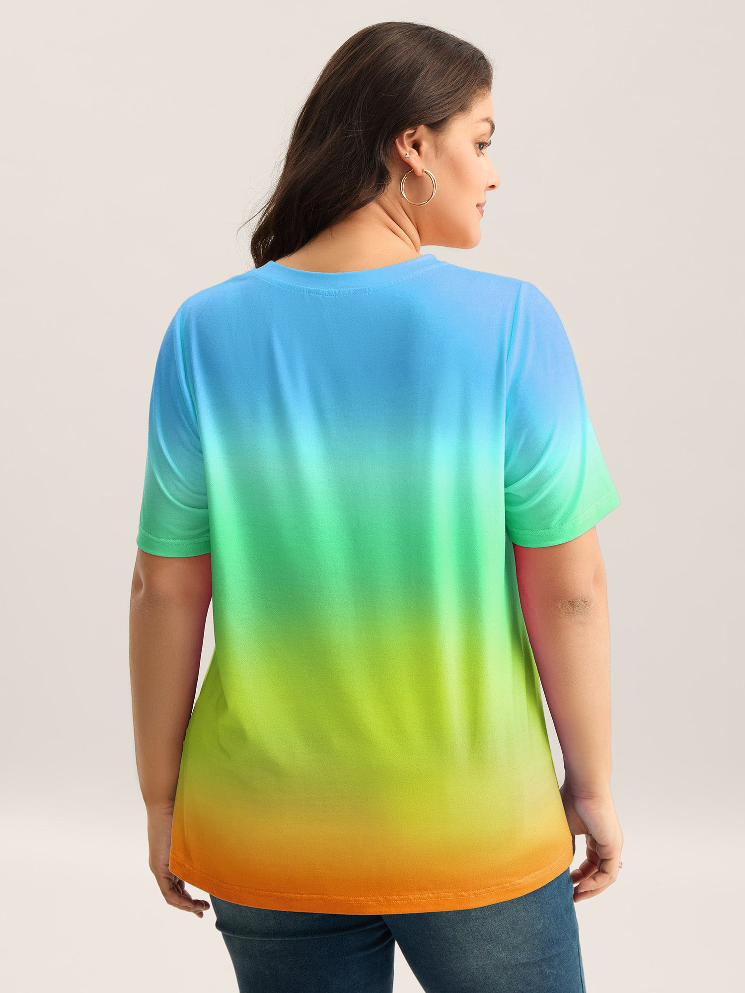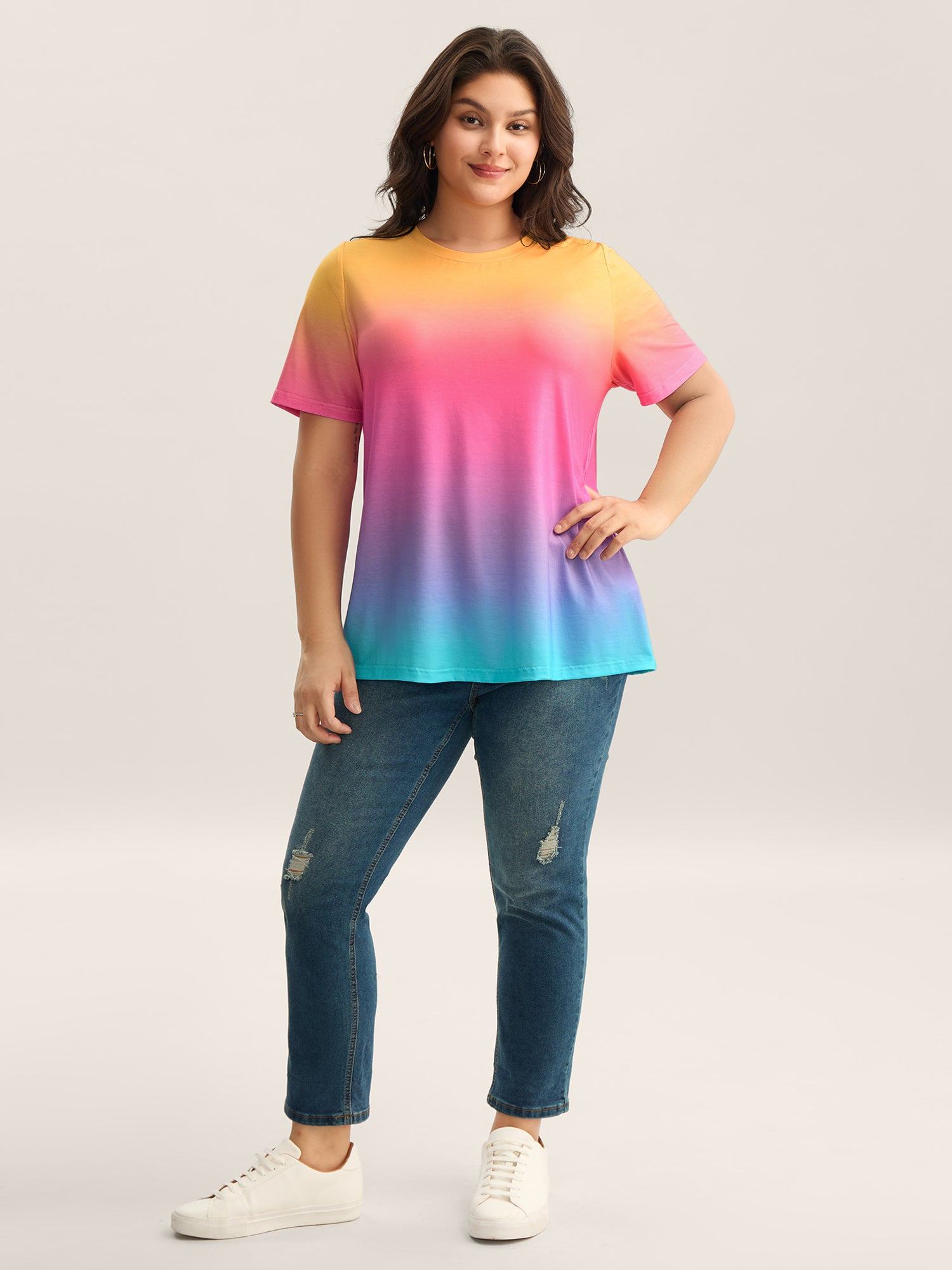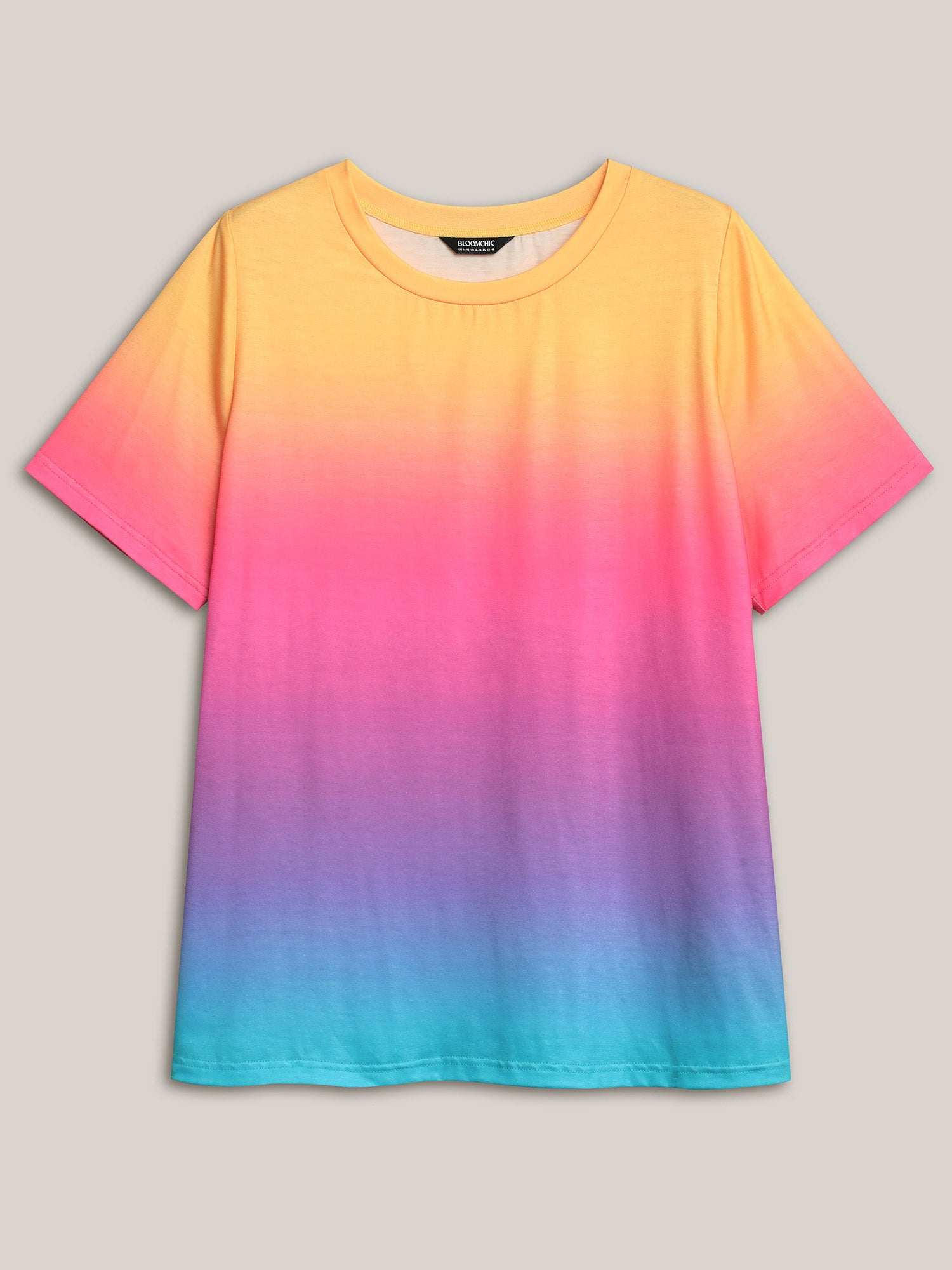 Ombre Gradient Crew Neck Curvy T-Shirt