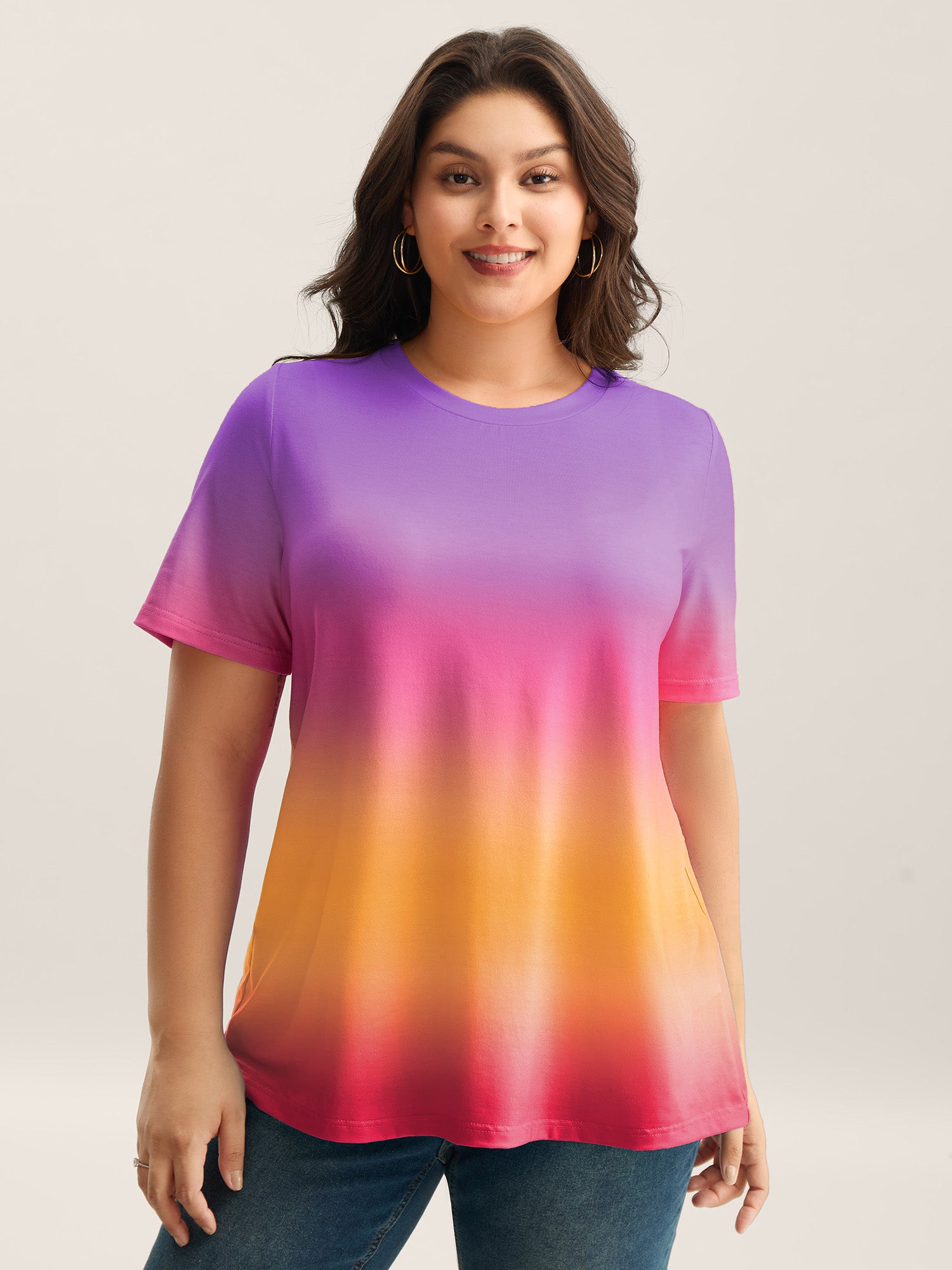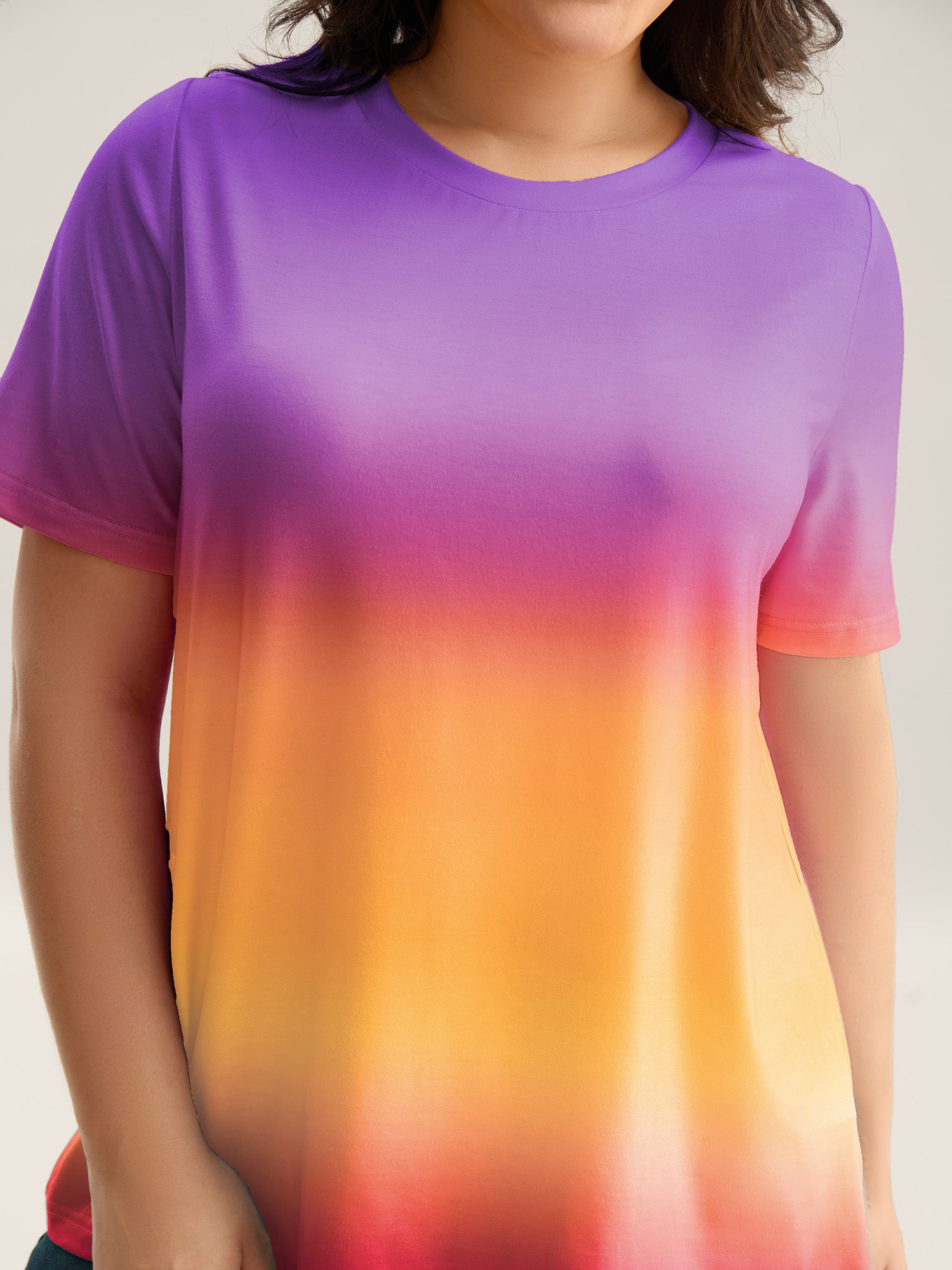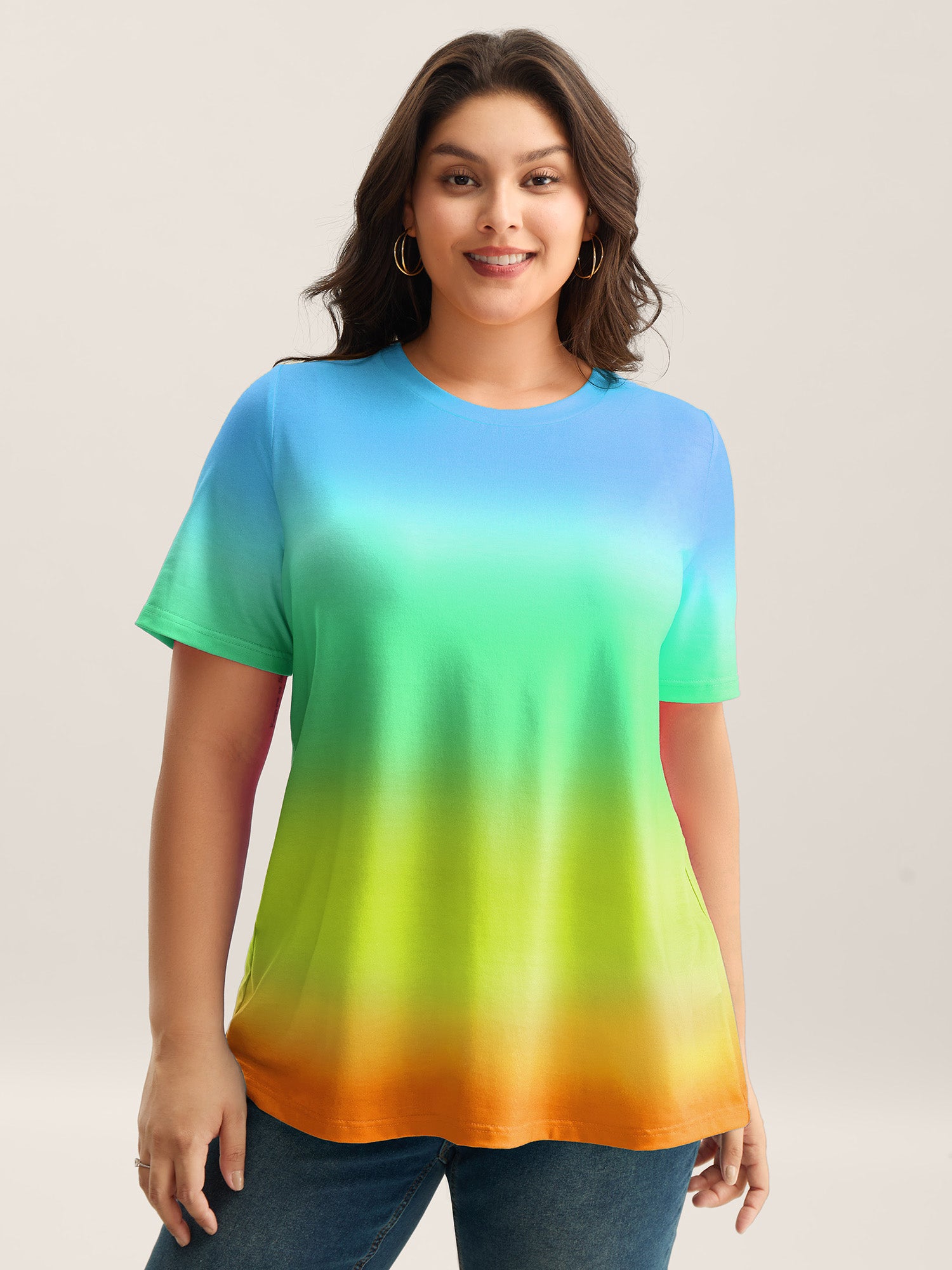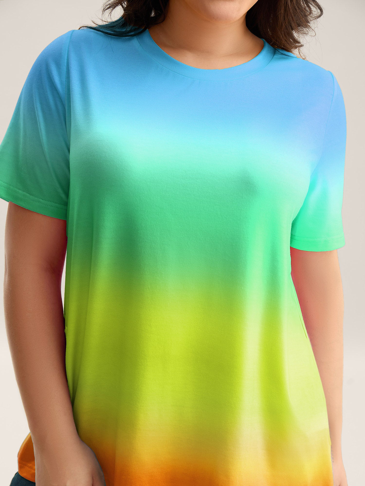 Ombre Gradient Crew Neck Curvy T-Shirt