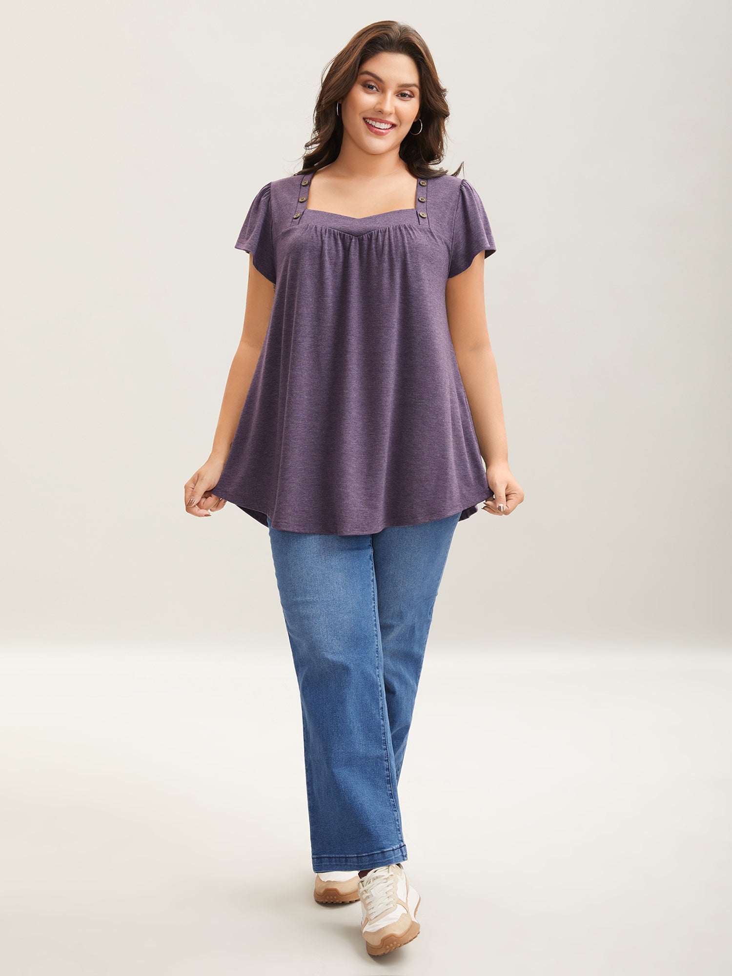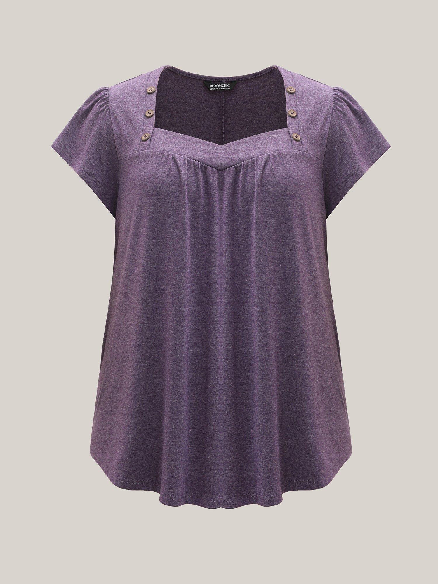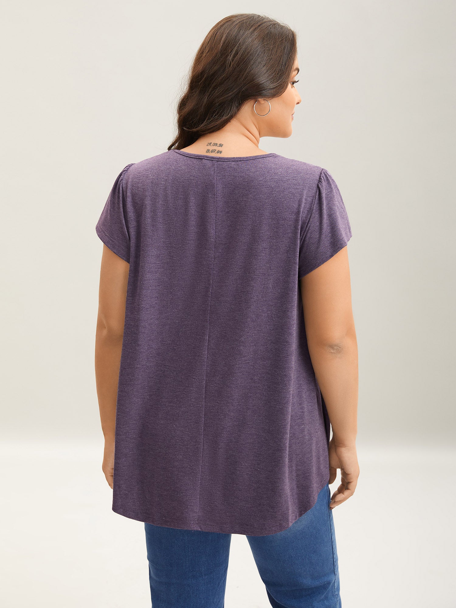 Pleated Shoulder Button Plain Relaxed T-Shirt
