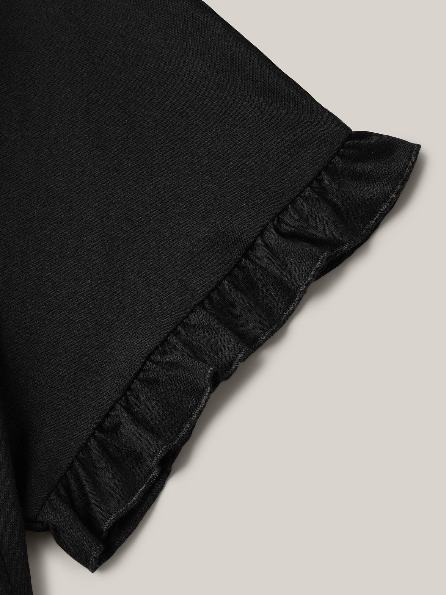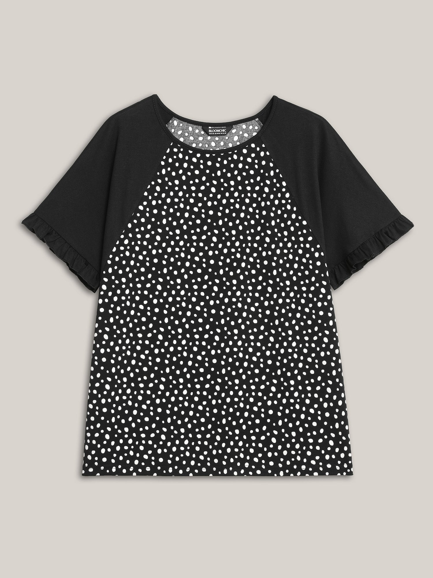 Printed Spliced Raglan Sleeve Ruffled T-Shirt