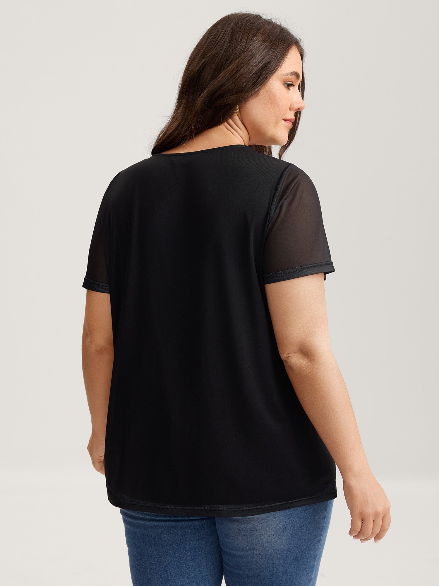 Romantic Floral Motif Sheer Knit T-Shirt