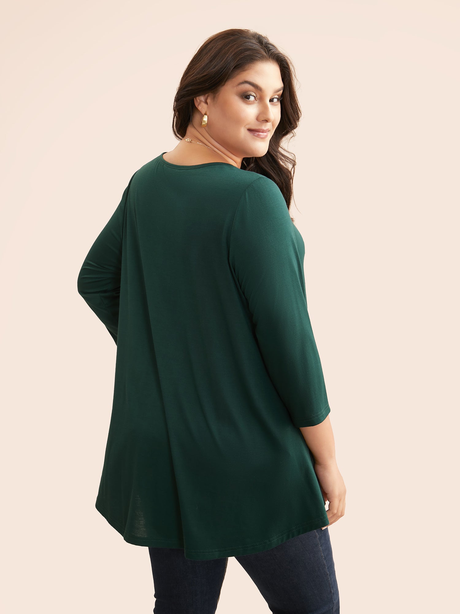 Solid Crew Neck Medium Stretch T-shirt
