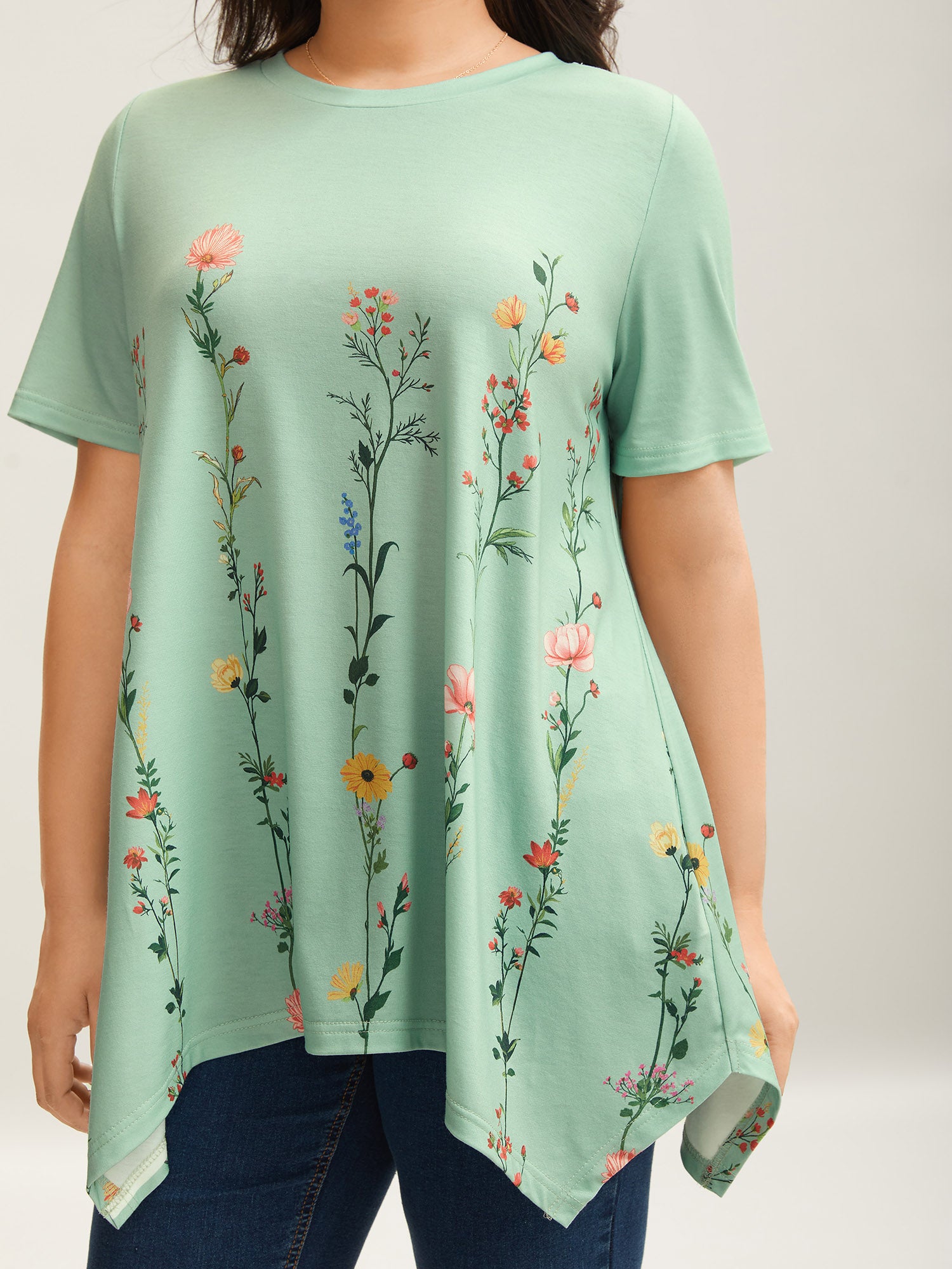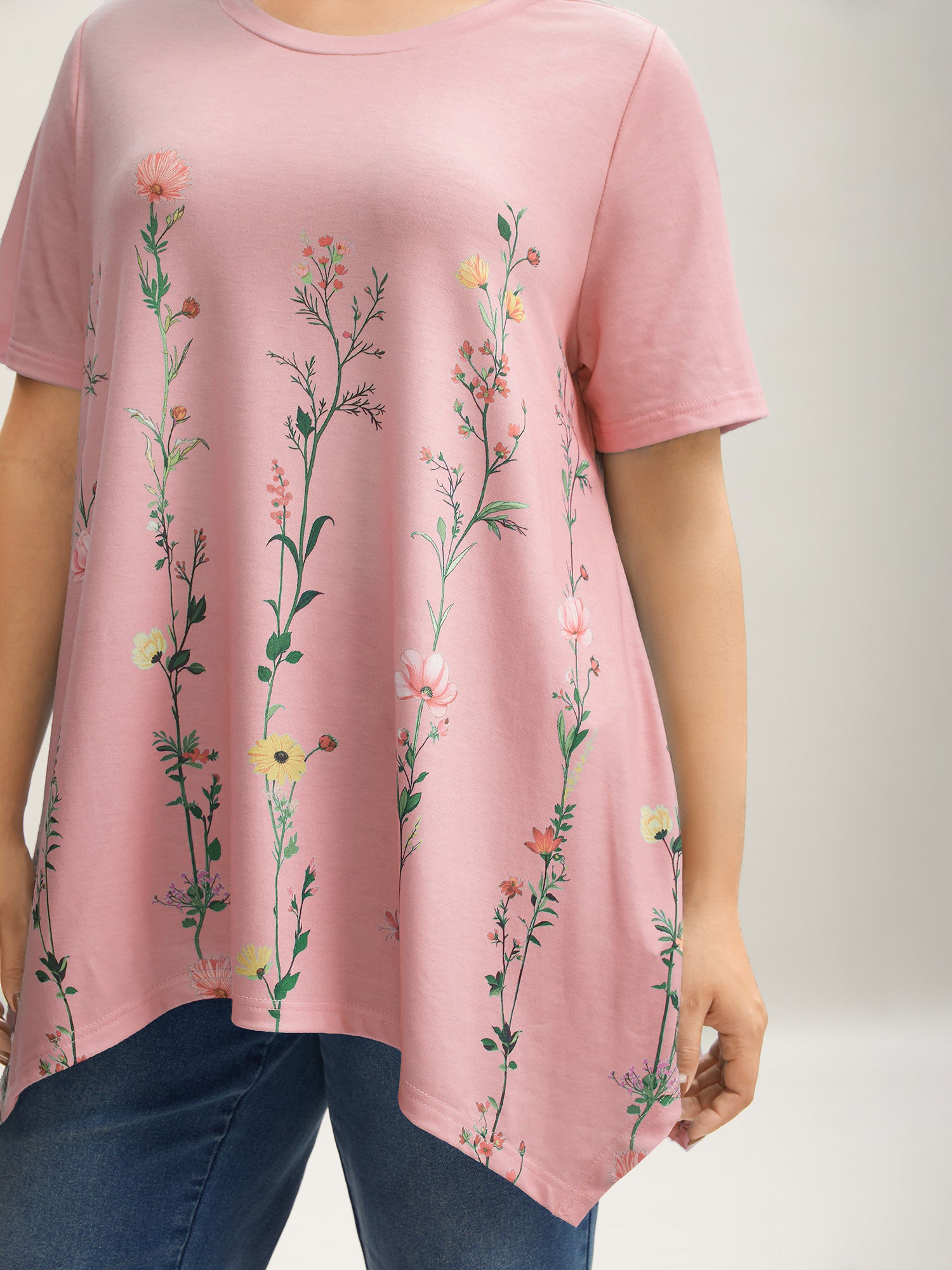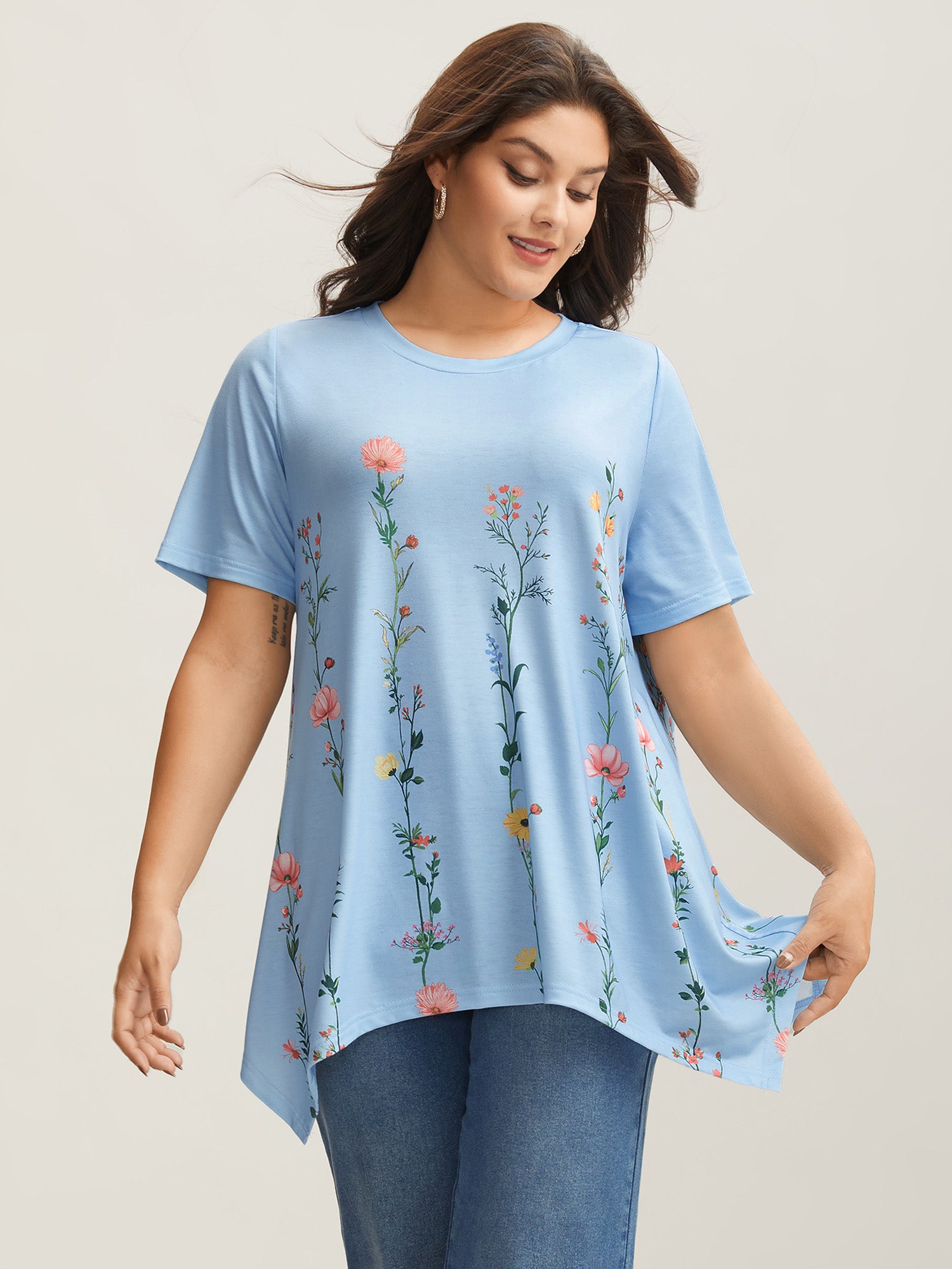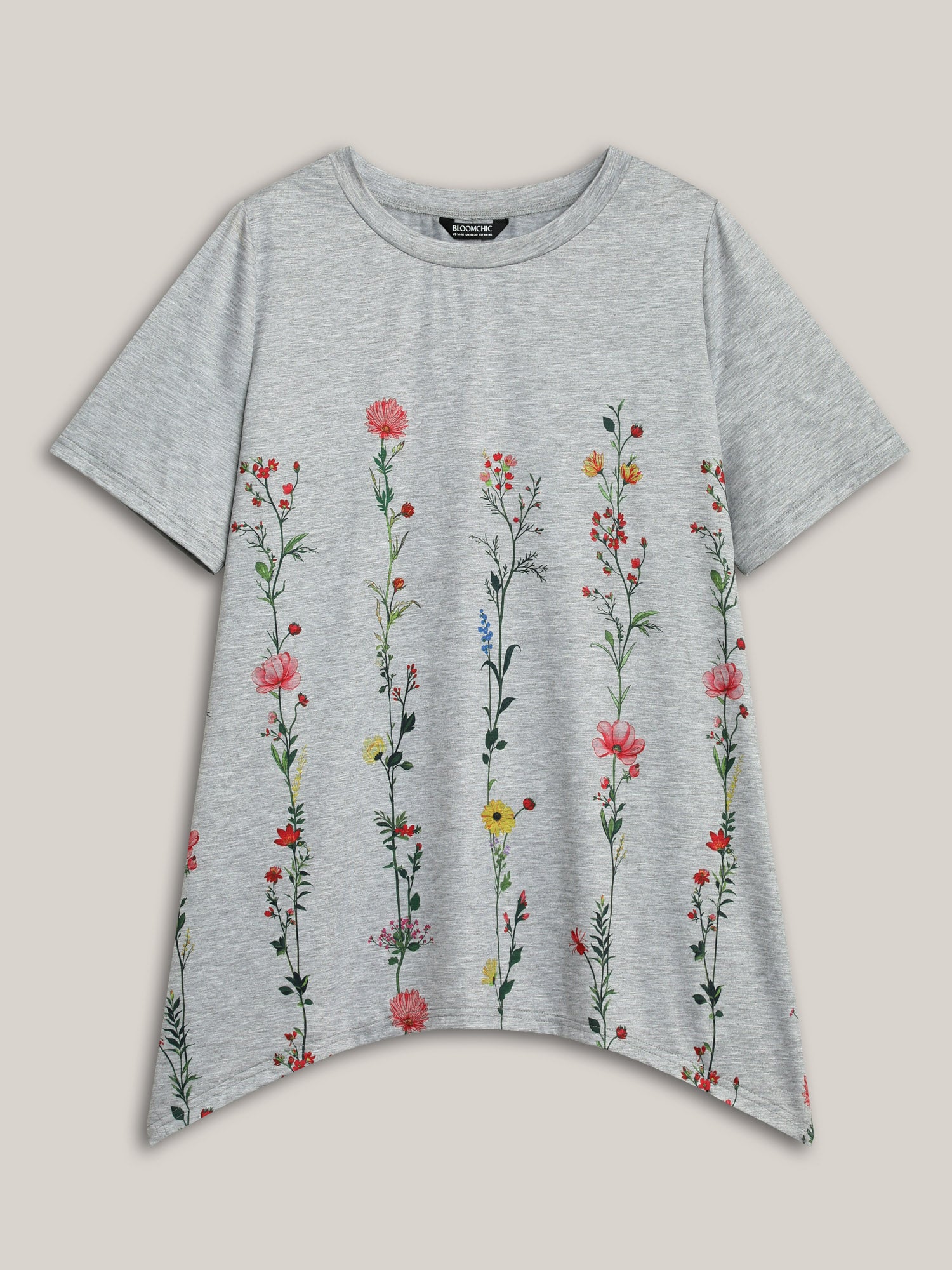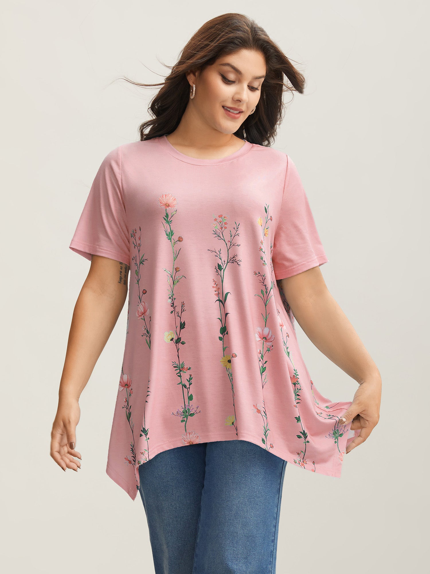 Stretchy Hi-Low Hem Floral T-Shirt
