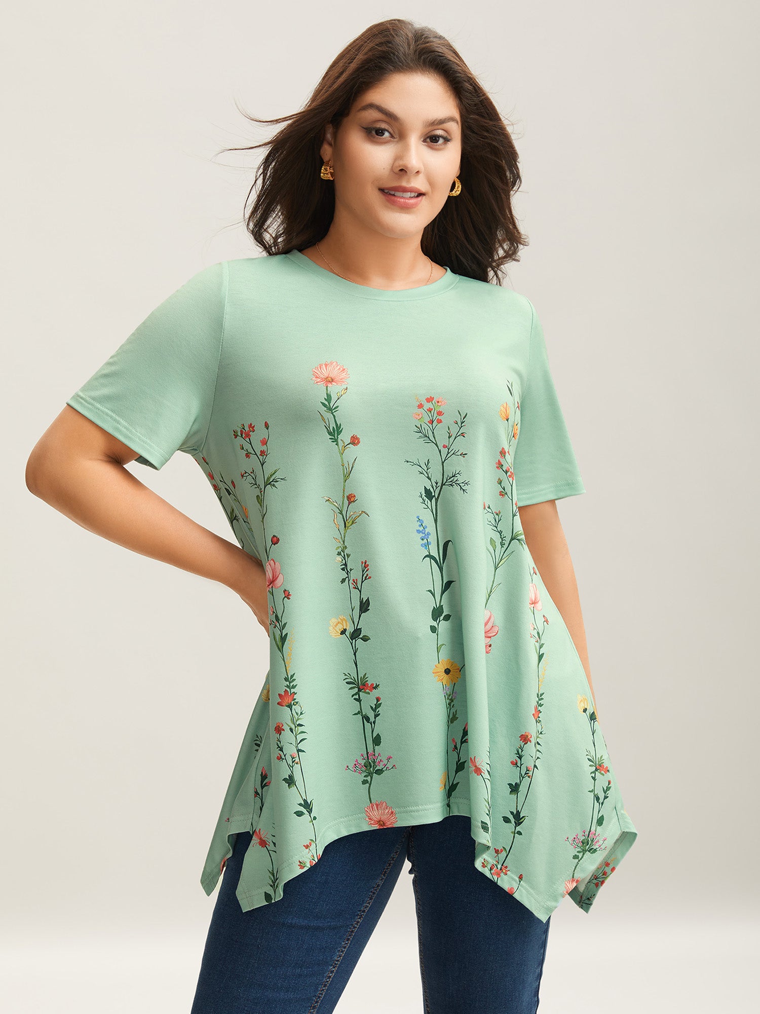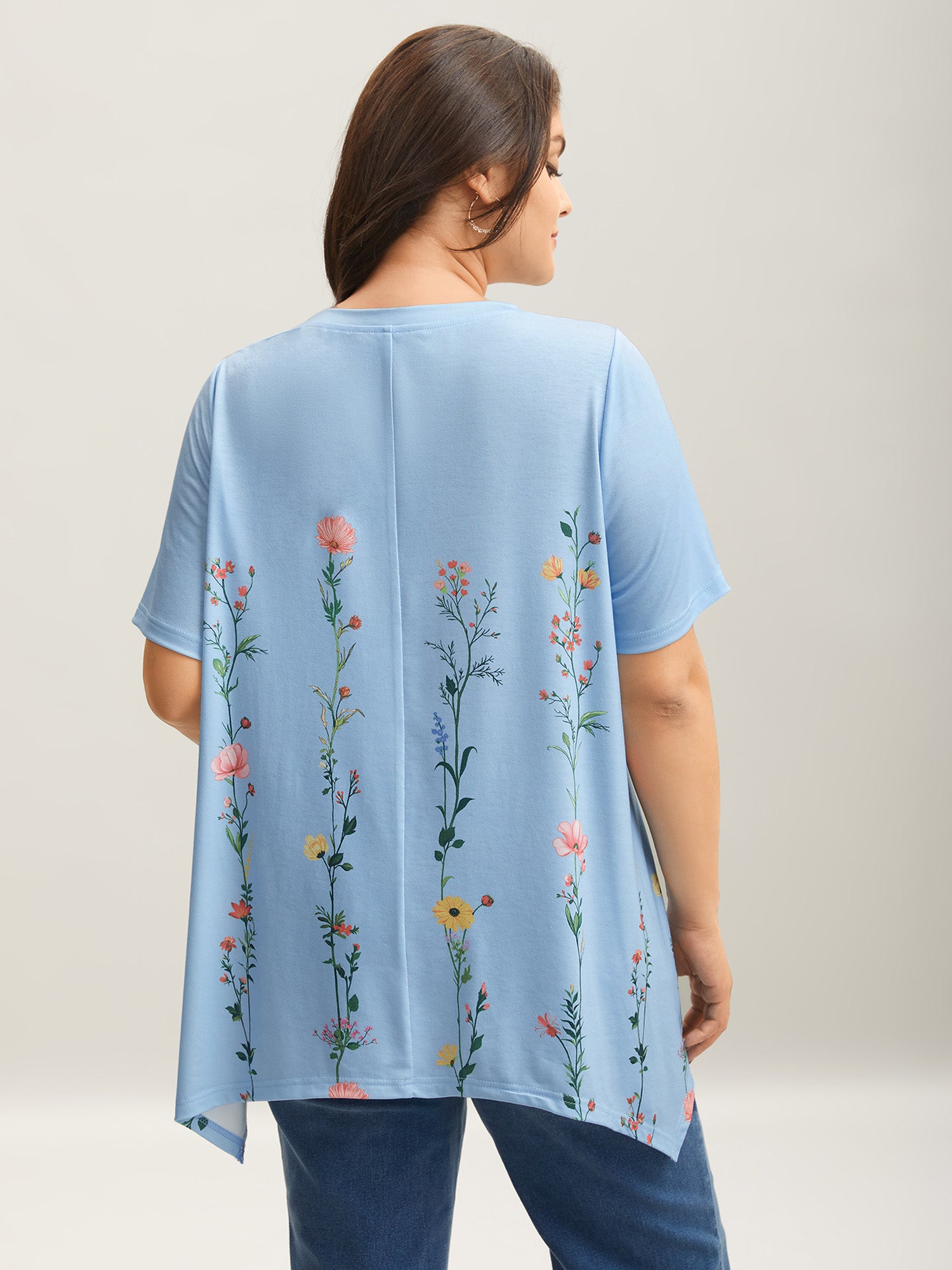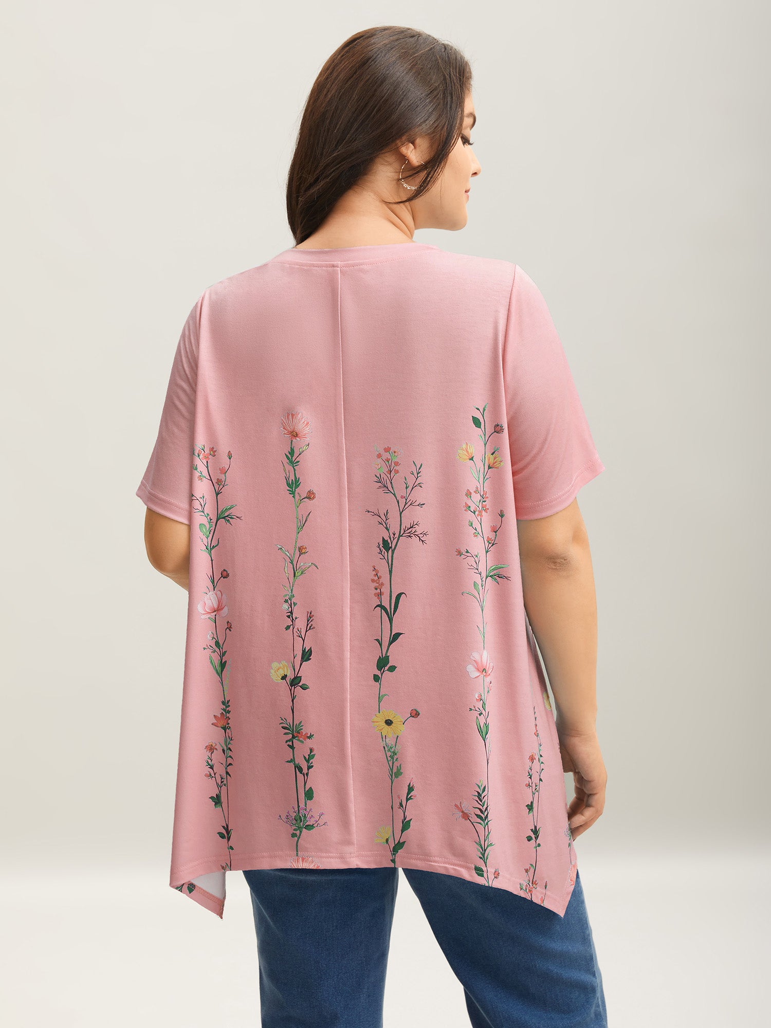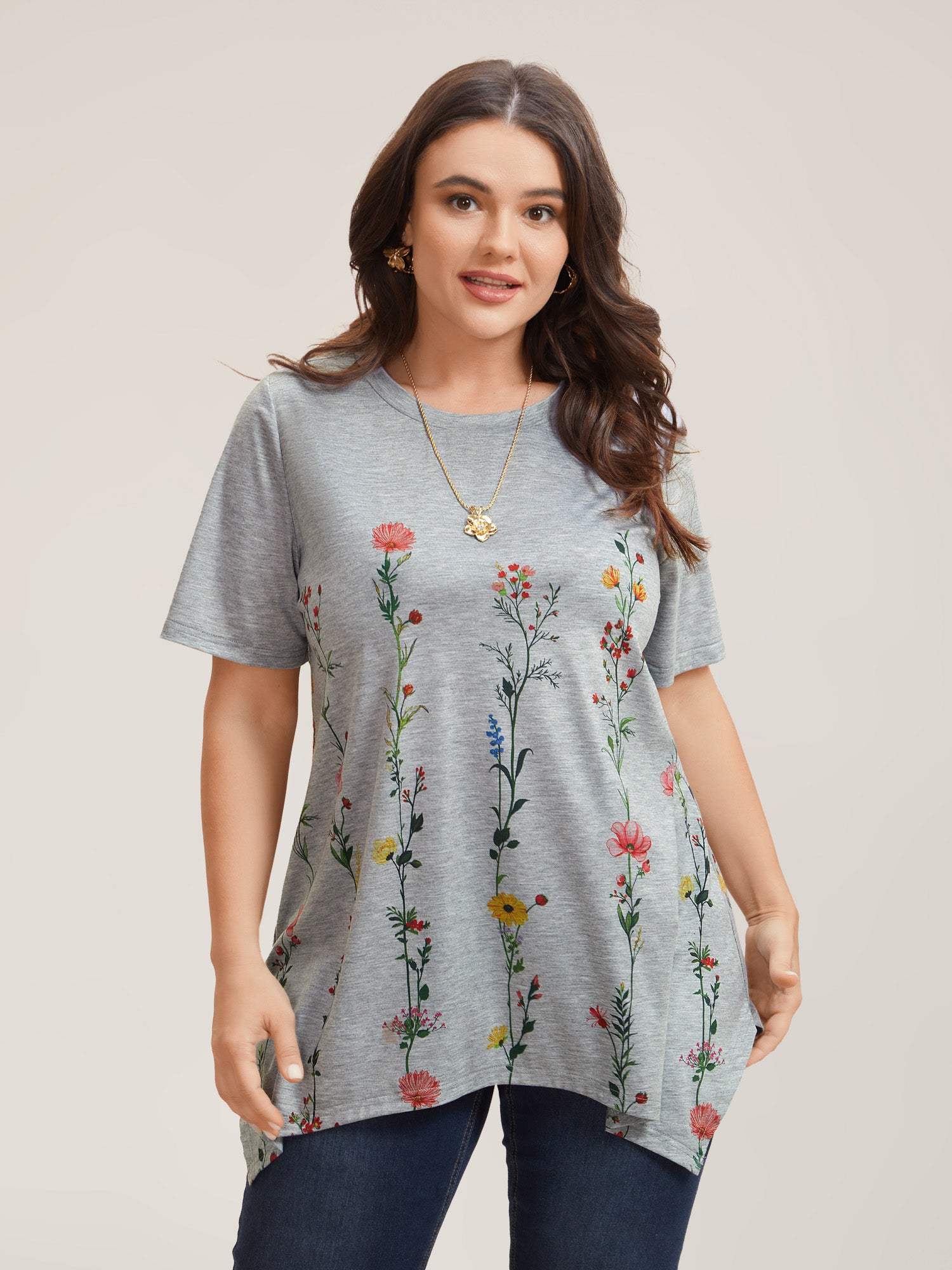Stretchy Hi-Low Hem Floral T-Shirt