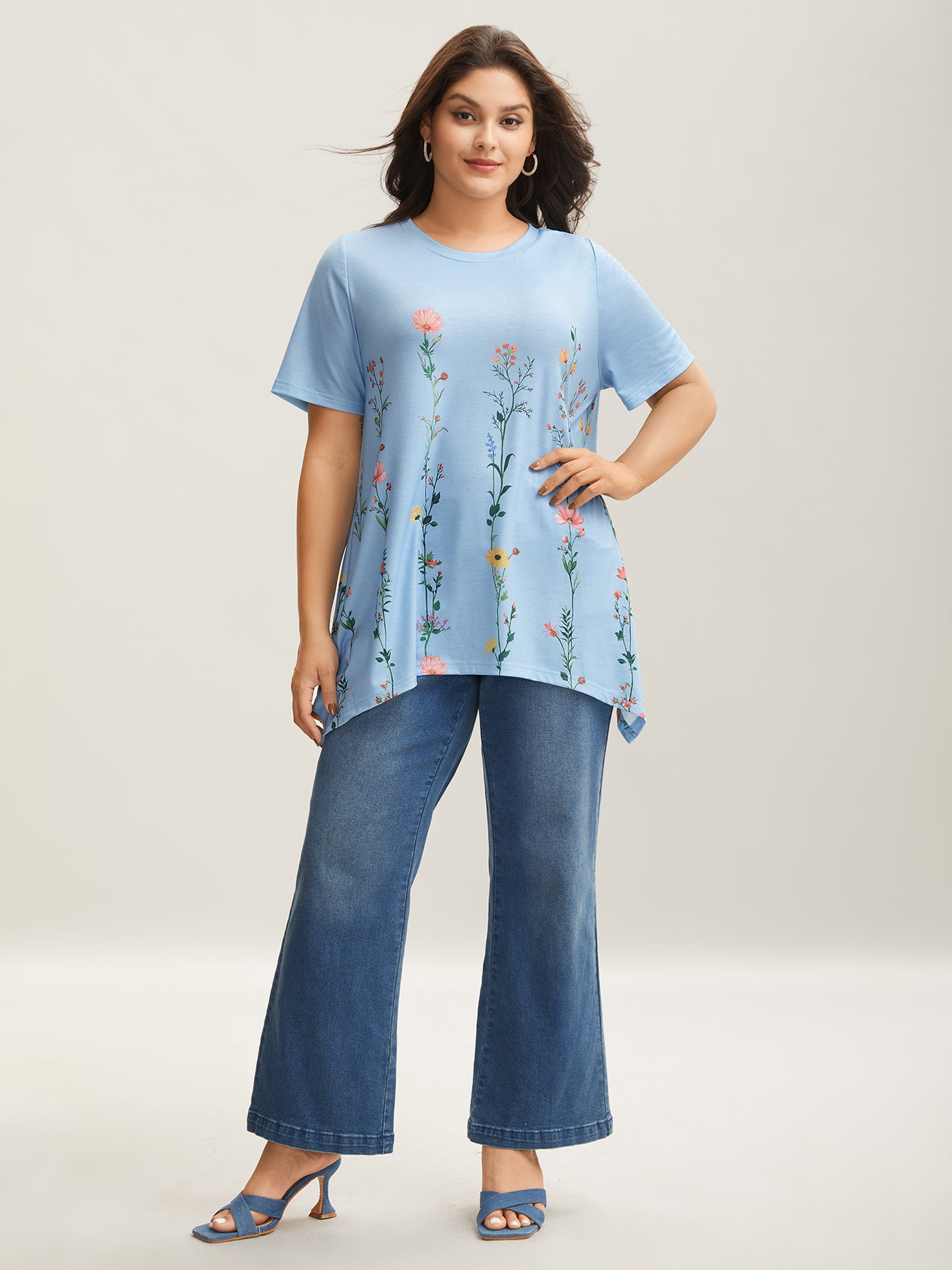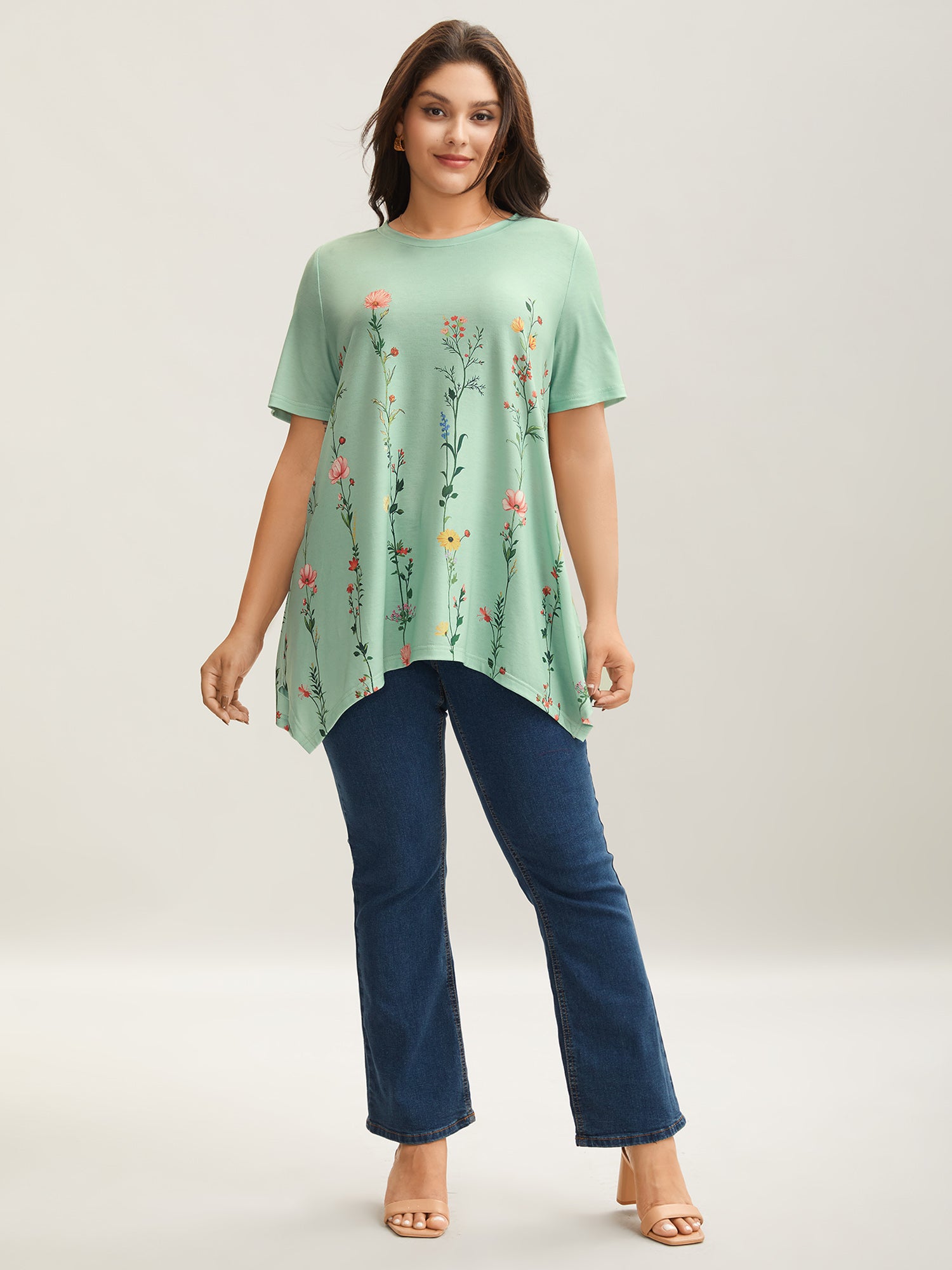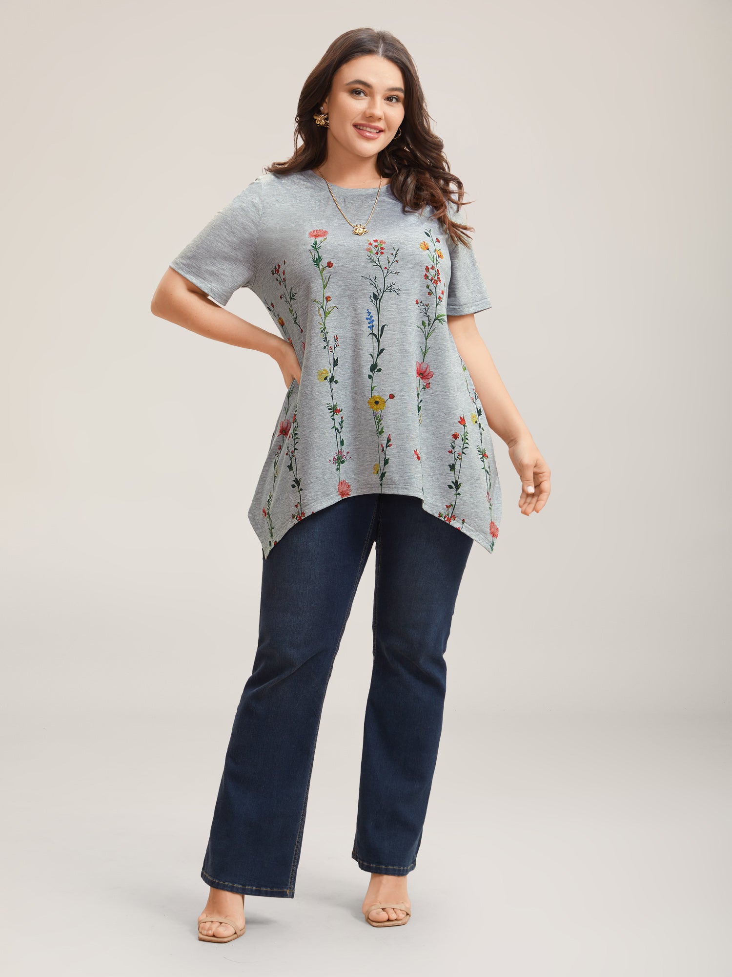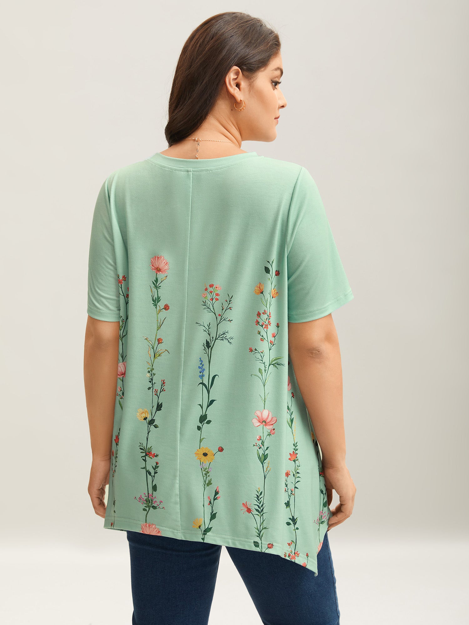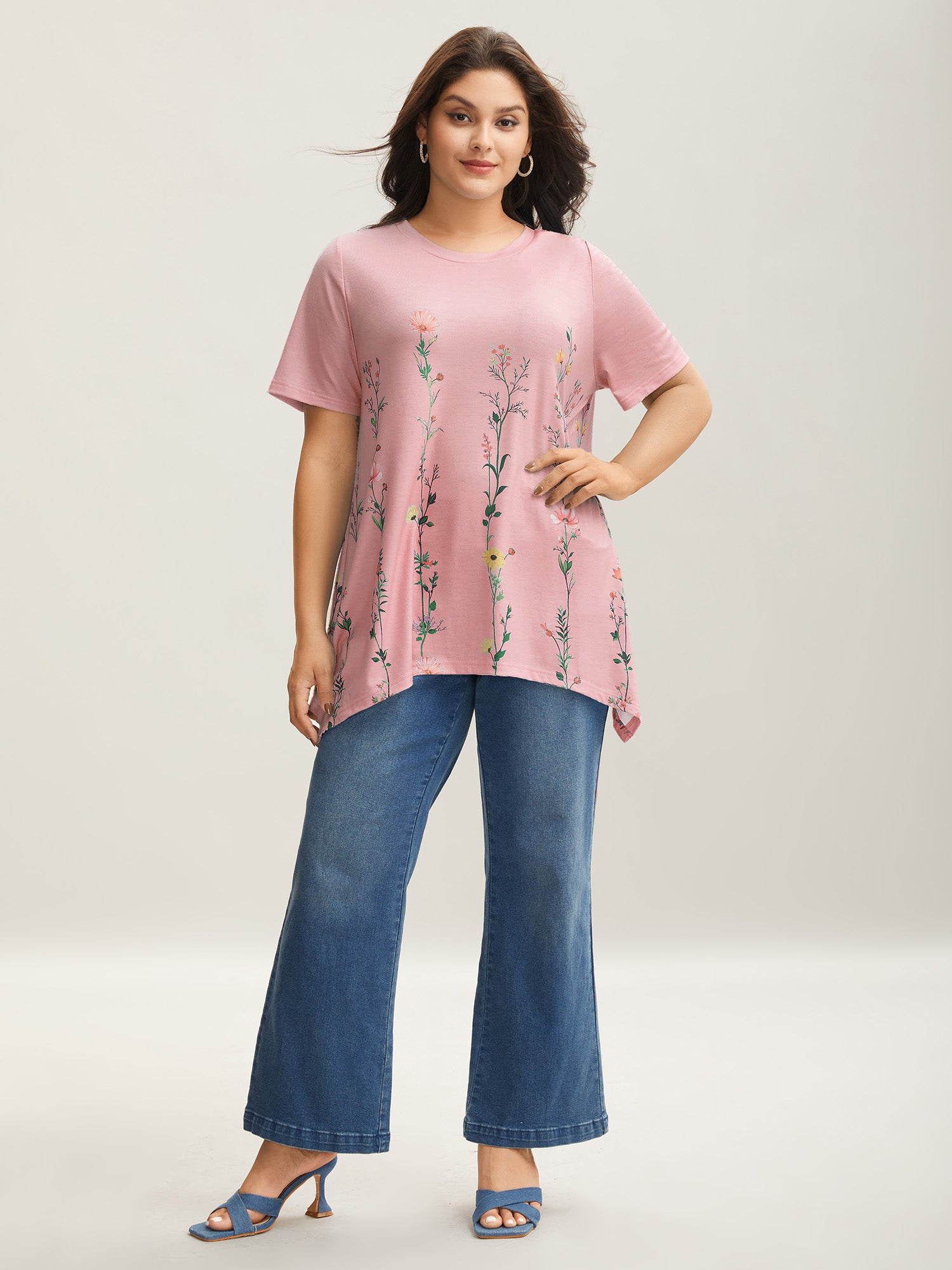 Stretchy Hi-Low Hem Floral T-Shirt