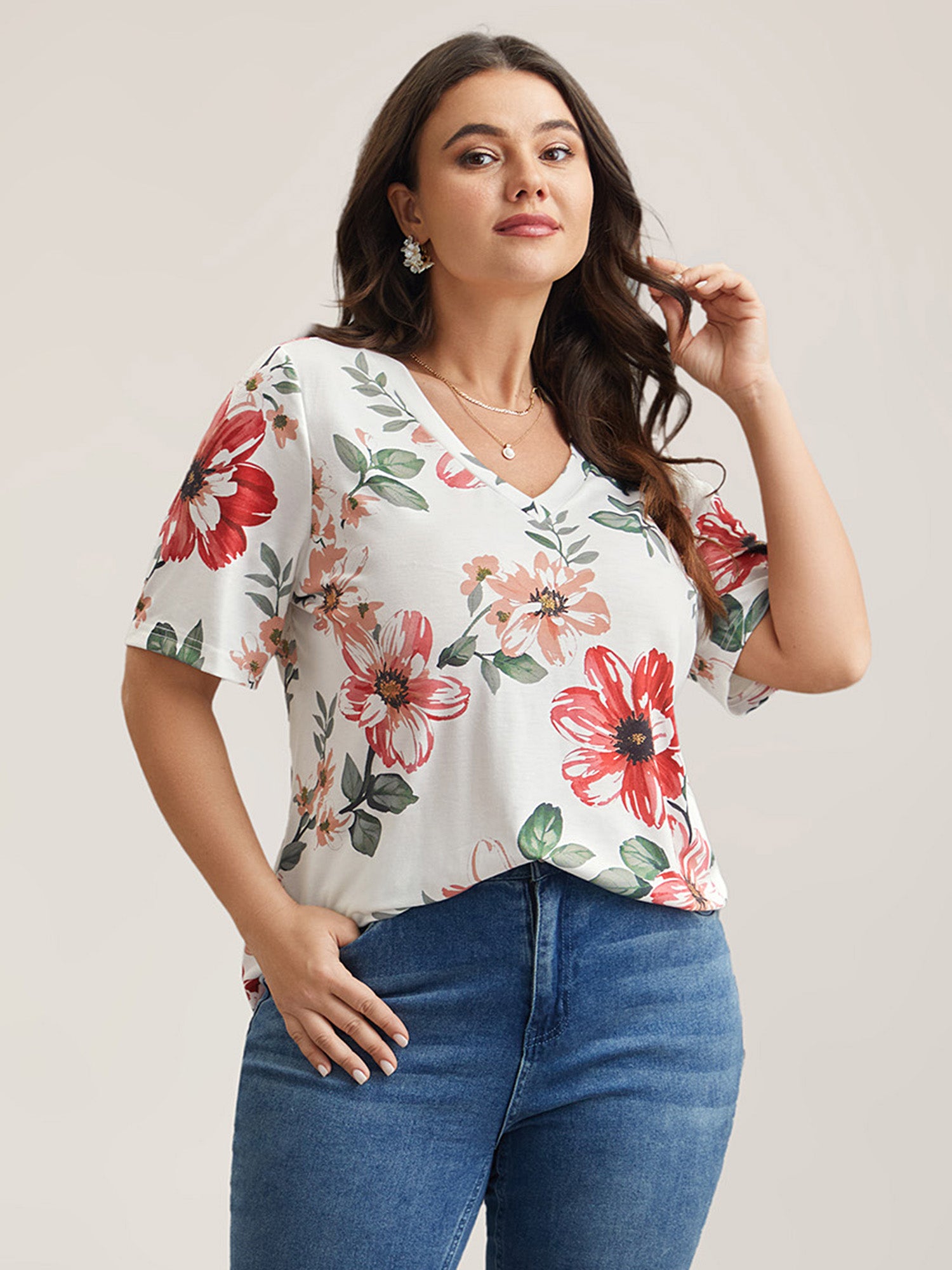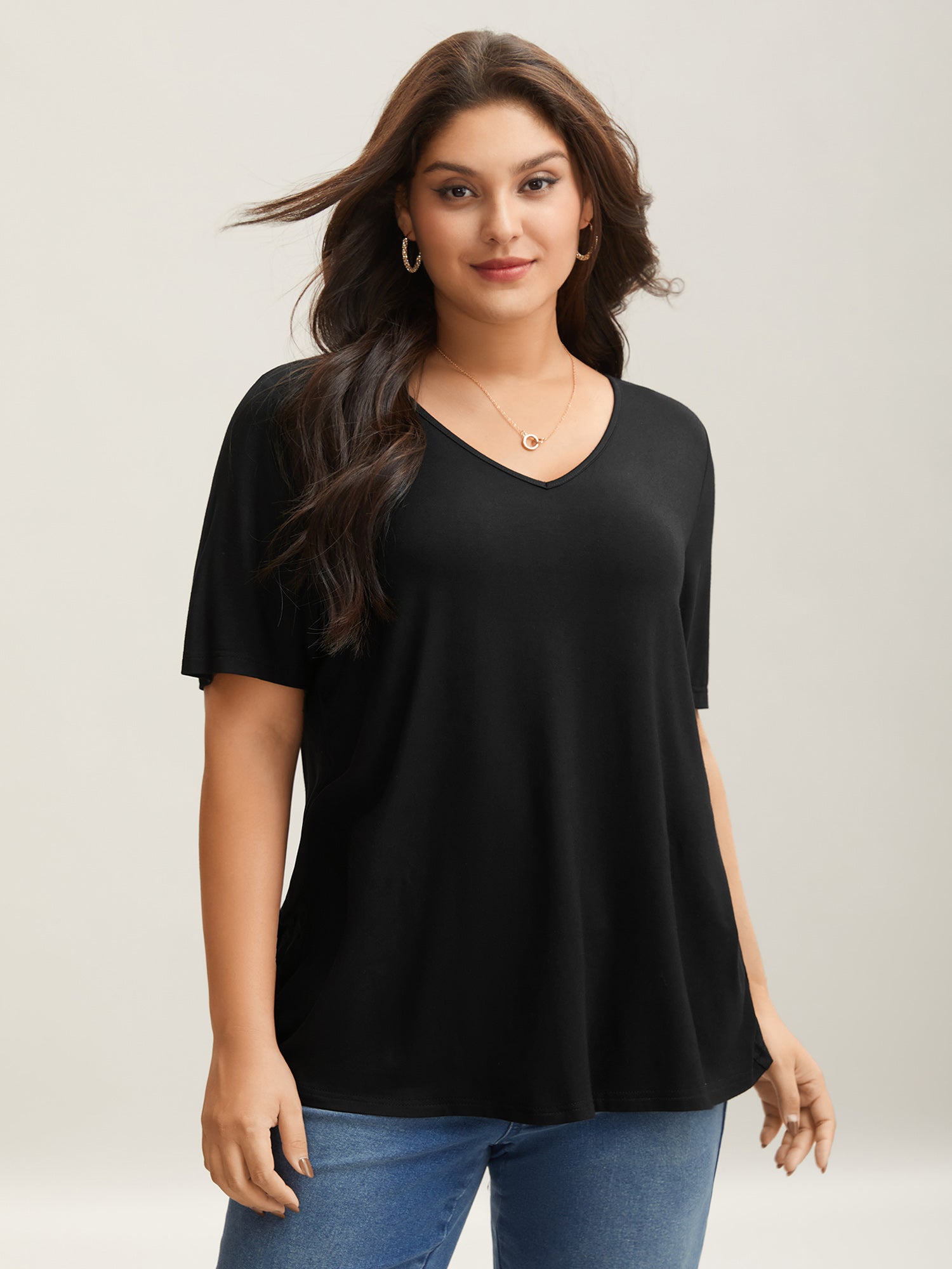 V-Neck Stretchy Flared Sleeve T-Shirt