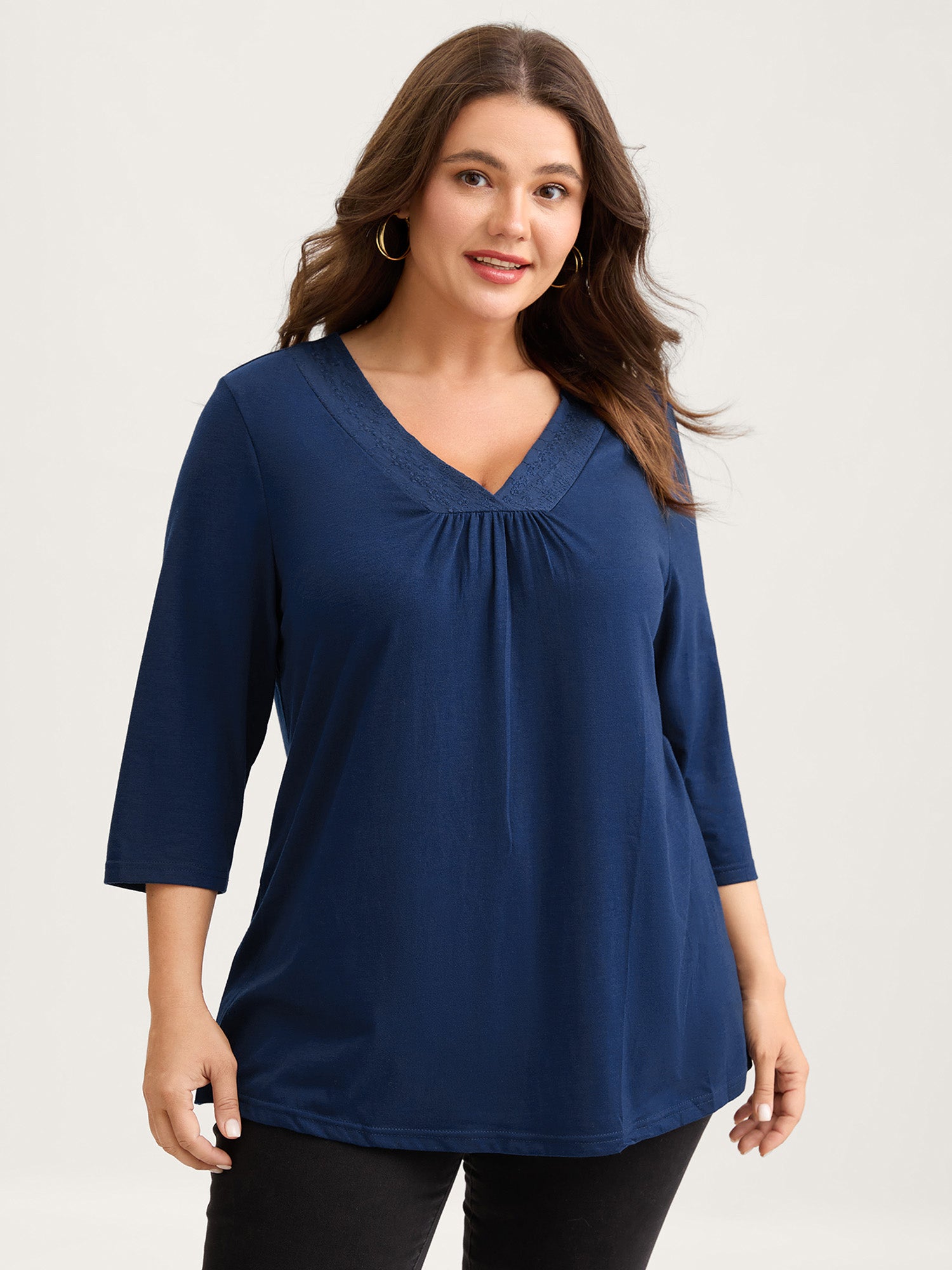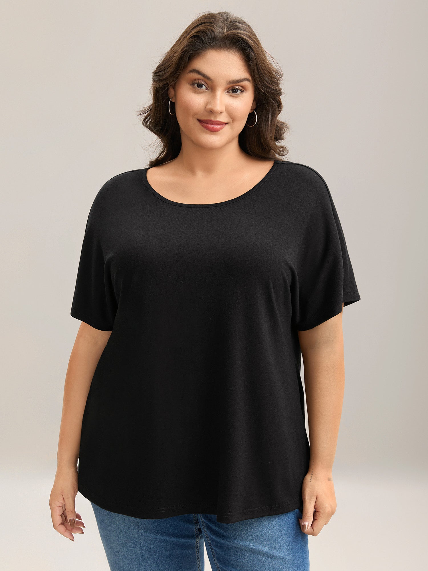 Supersoft Stretchy Scalloped Neck Solid T-Shirt