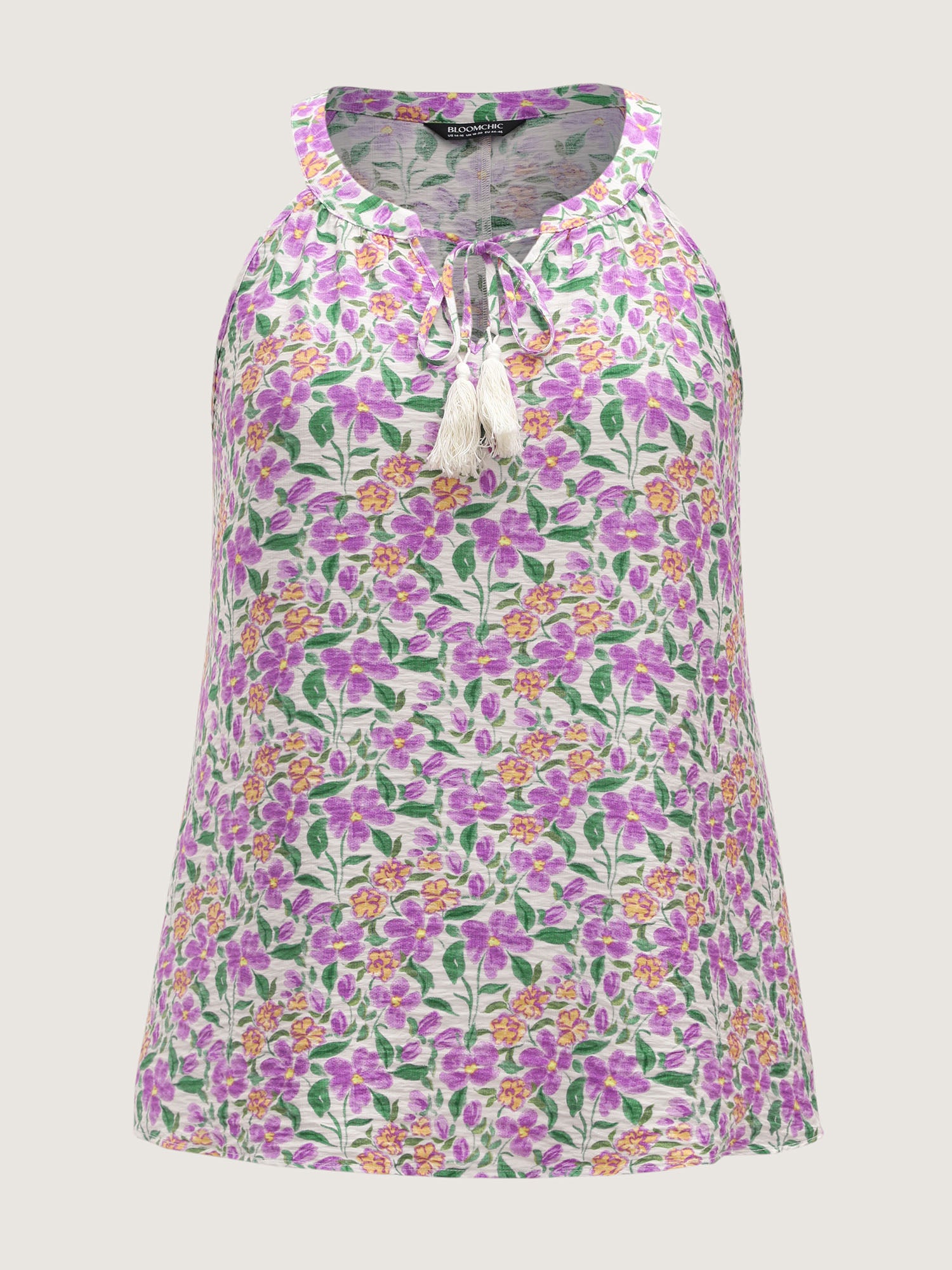 Floral Print Neck Tassels Tank Top