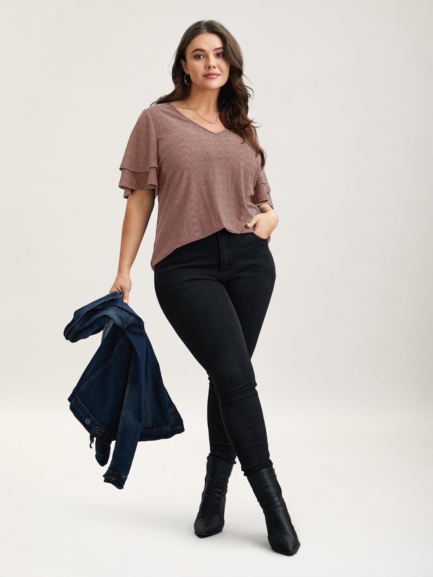 • Jacquard Textured Lotus Leaf Sleeve Top