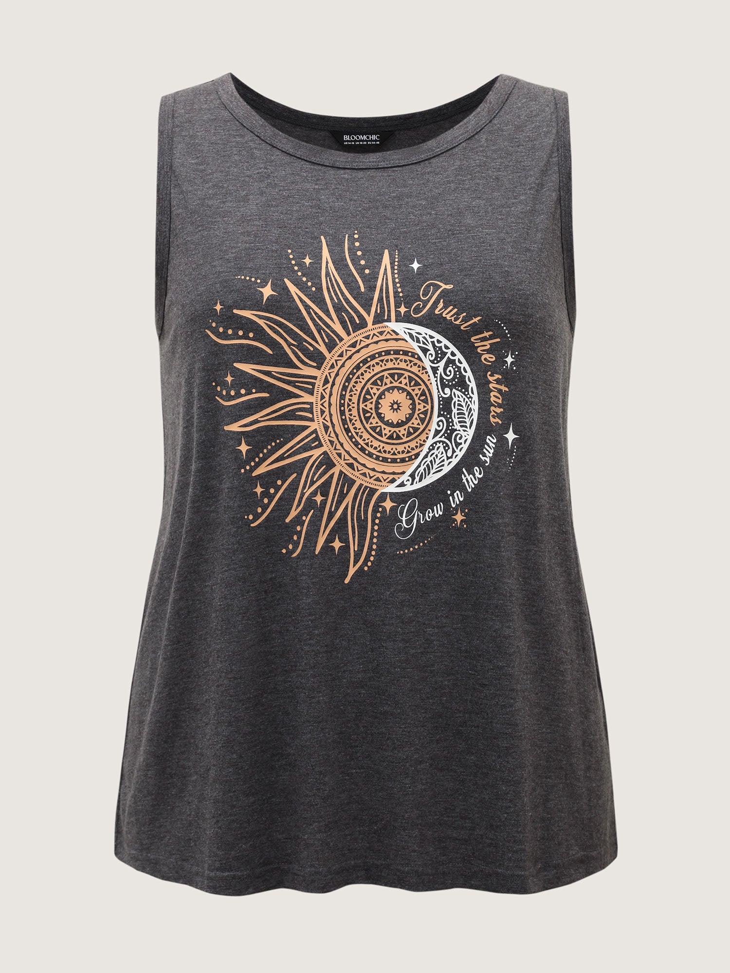 Star & Moon Print Solid Tank Top