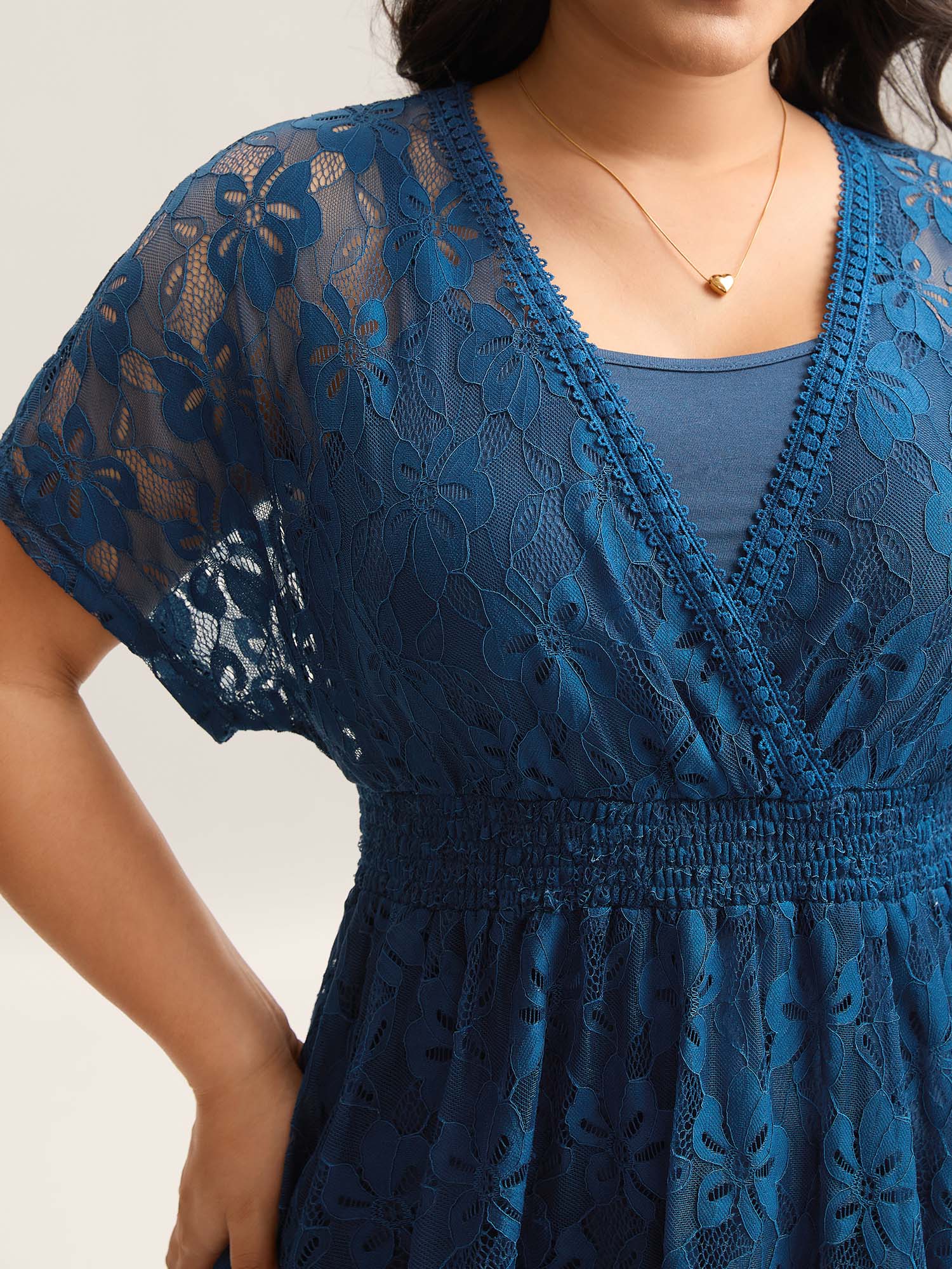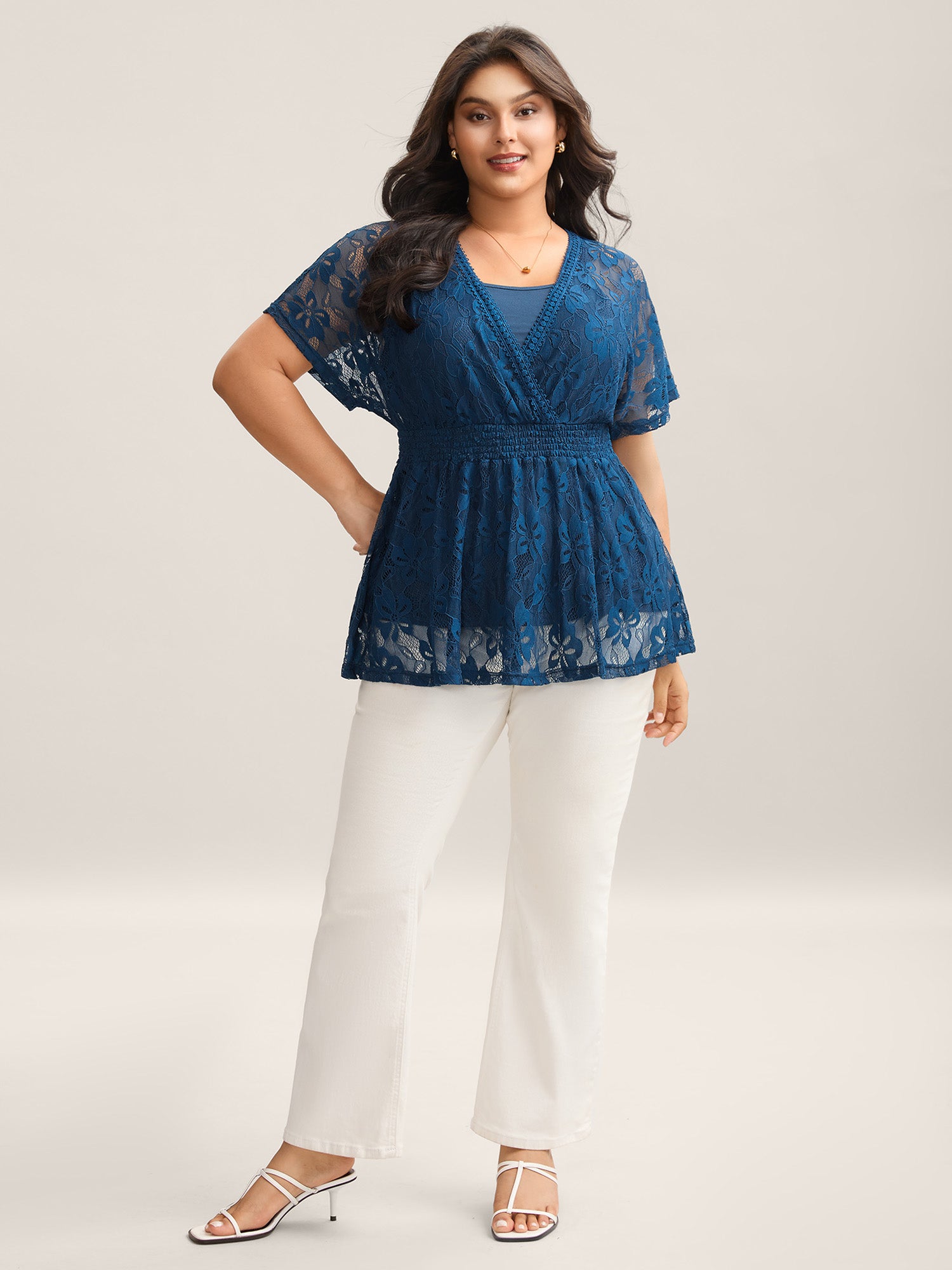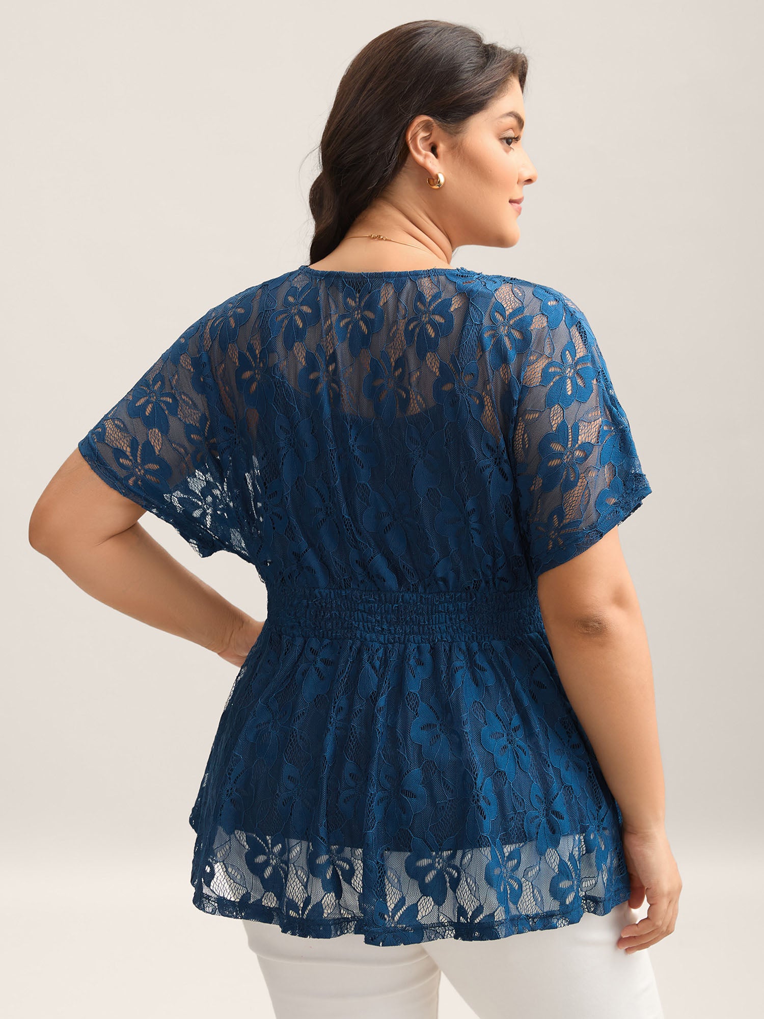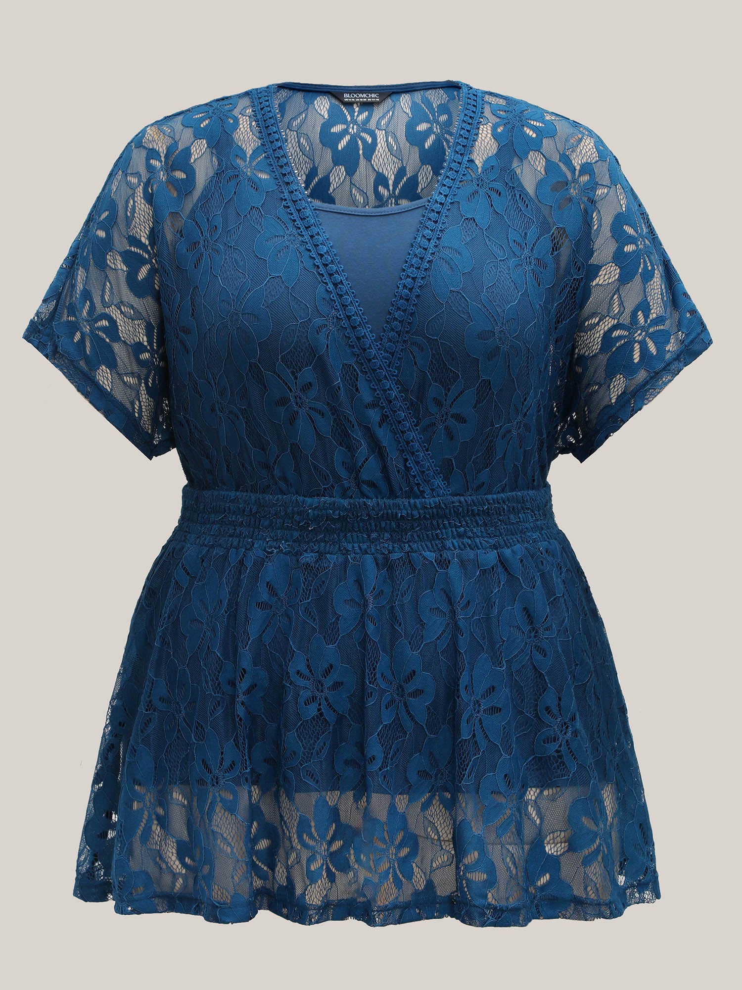 • Stretchy Two-Piece Lace Trim Sheer Top