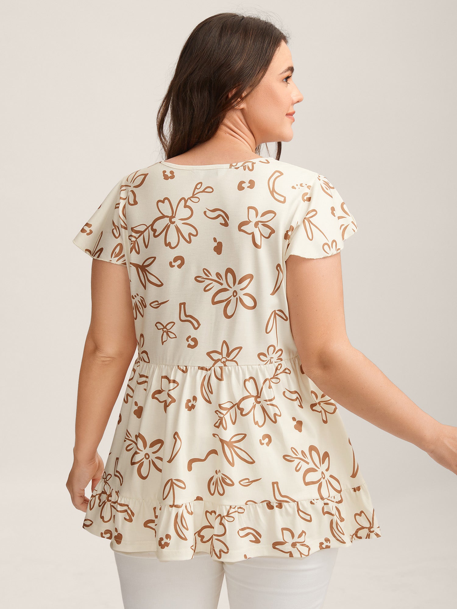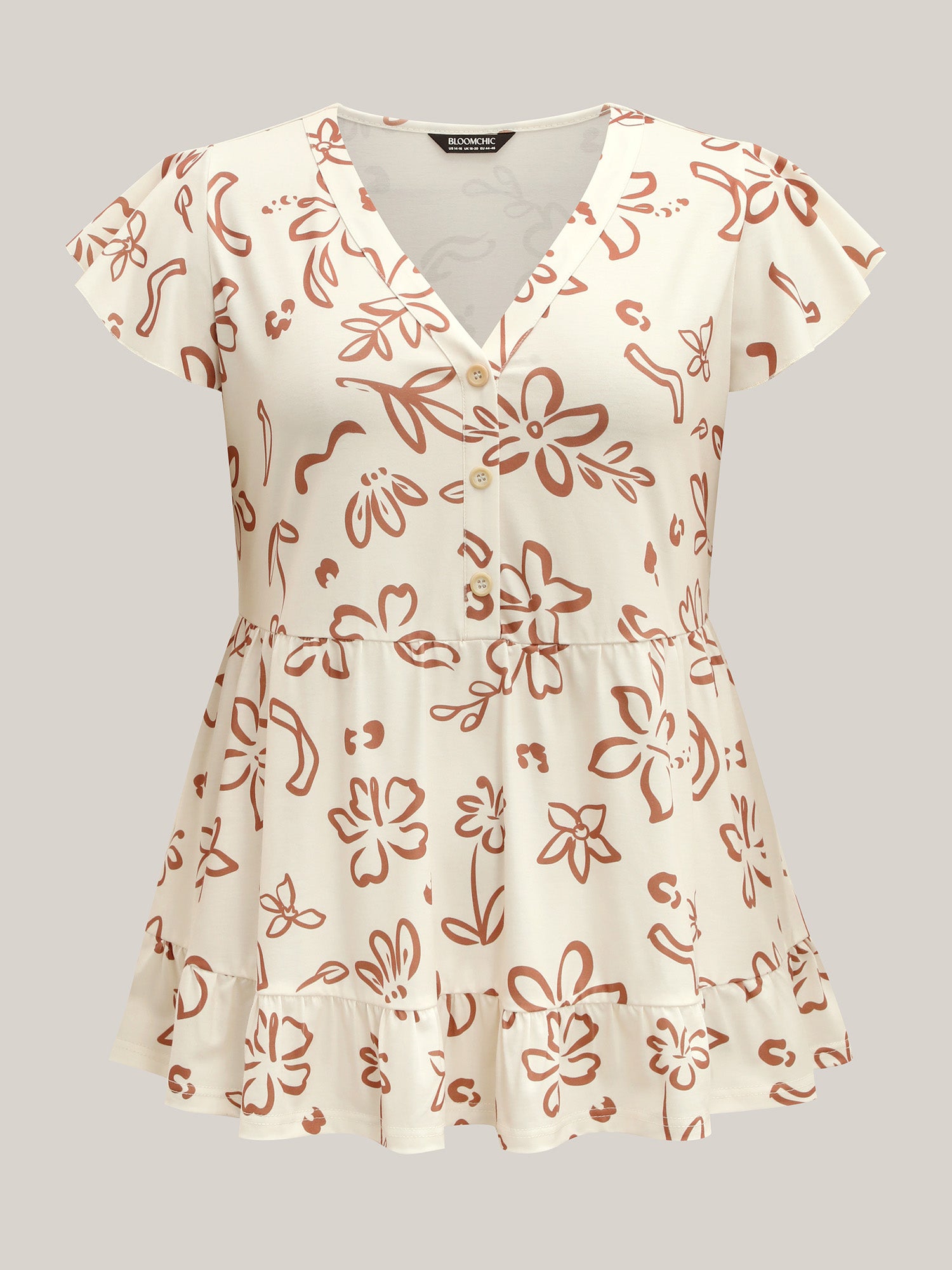 • Whimsical Floral Print Button Detail Top
