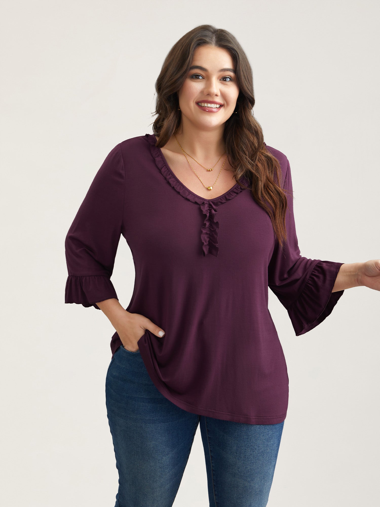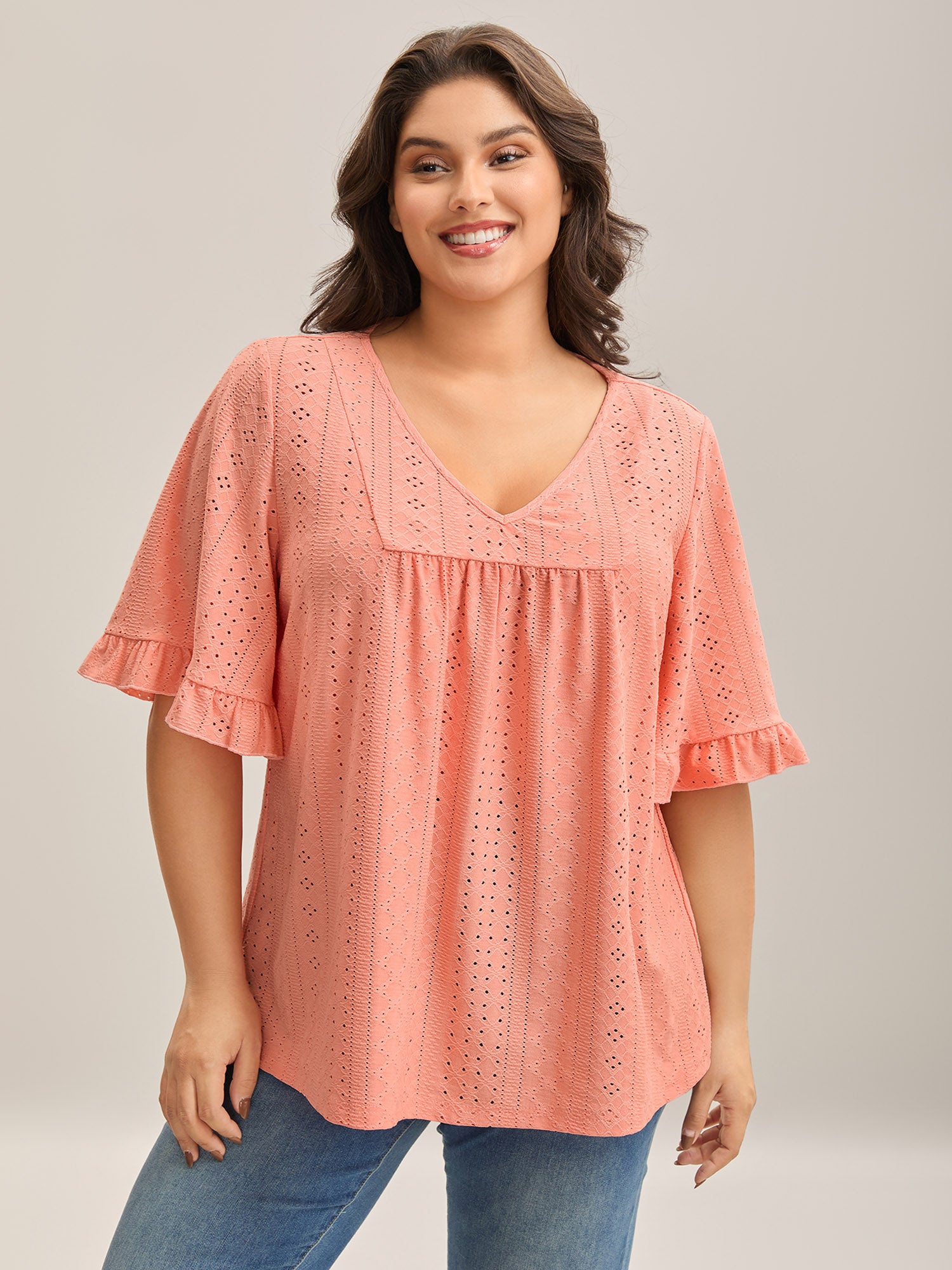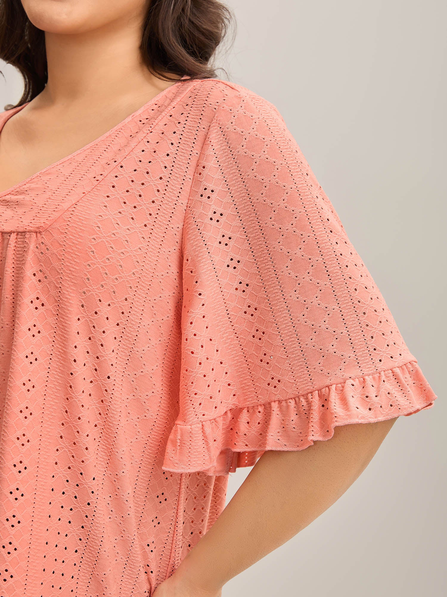 Eyelet Trim Flowy Sleeve Bust-Comfort Top