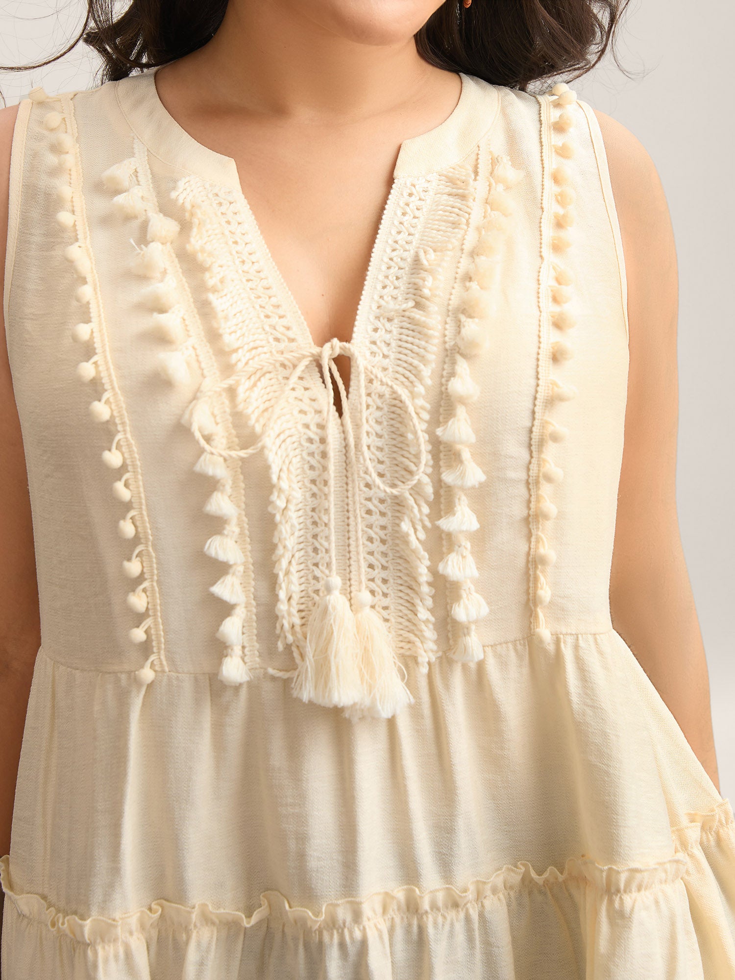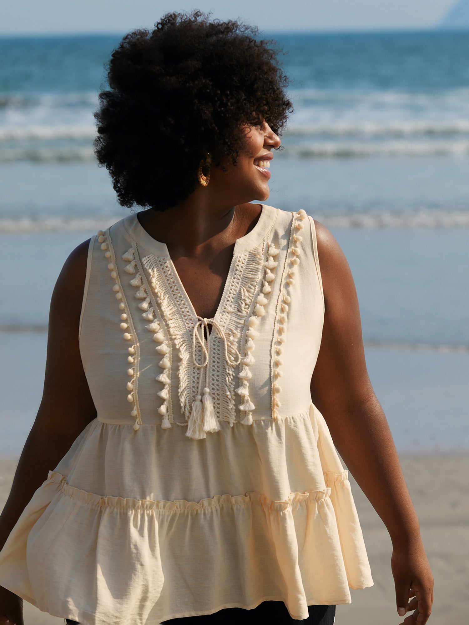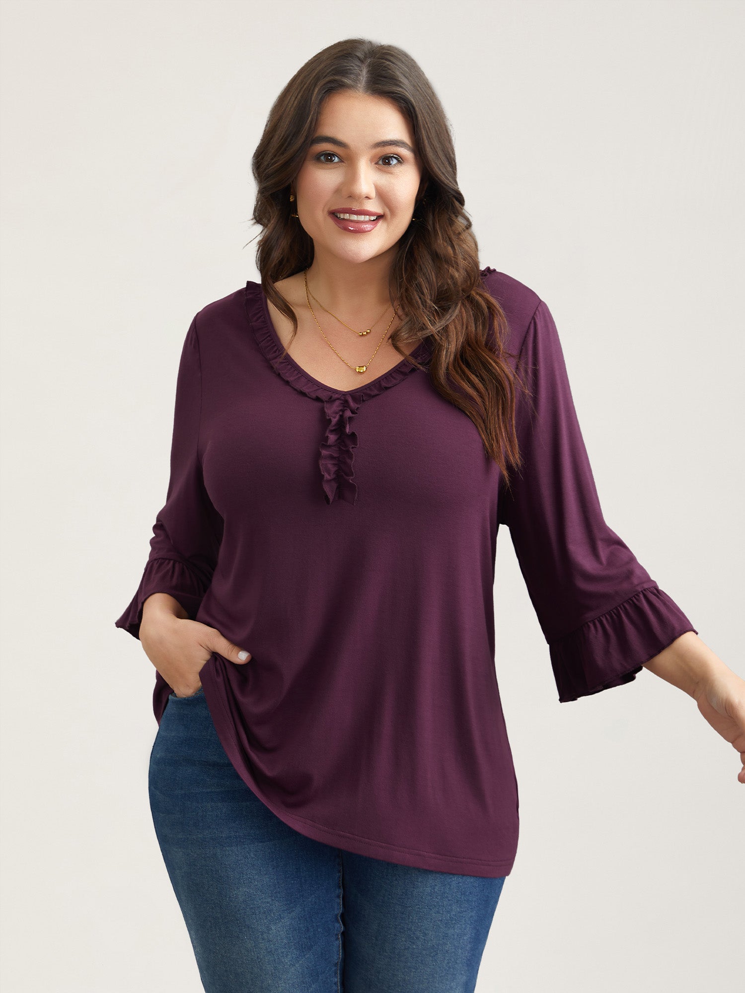 Eyelet Trim Flowy Sleeve Bust-Comfort Top
