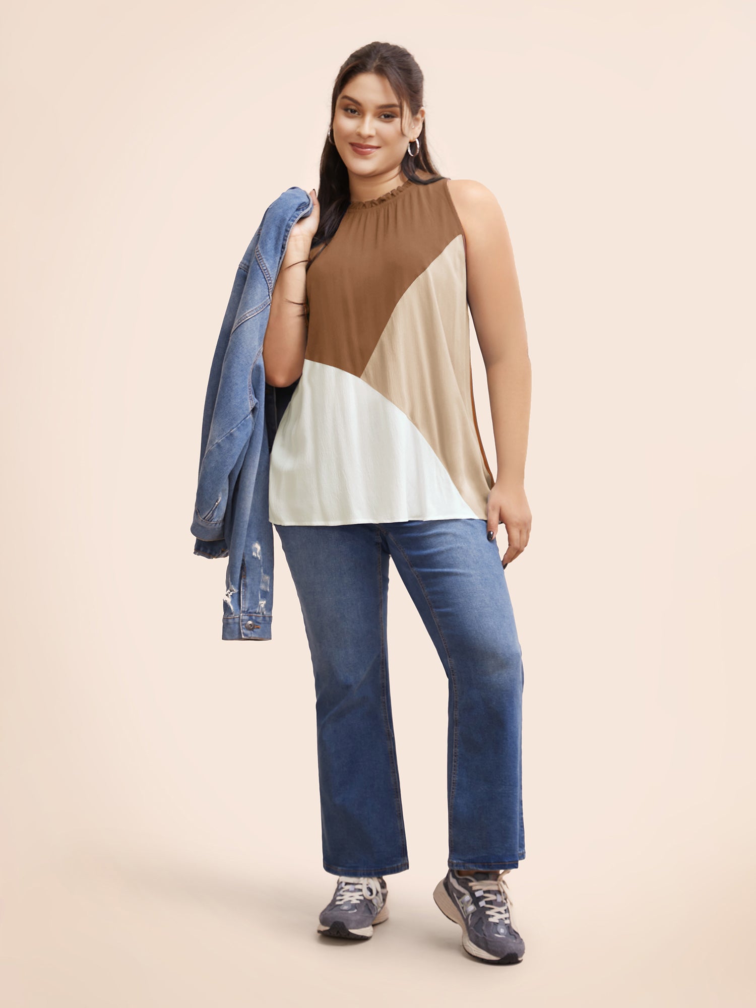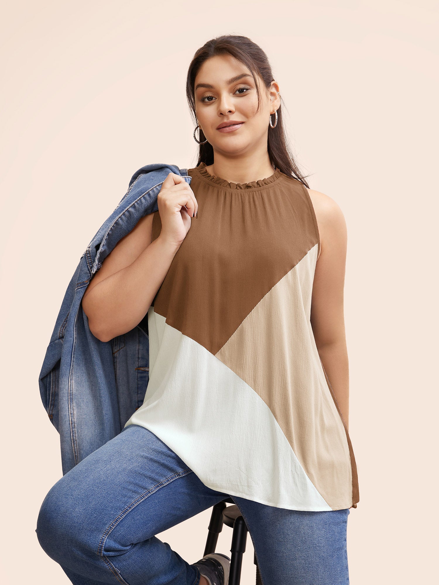 Colorblock Contrast Frill Trim Gathered Tank Top