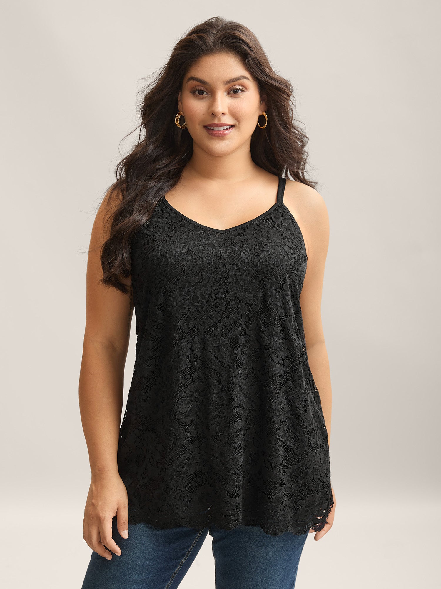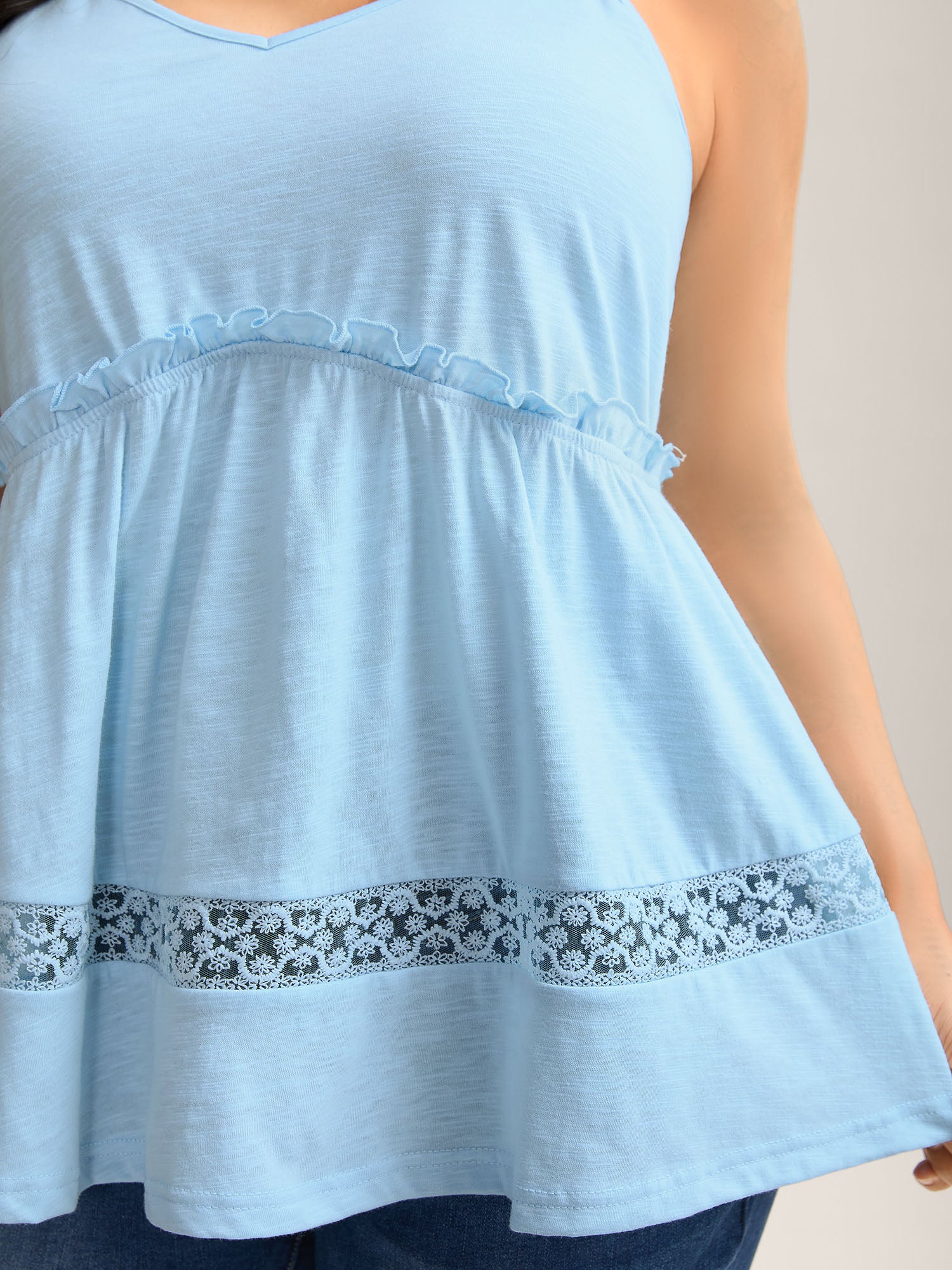 Two-Piece Sheer Lace Trim Ruffled Plain Top