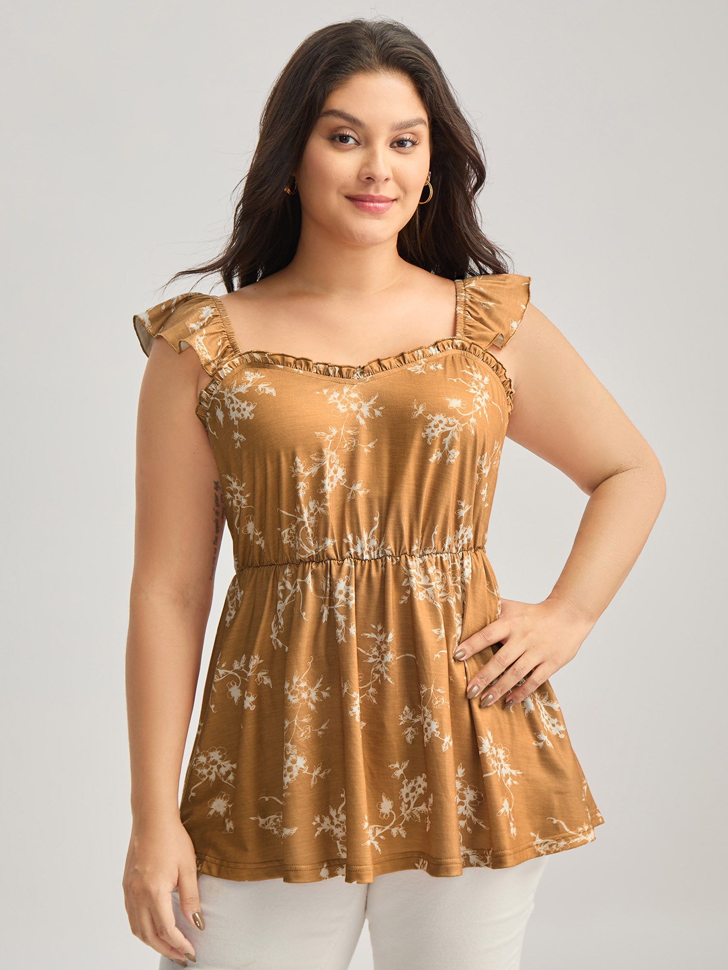 Silhouette Floral Flutter Tank Top