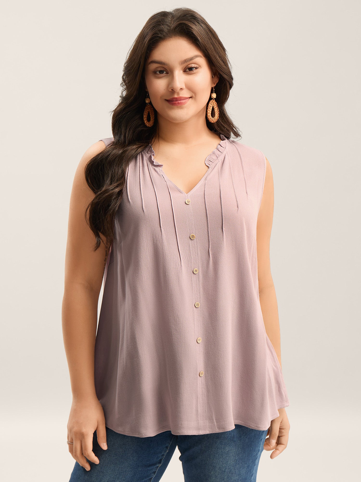 Toothpick Pleat Button Detail Sleeveless Top