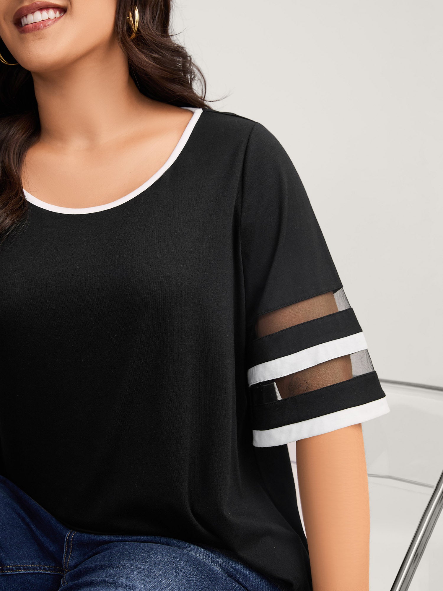 Eyelet Trim Metal Detail Knit Top
