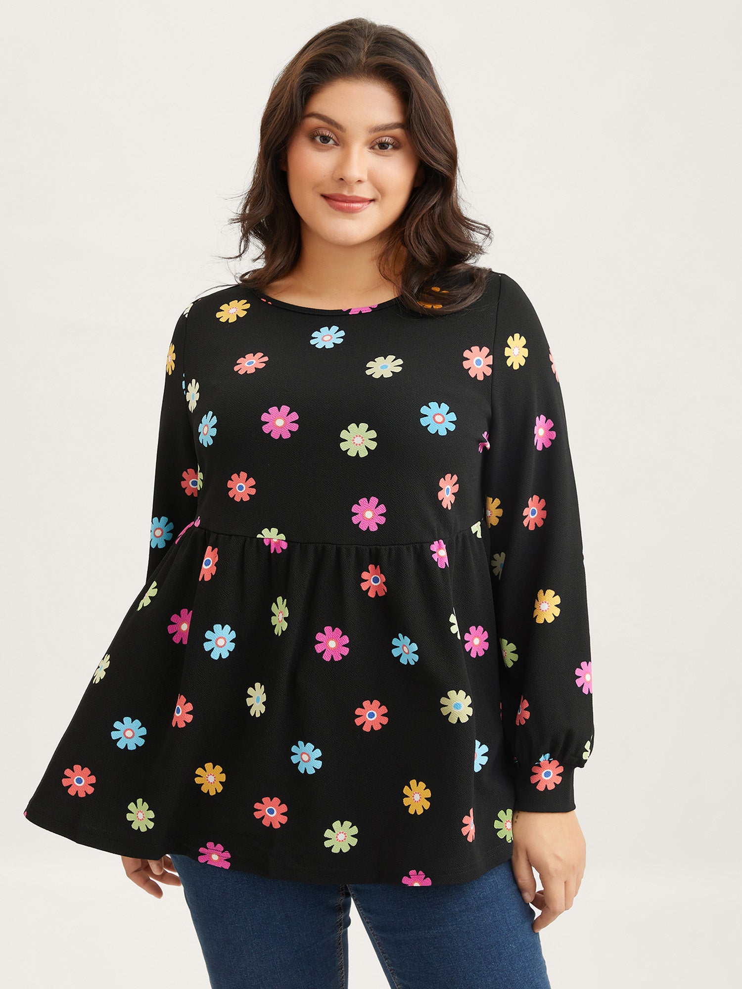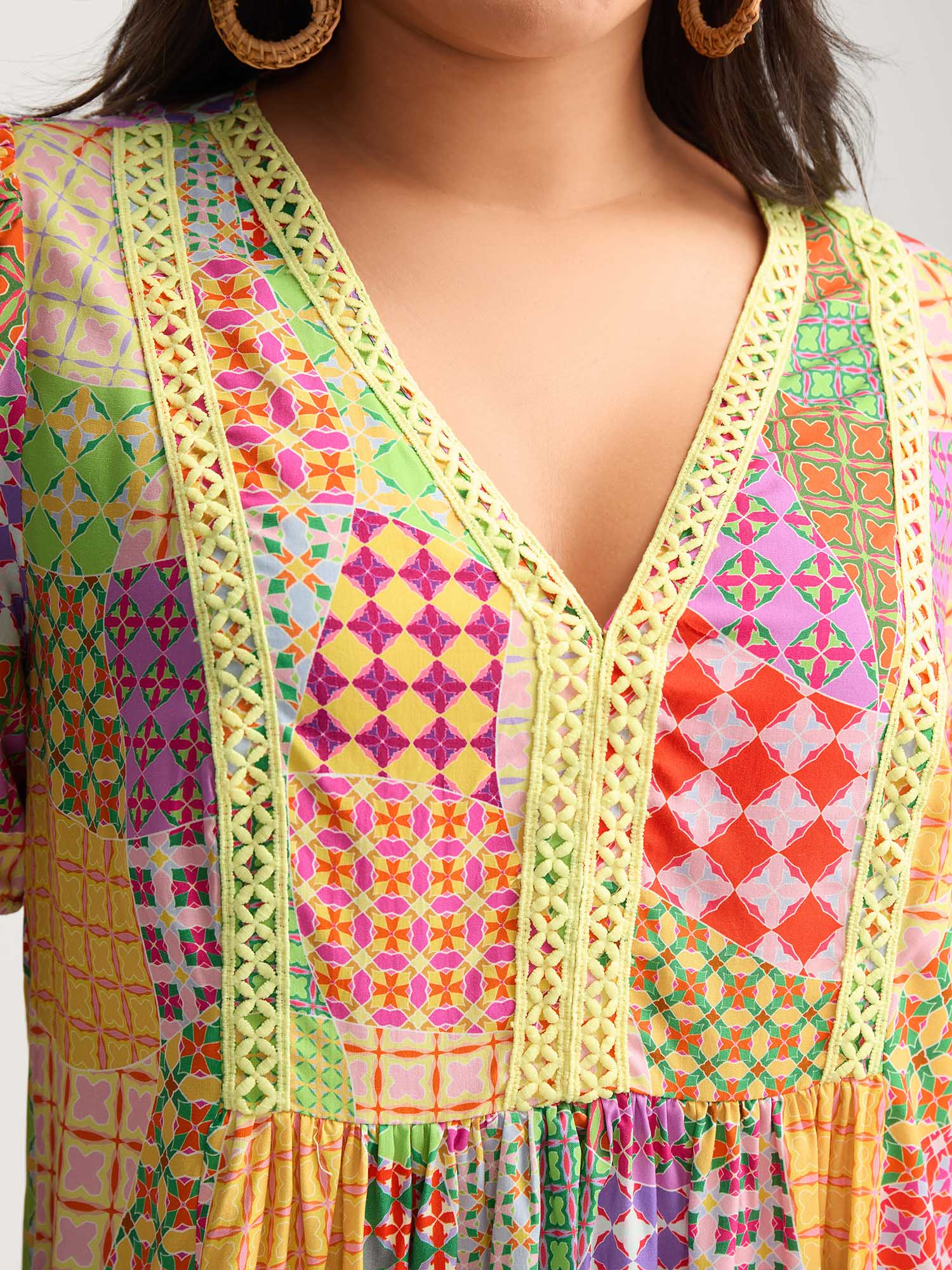 Vibrant Collage Print Babydoll Top