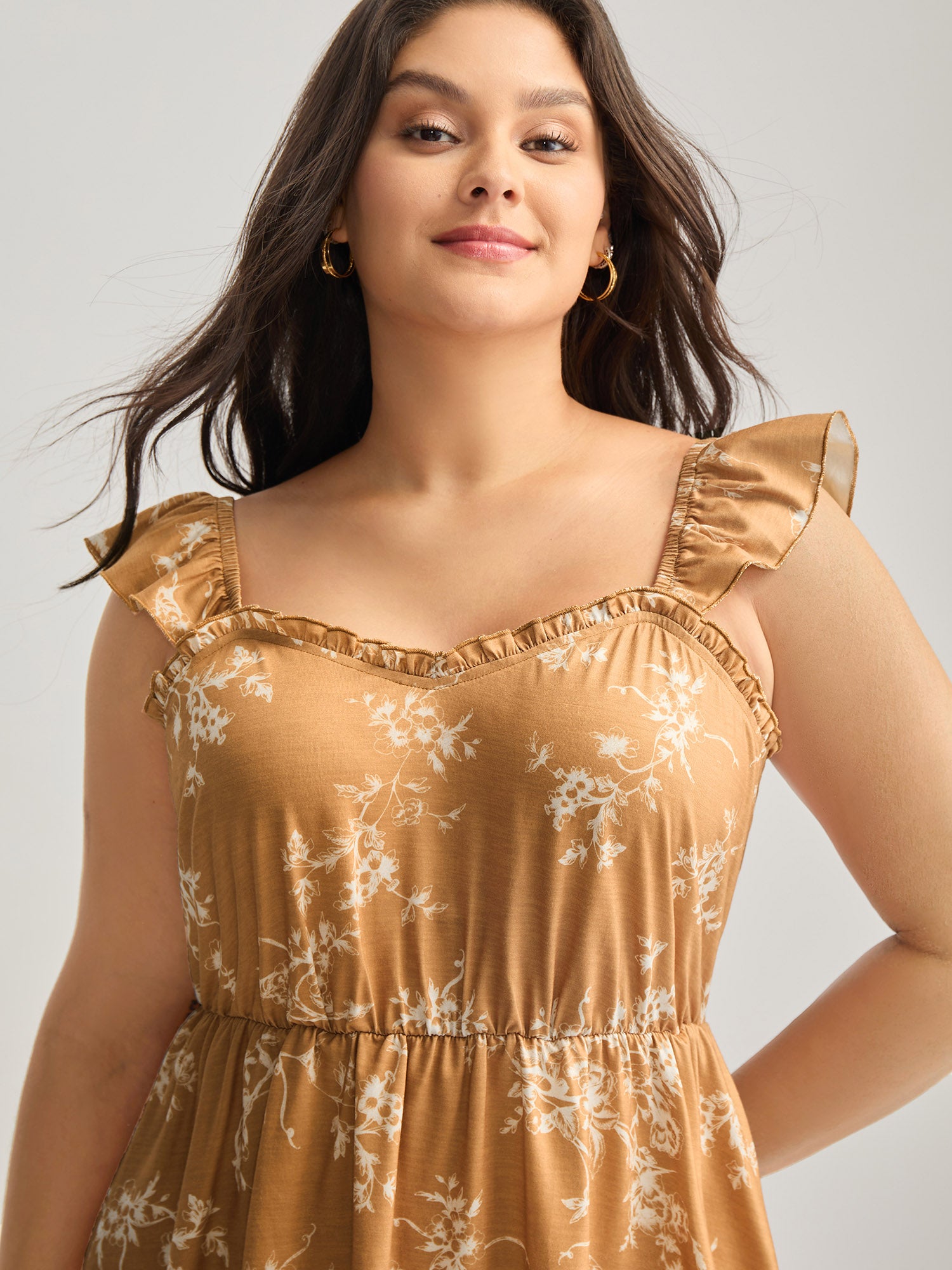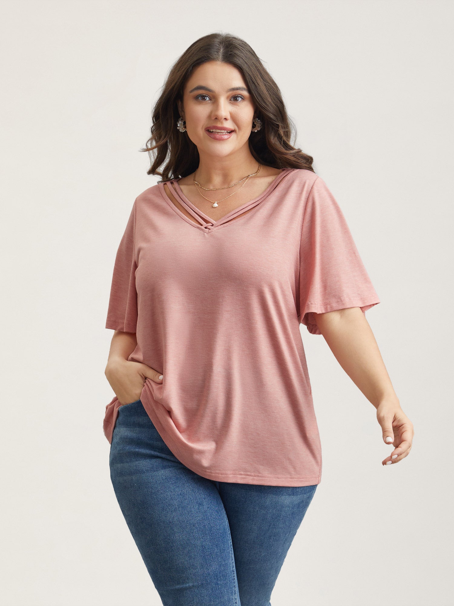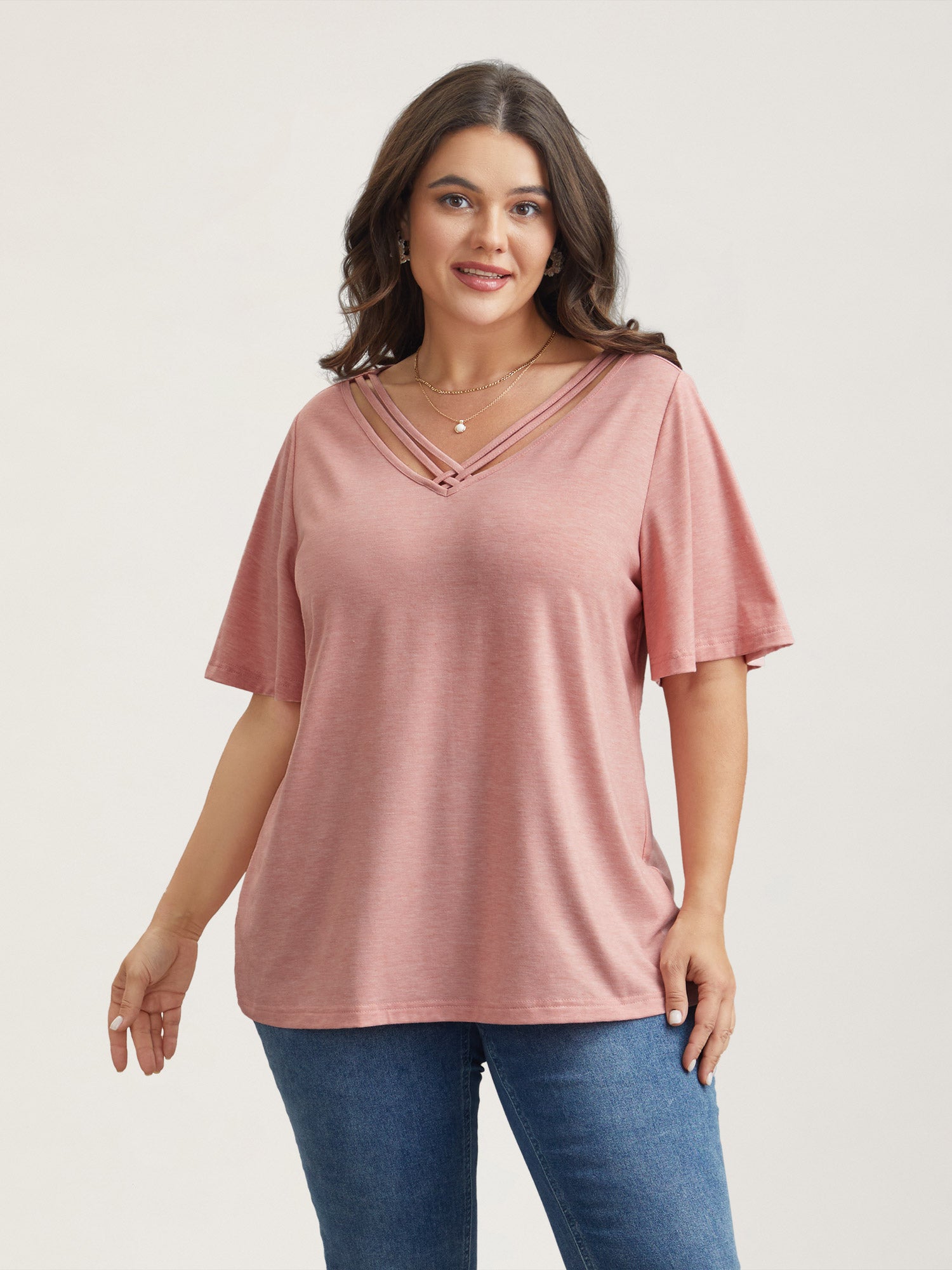 Stretchy Cross-Straps Lotus Leaf Sleeve Top