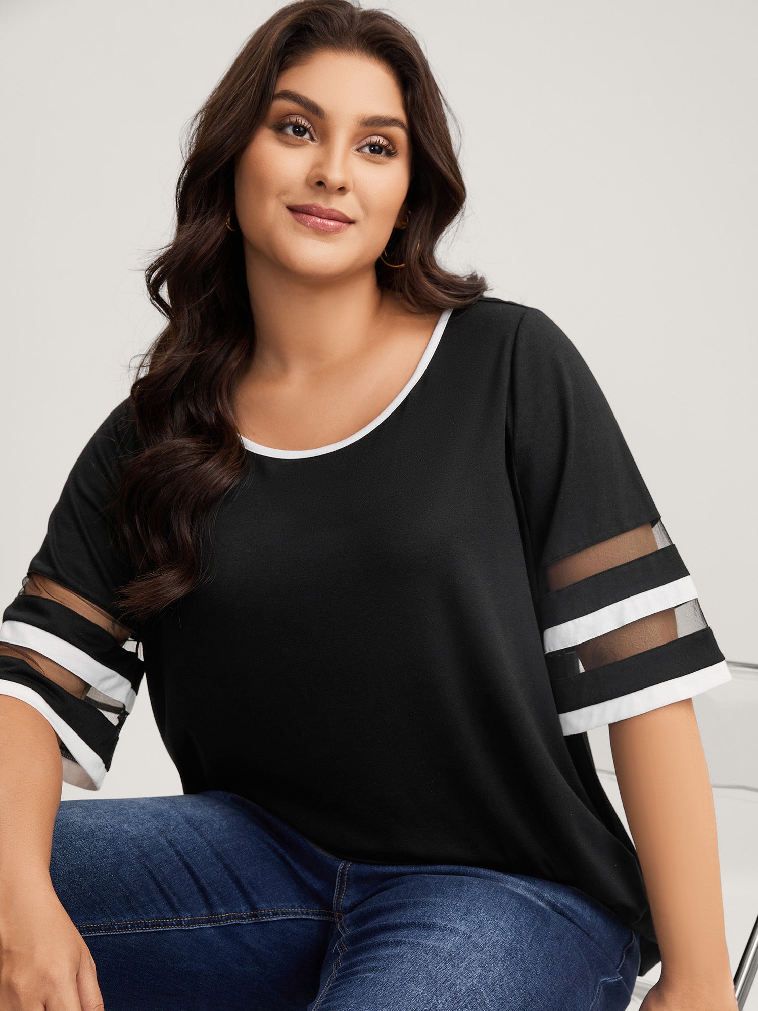 Stretchy Color Block Plain Knit Top