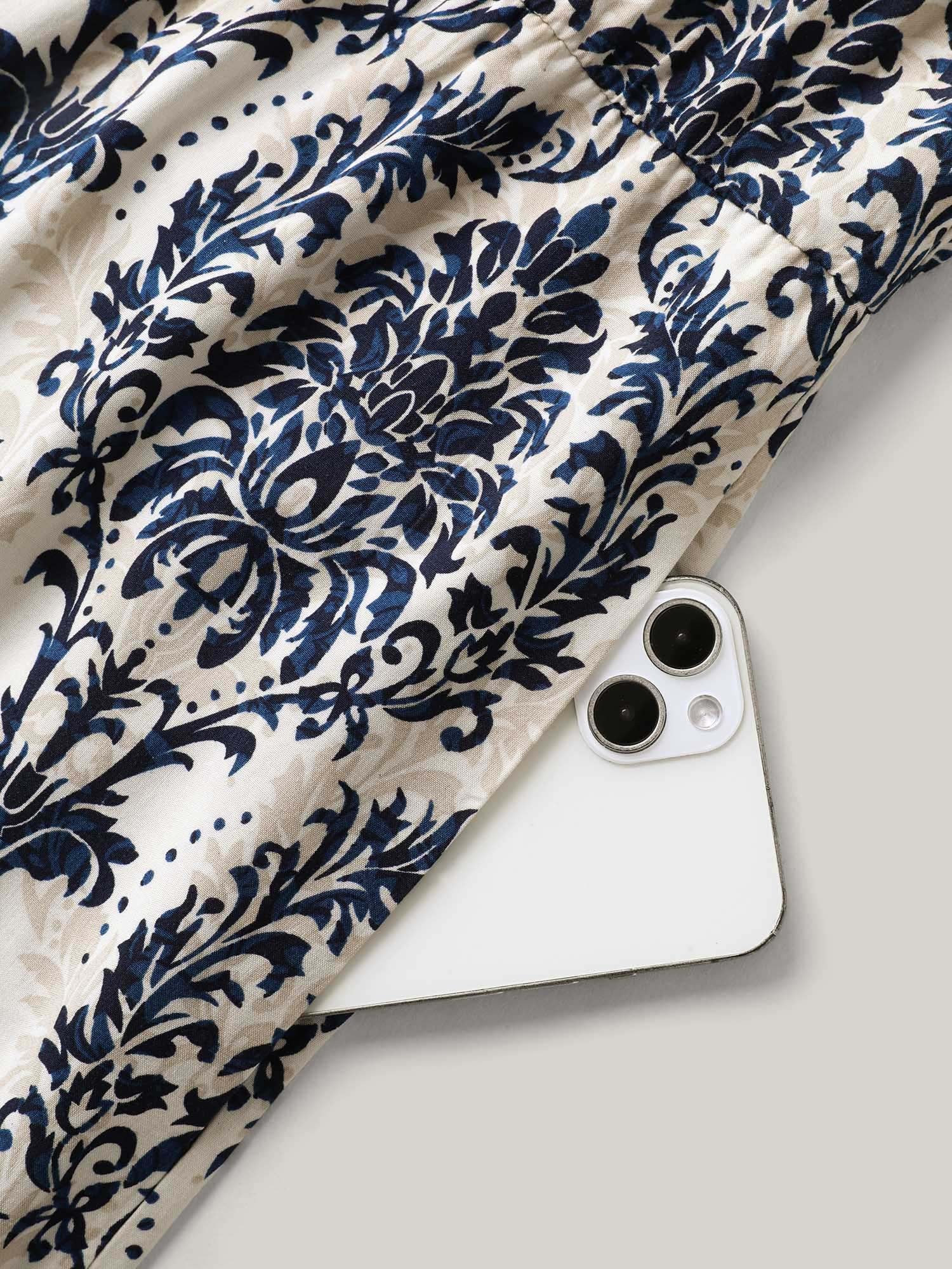 Rayon Damask Print Stretchy Waist Jumpsuit