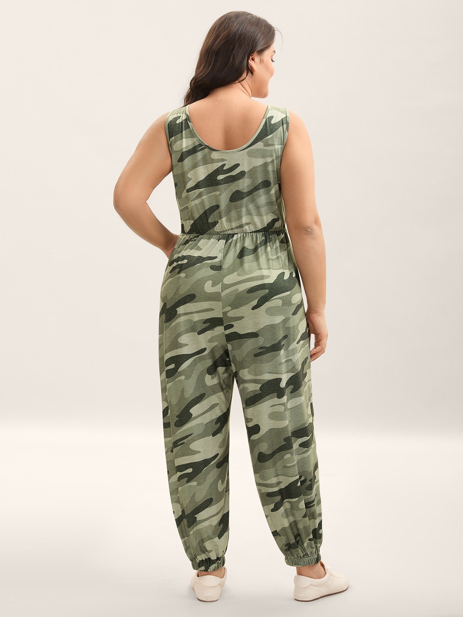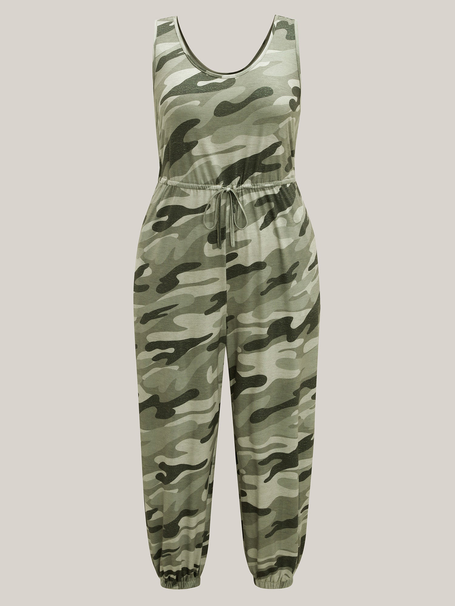 Stretchy Waist Camouflage Print Pockets Jumpsuit