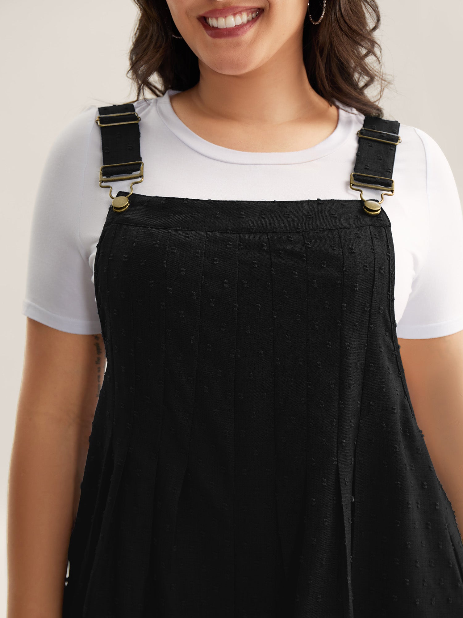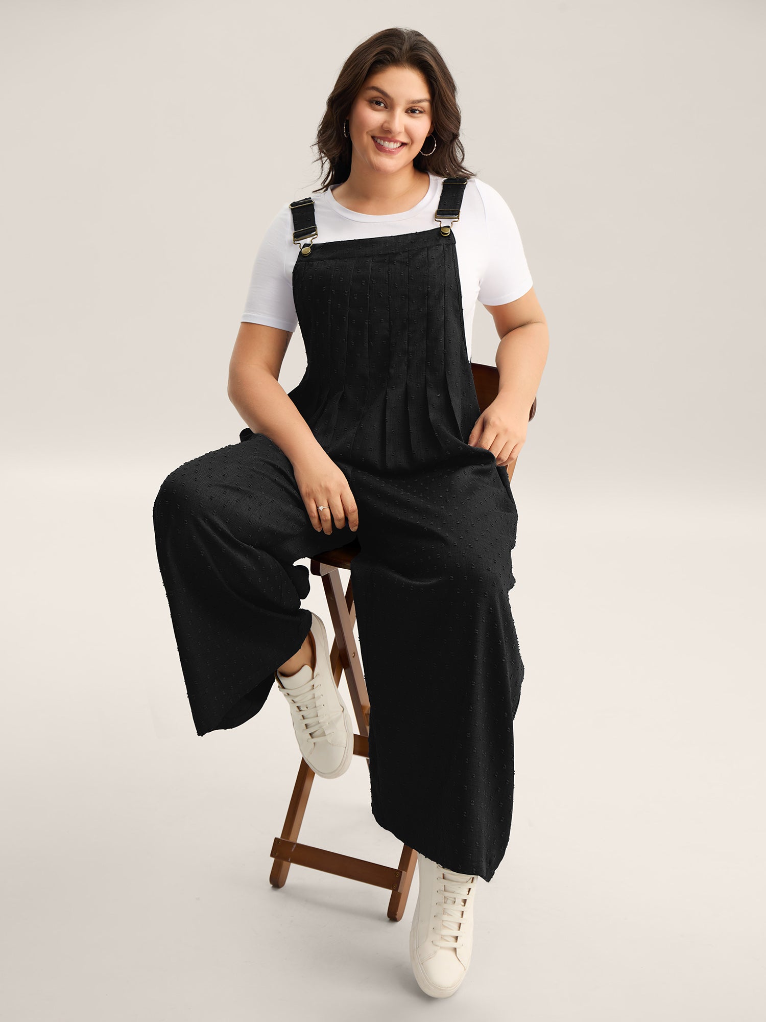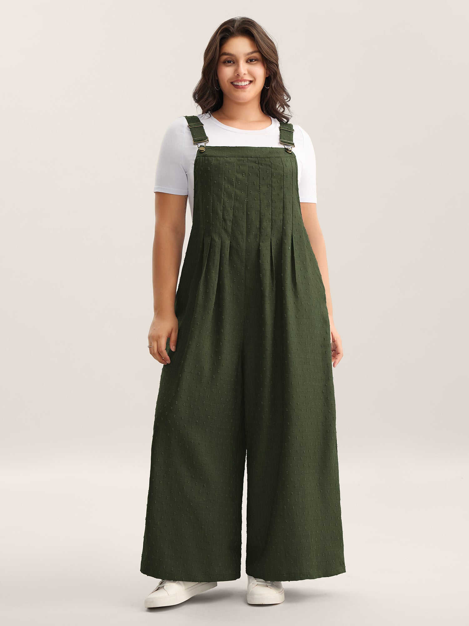 Textured Plicated Detail Overall Straps Jumpsuit