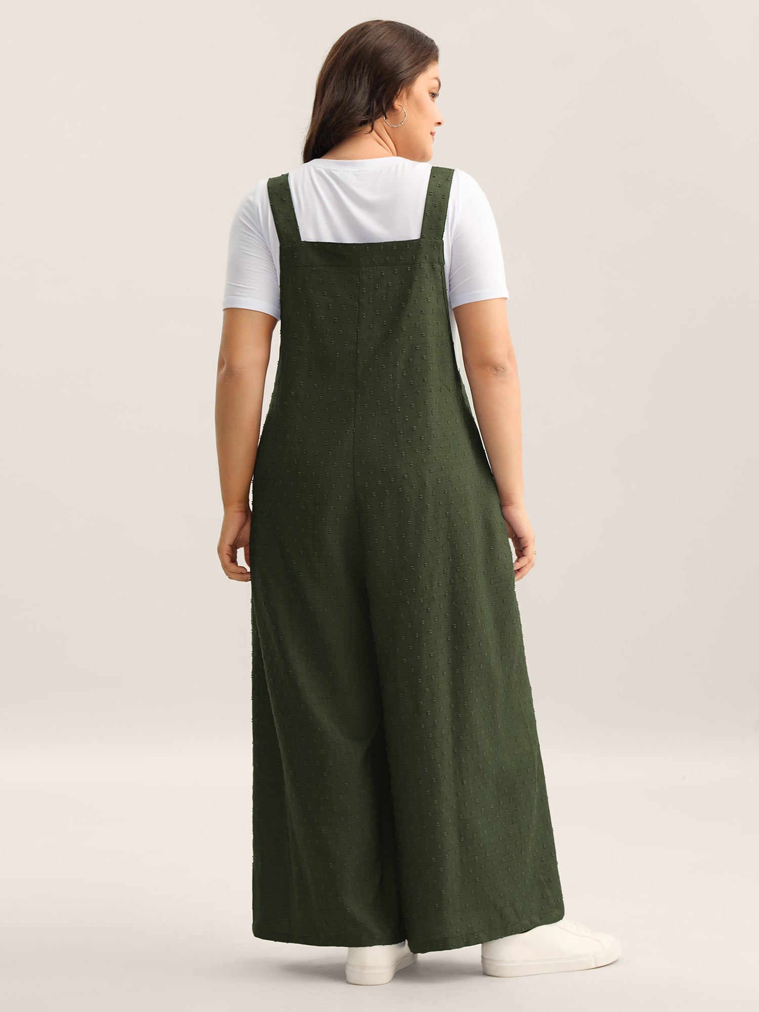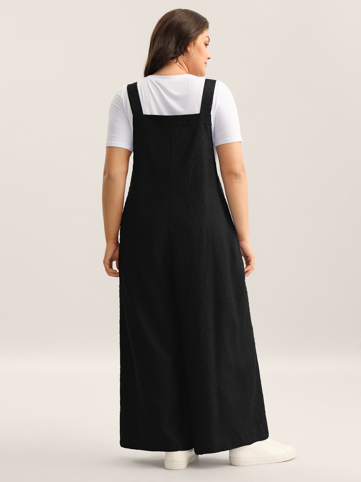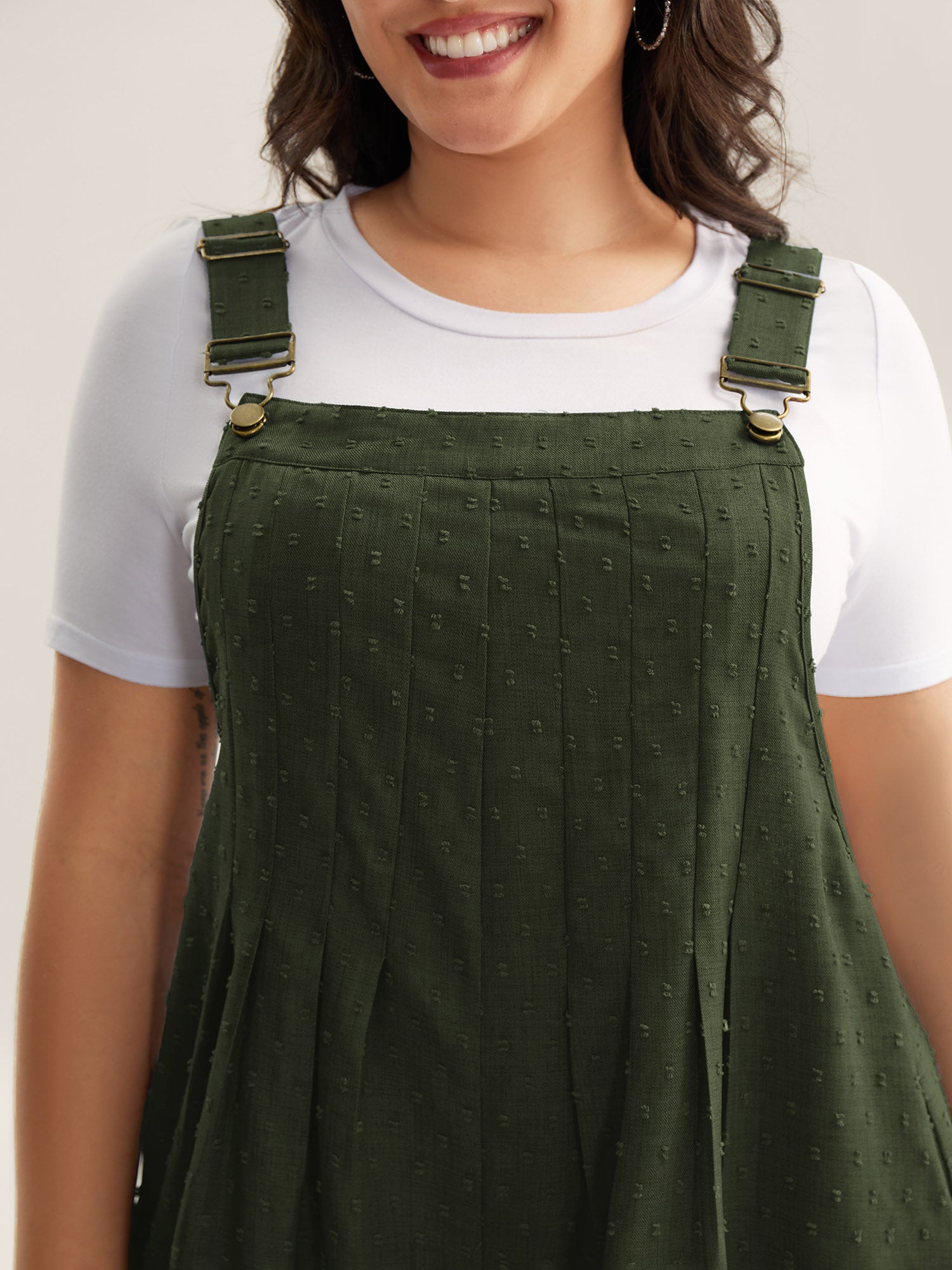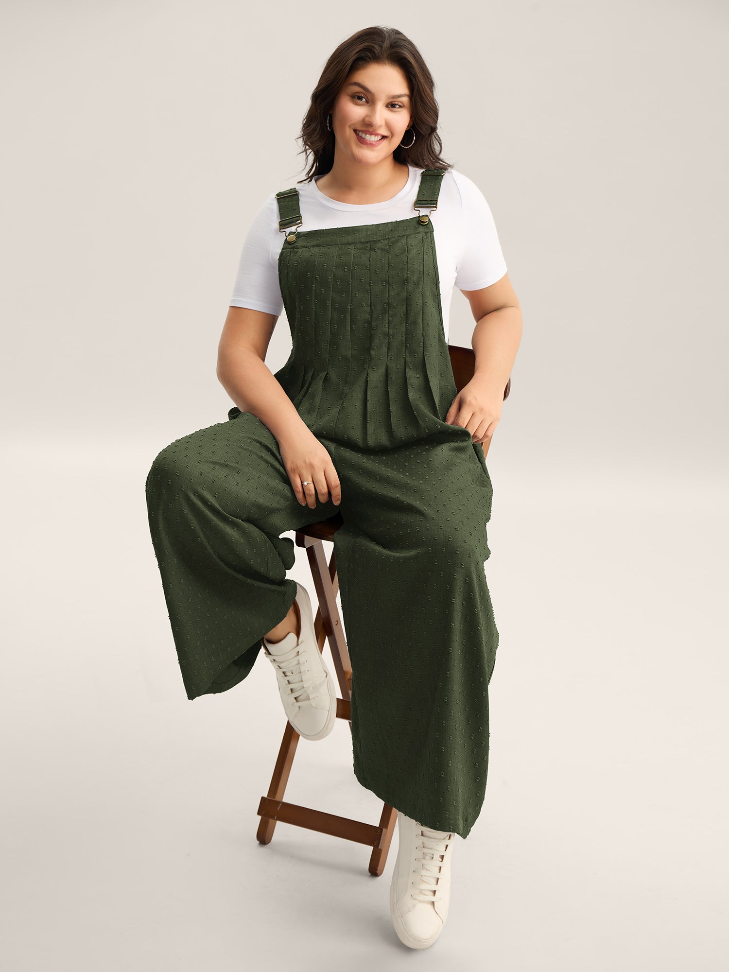 Textured Plicated Detail Overall Straps Jumpsuit