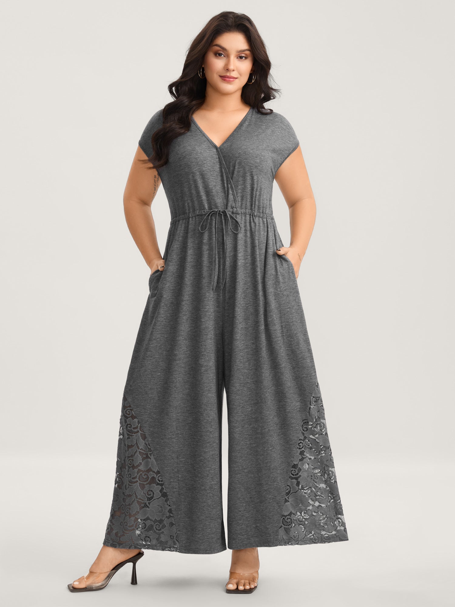 Very Stretchy Lace Waist-Tie Jumpsuit