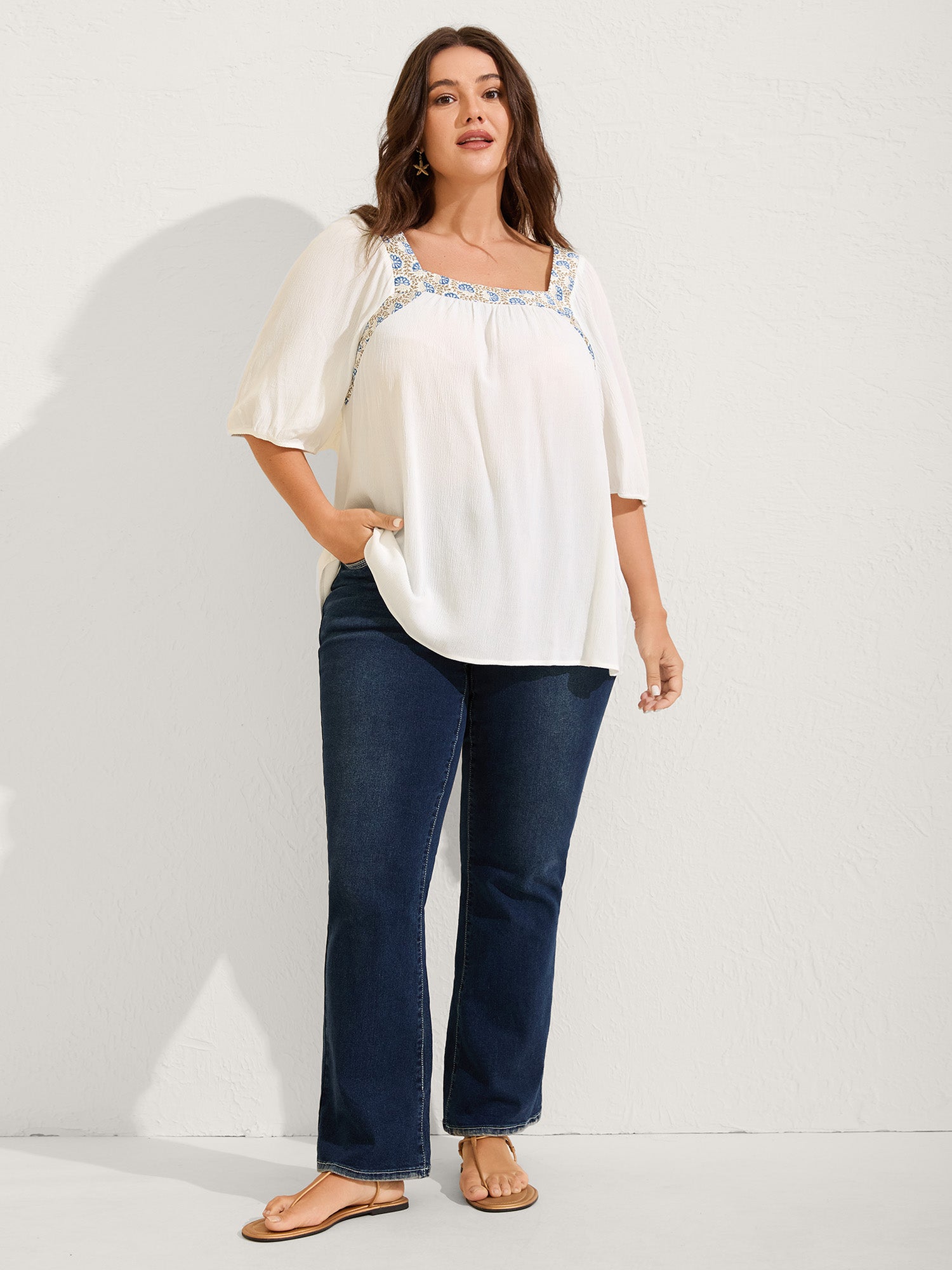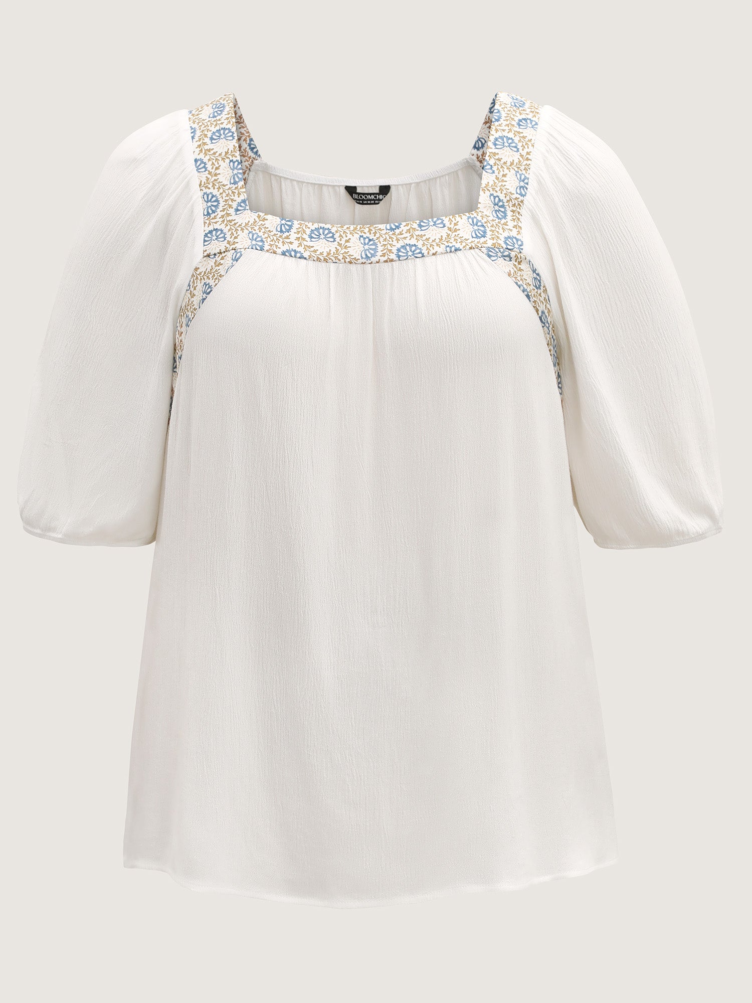 Boho Spliced Neck Pleated Plain Blouse