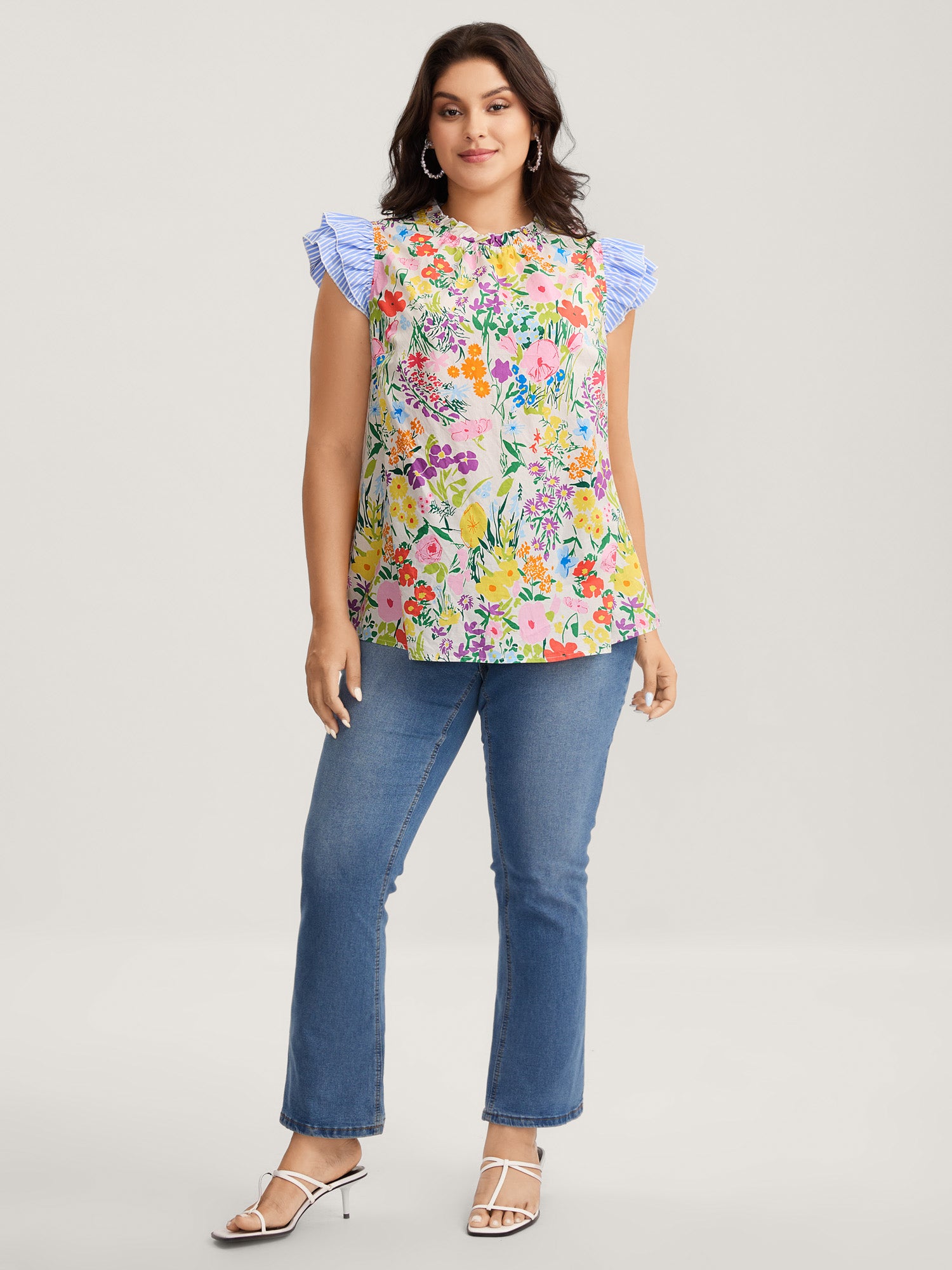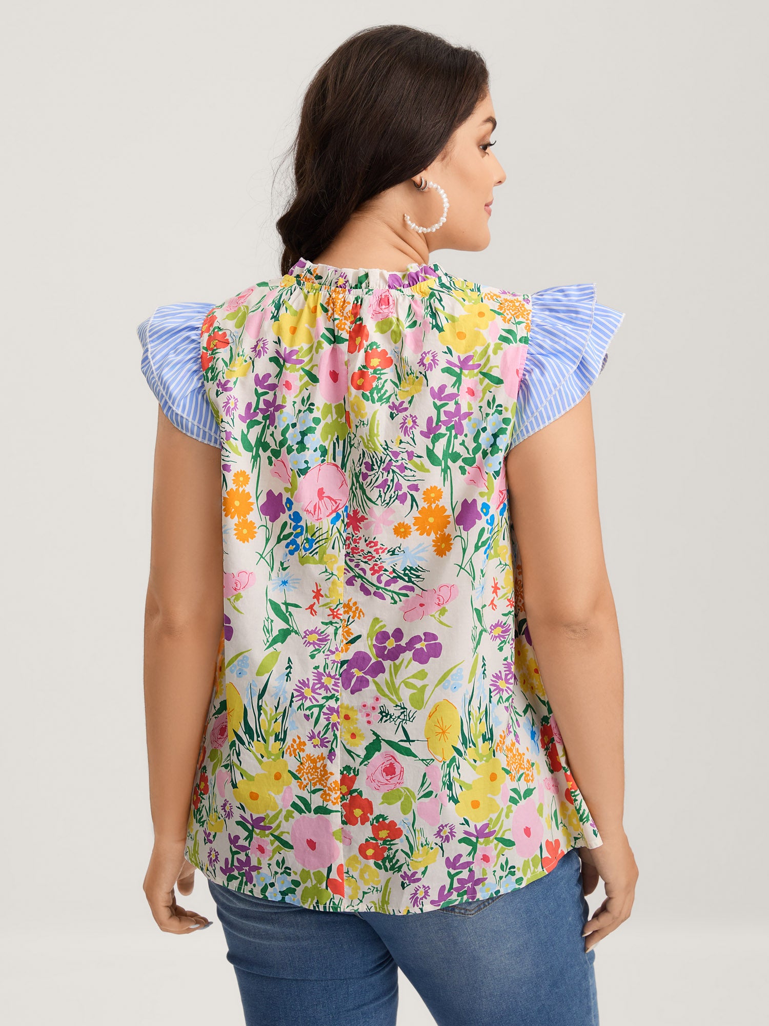 Pure Cotton Floral Turtleneck Blouse