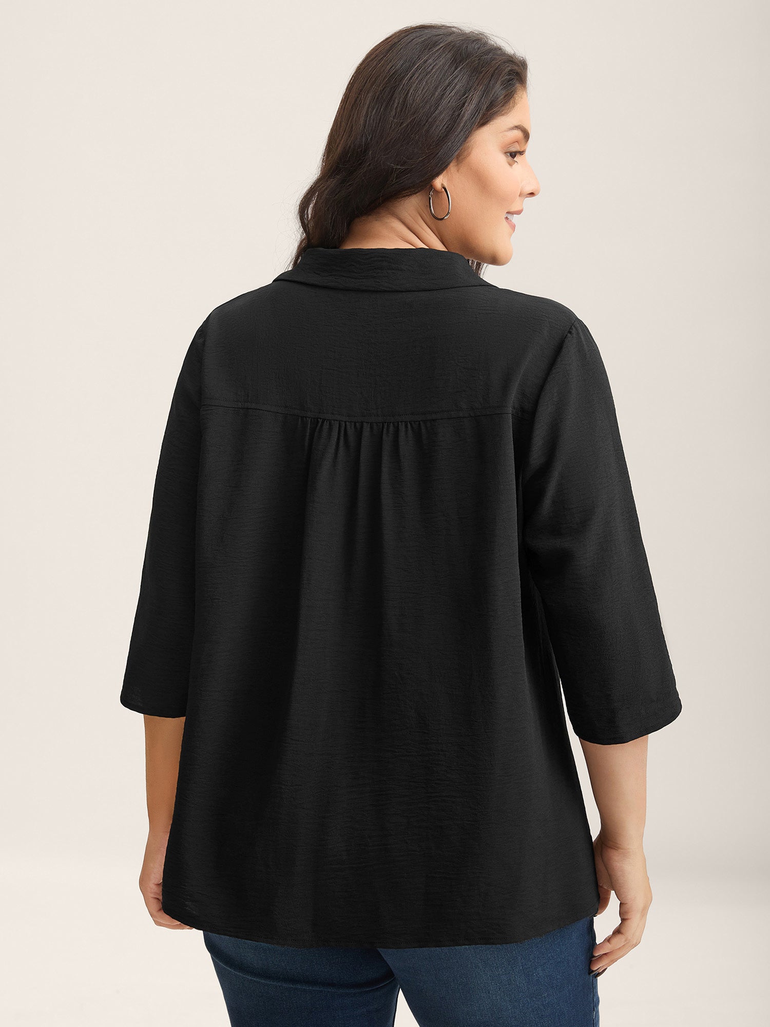 Tab Sleeve Blazer Collar Blouse