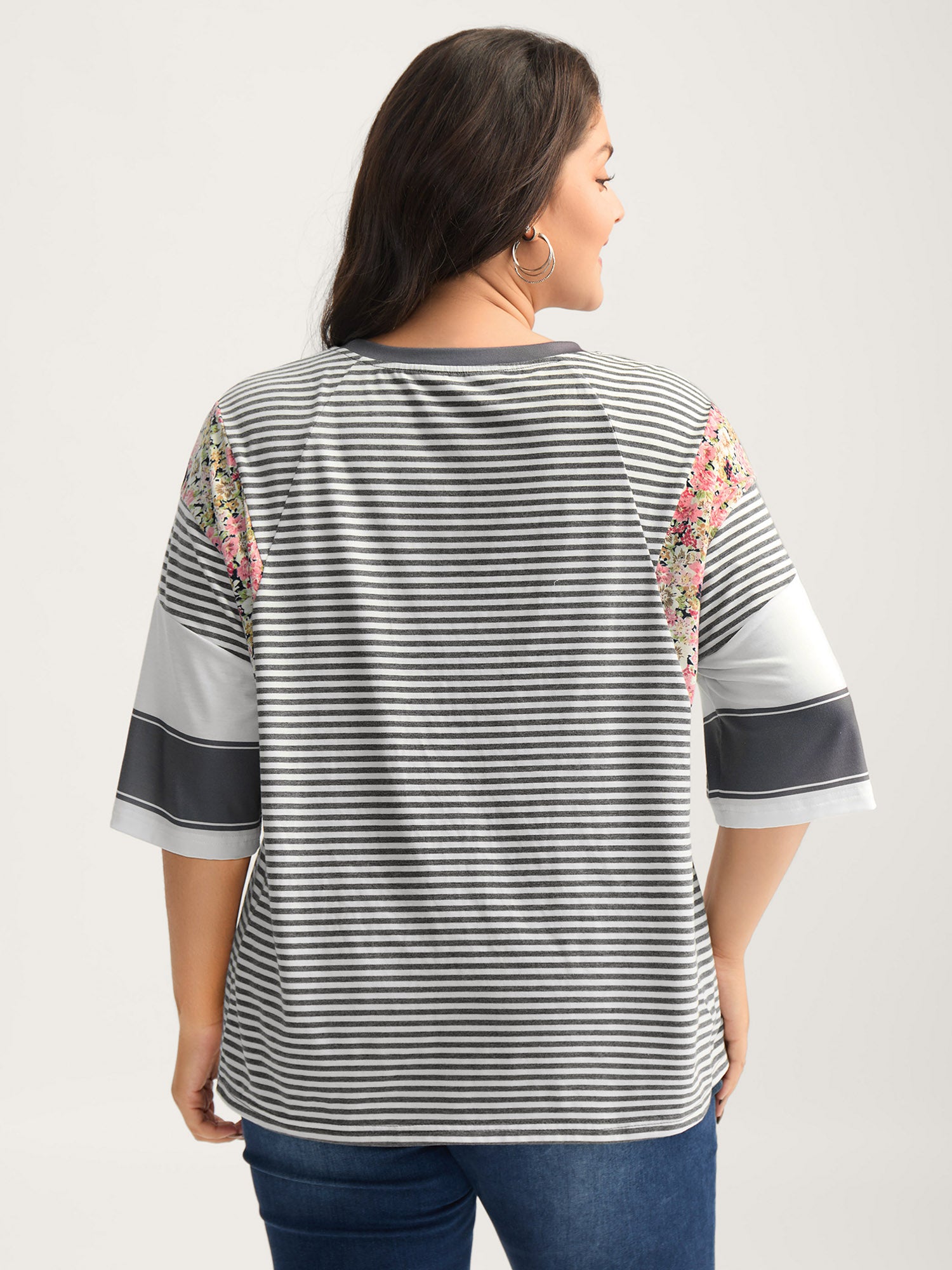 Cotton Mixed Print Floral Detail Knit Top